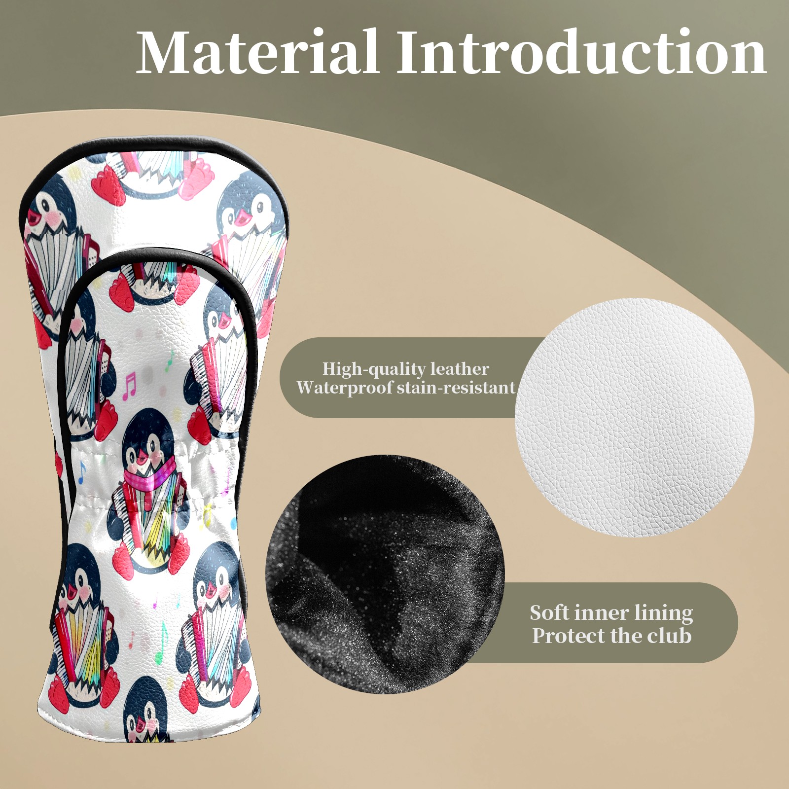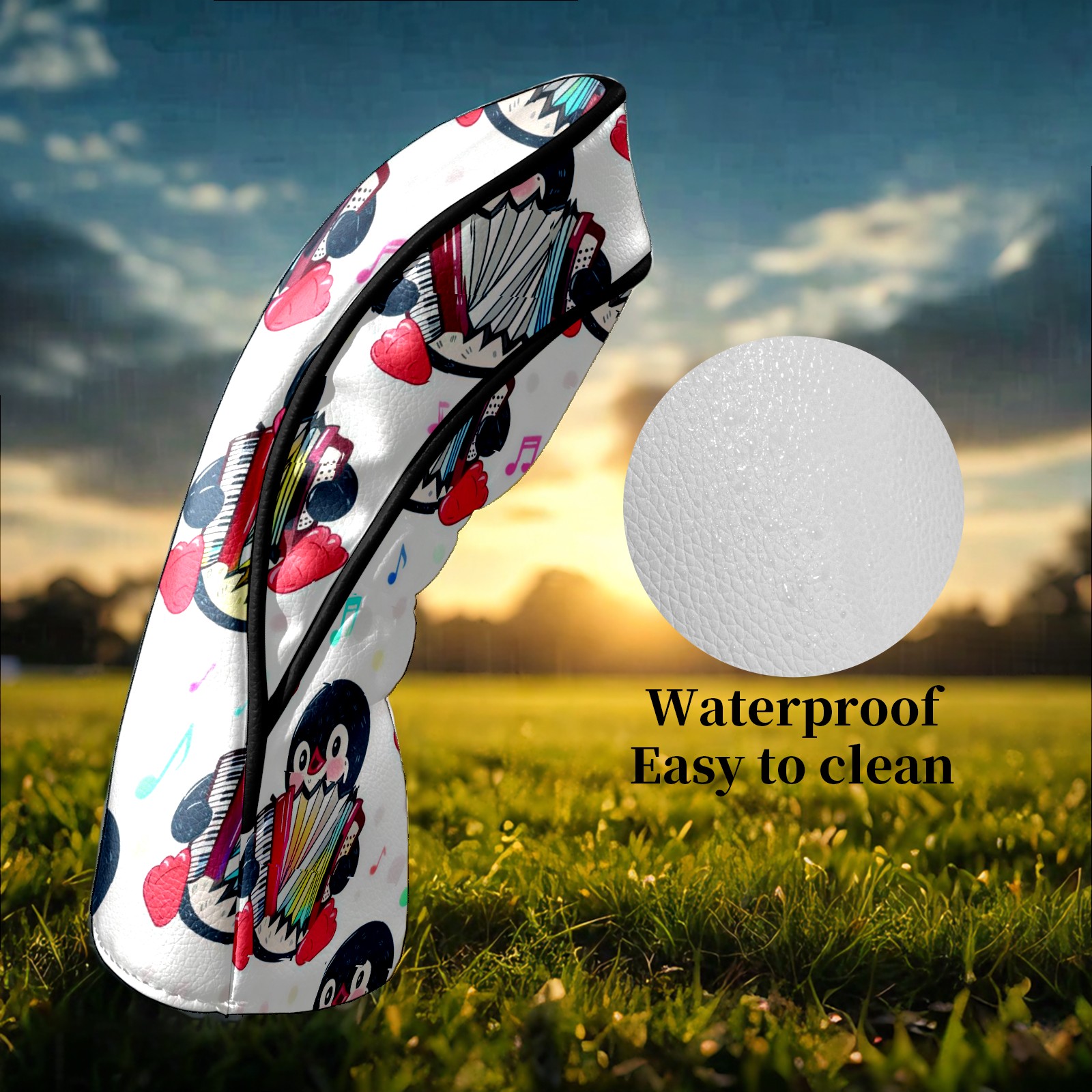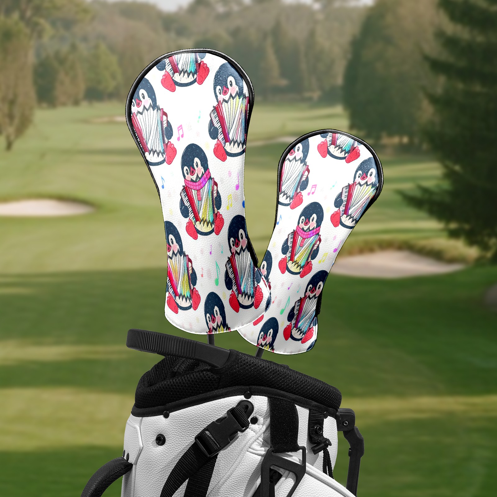 Golf Club Head Covers - Playful Penguin White Driver Fairway Headcover, Premium PU Leather, Protective Velvet Lining, Secure Elastic Band, Fits All Golf Brands, Perfect Gift for Golfers Men Women