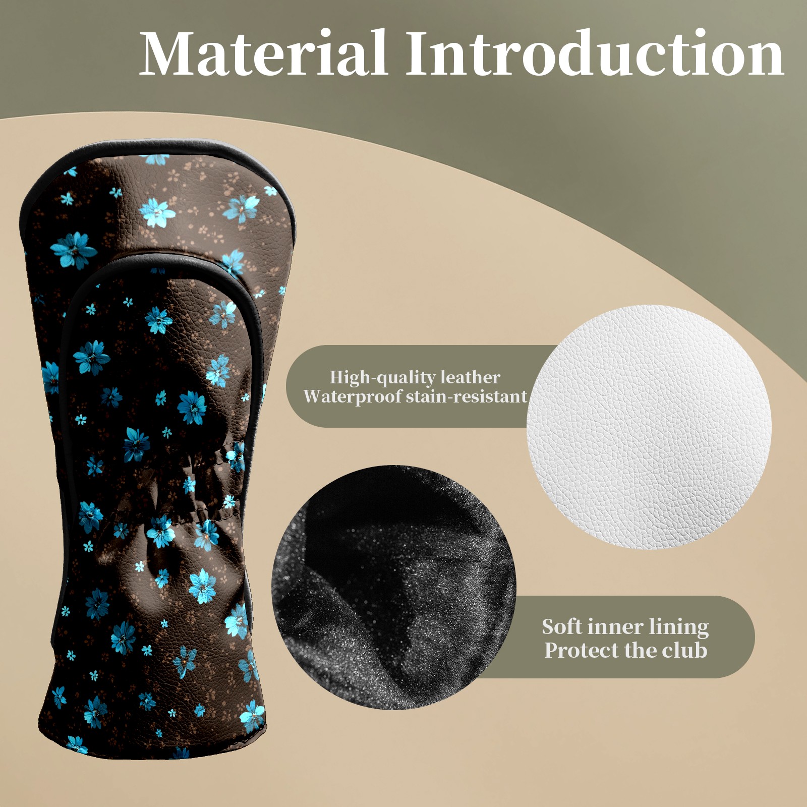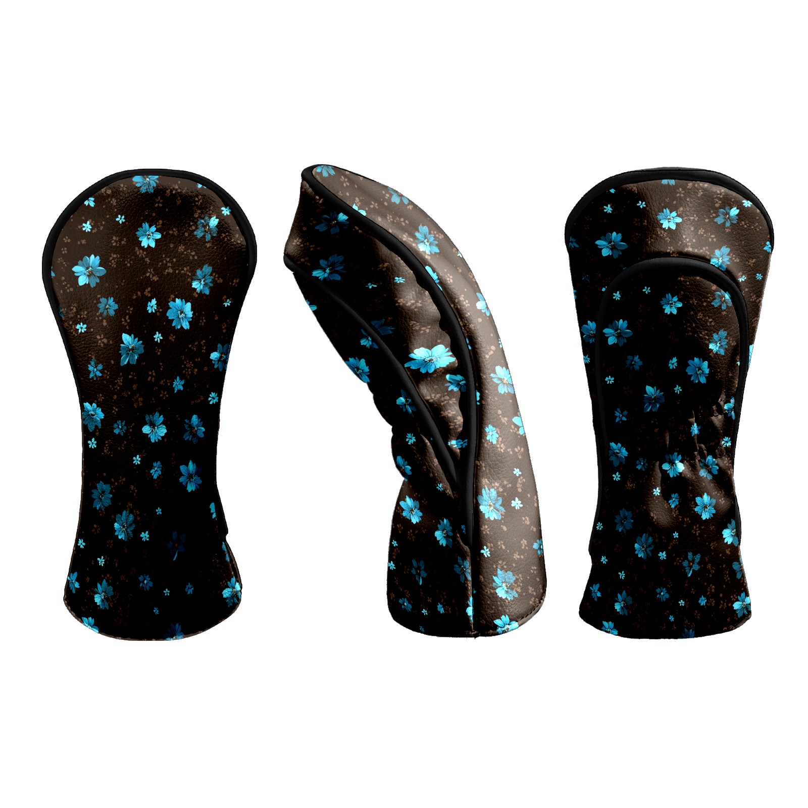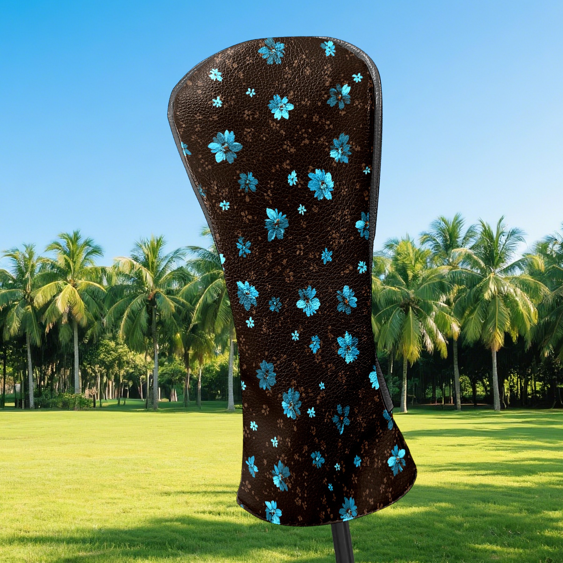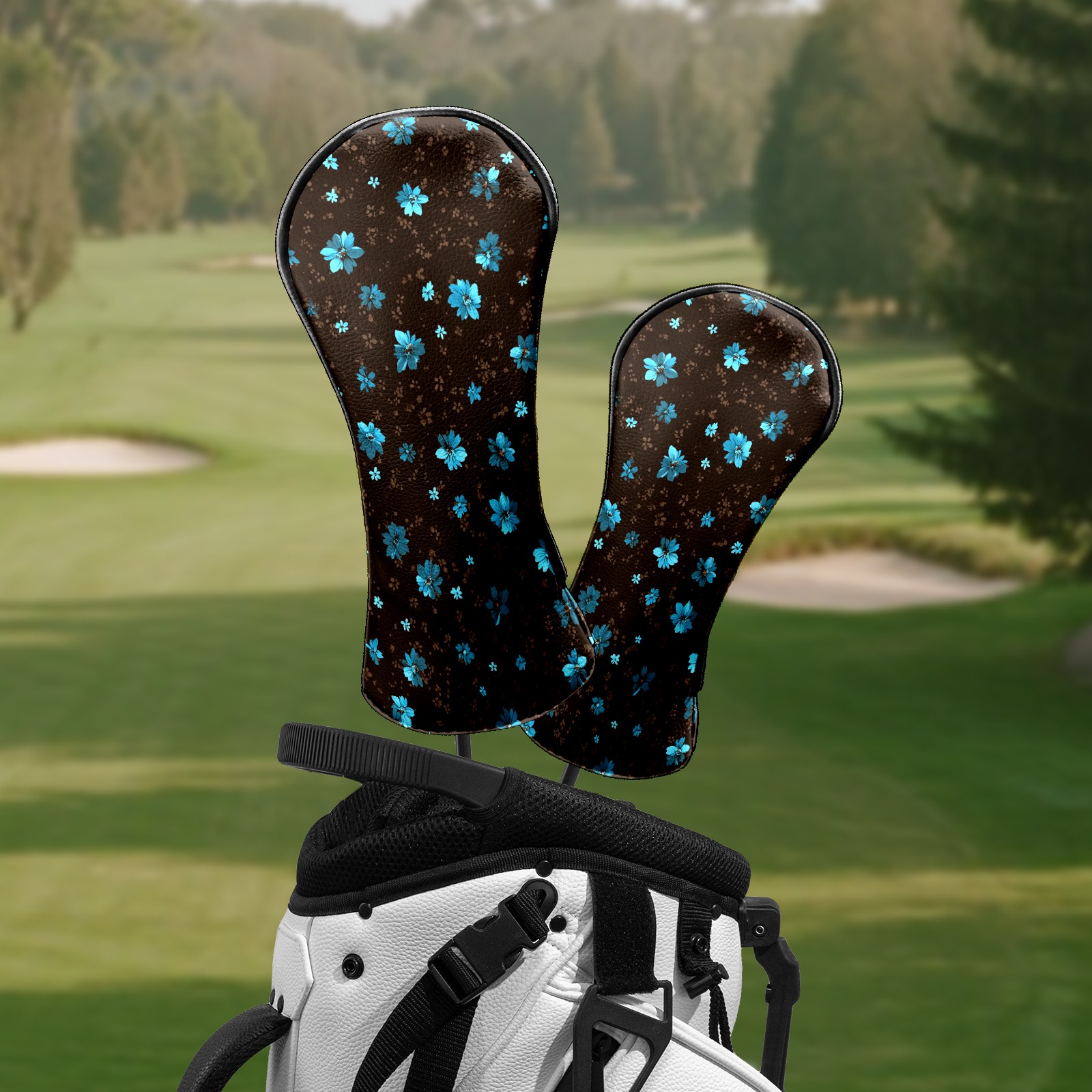 Golf Club Head Covers - Elegant Flower Brown Driver Fairway Headcover, Premium PU Leather, Protective Velvet Lining, Secure Elastic Band, Fits All Golf Brands, Perfect Gift for Golfers Men Women