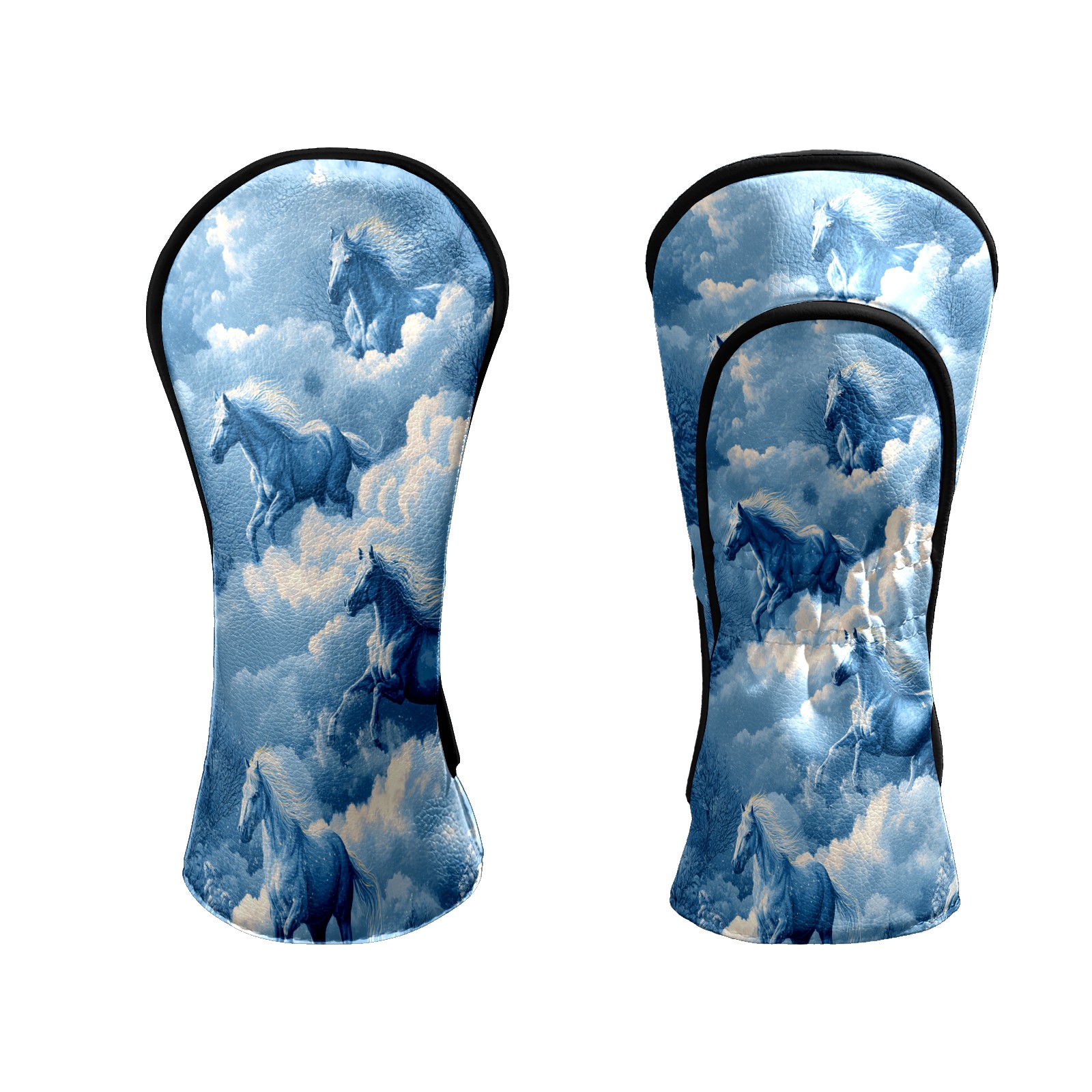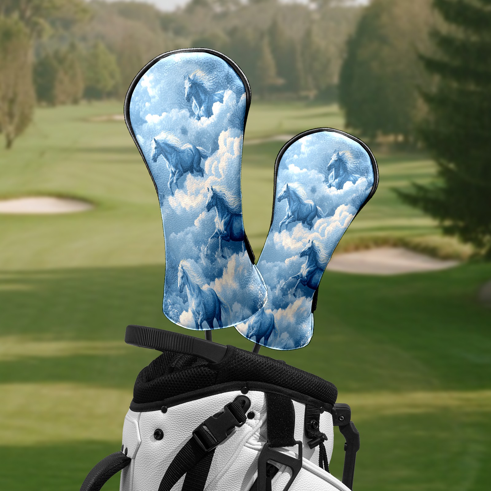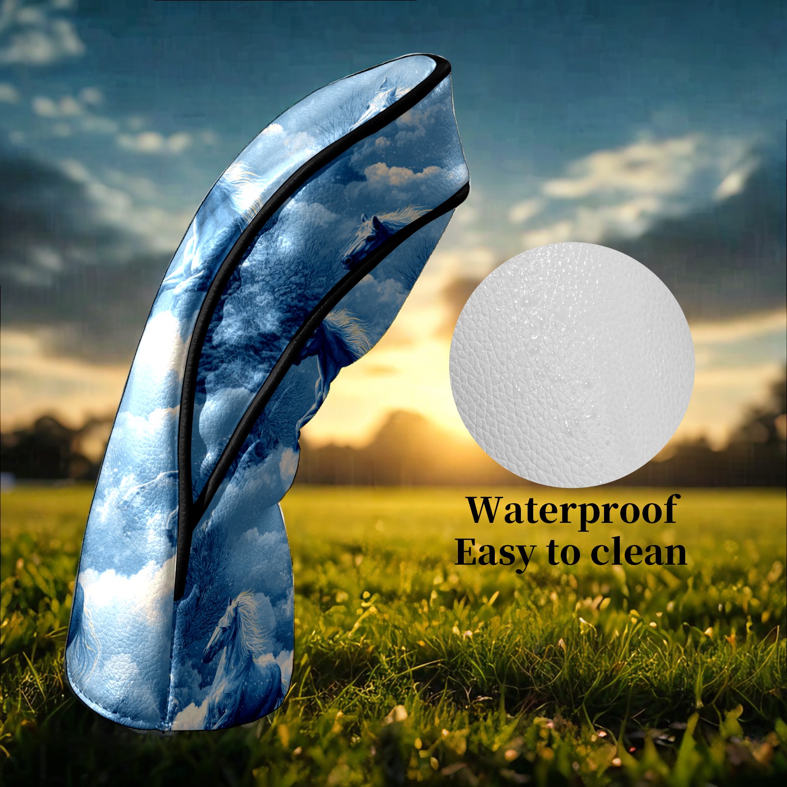 Golf Club Head Covers - Dreamy Horse Blue Driver Fairway Headcover, Premium PU Leather, Protective Velvet Lining, Secure Elastic Band, Fits All Golf Brands, Perfect Gift for Golfers Men Women