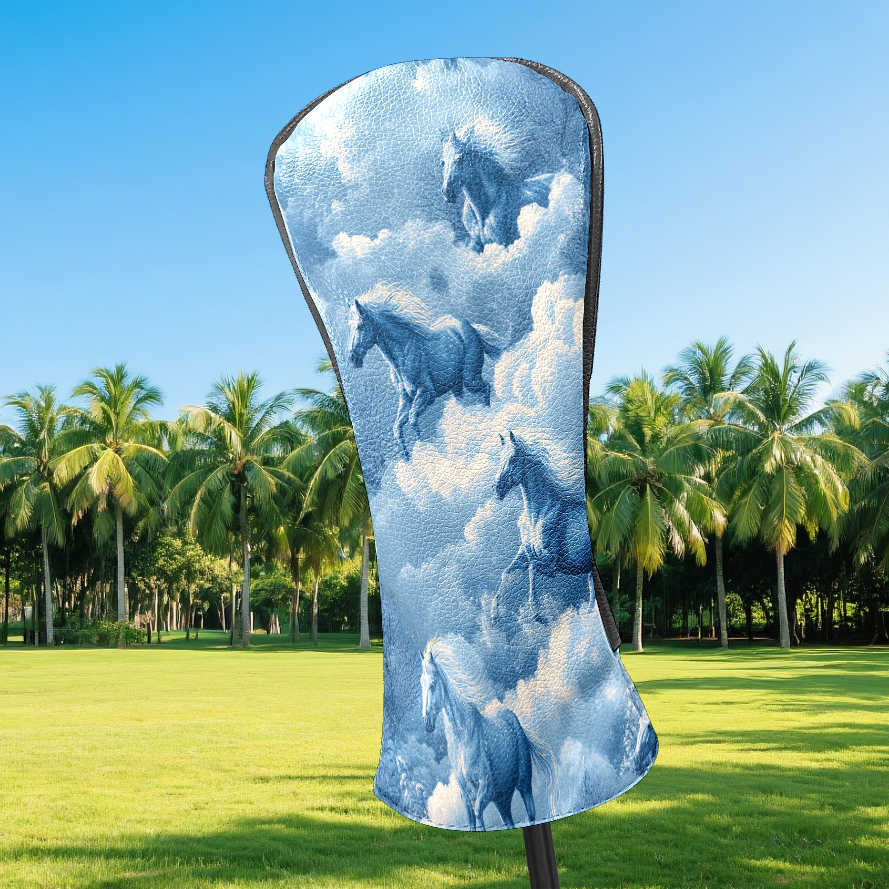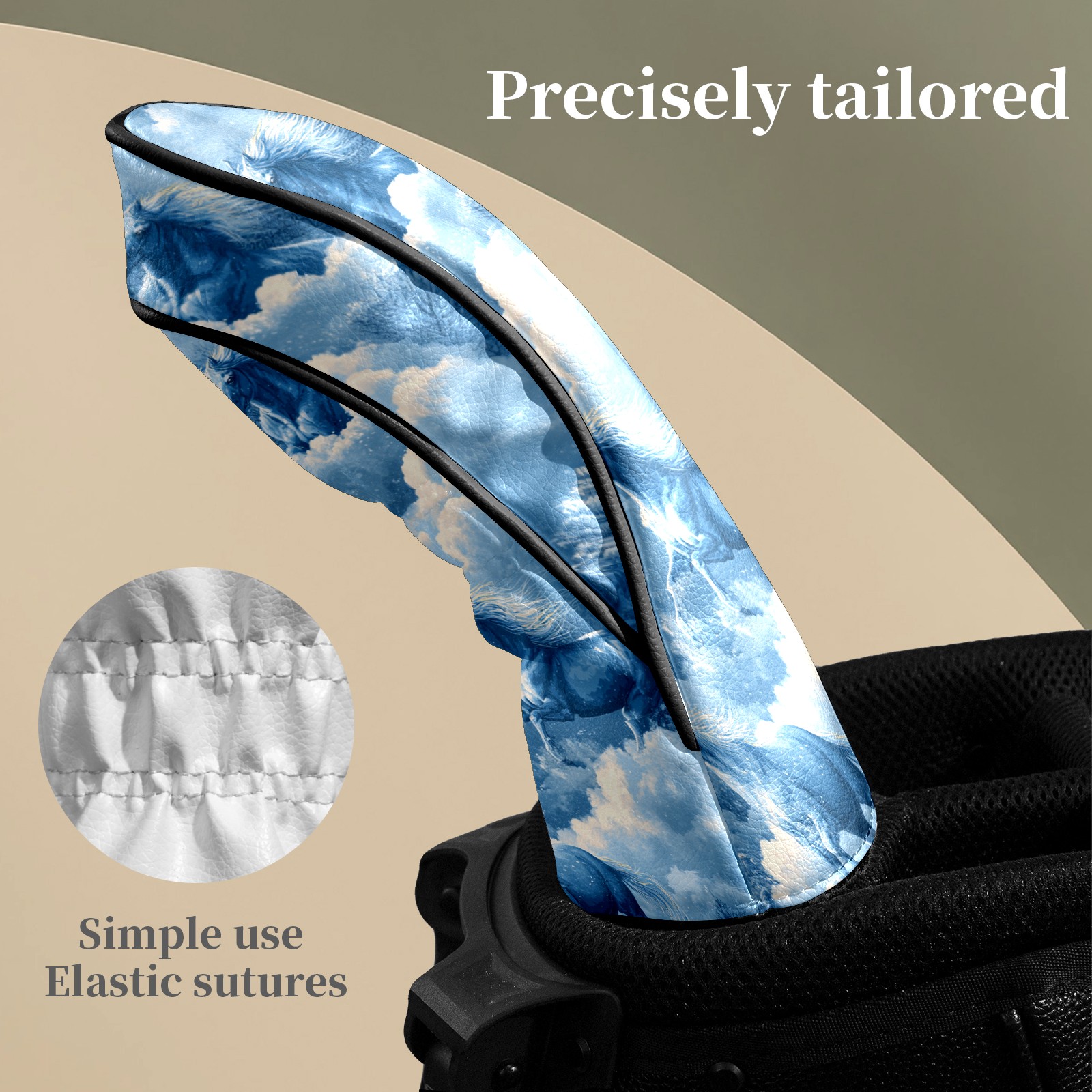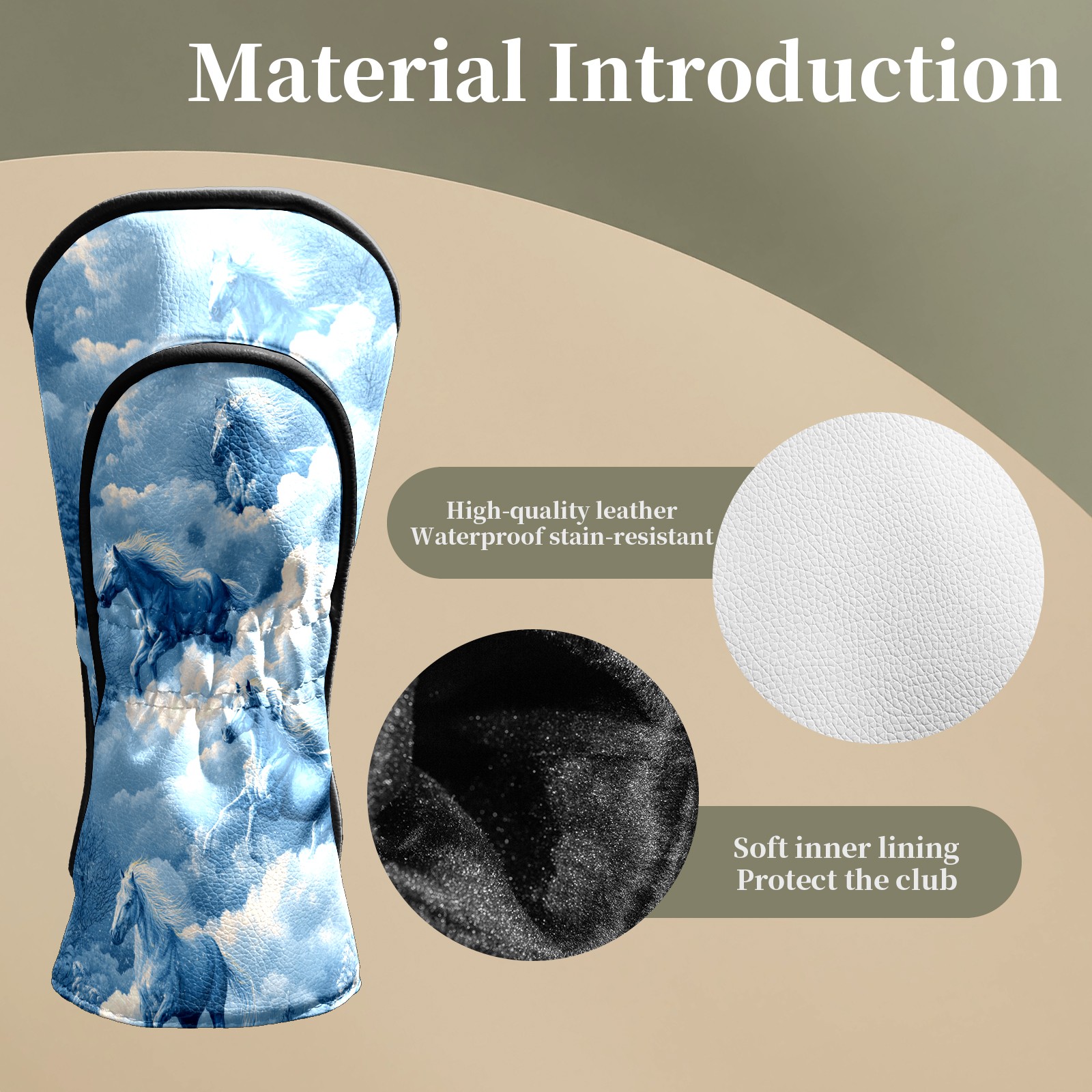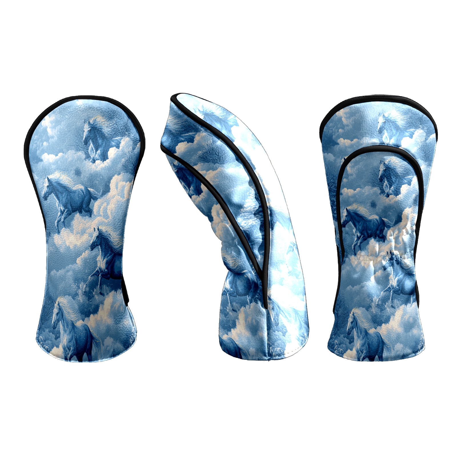 Golf Club Head Covers - Dreamy Horse Blue Driver Fairway Headcover, Premium PU Leather, Protective Velvet Lining, Secure Elastic Band, Fits All Golf Brands, Perfect Gift for Golfers Men Women