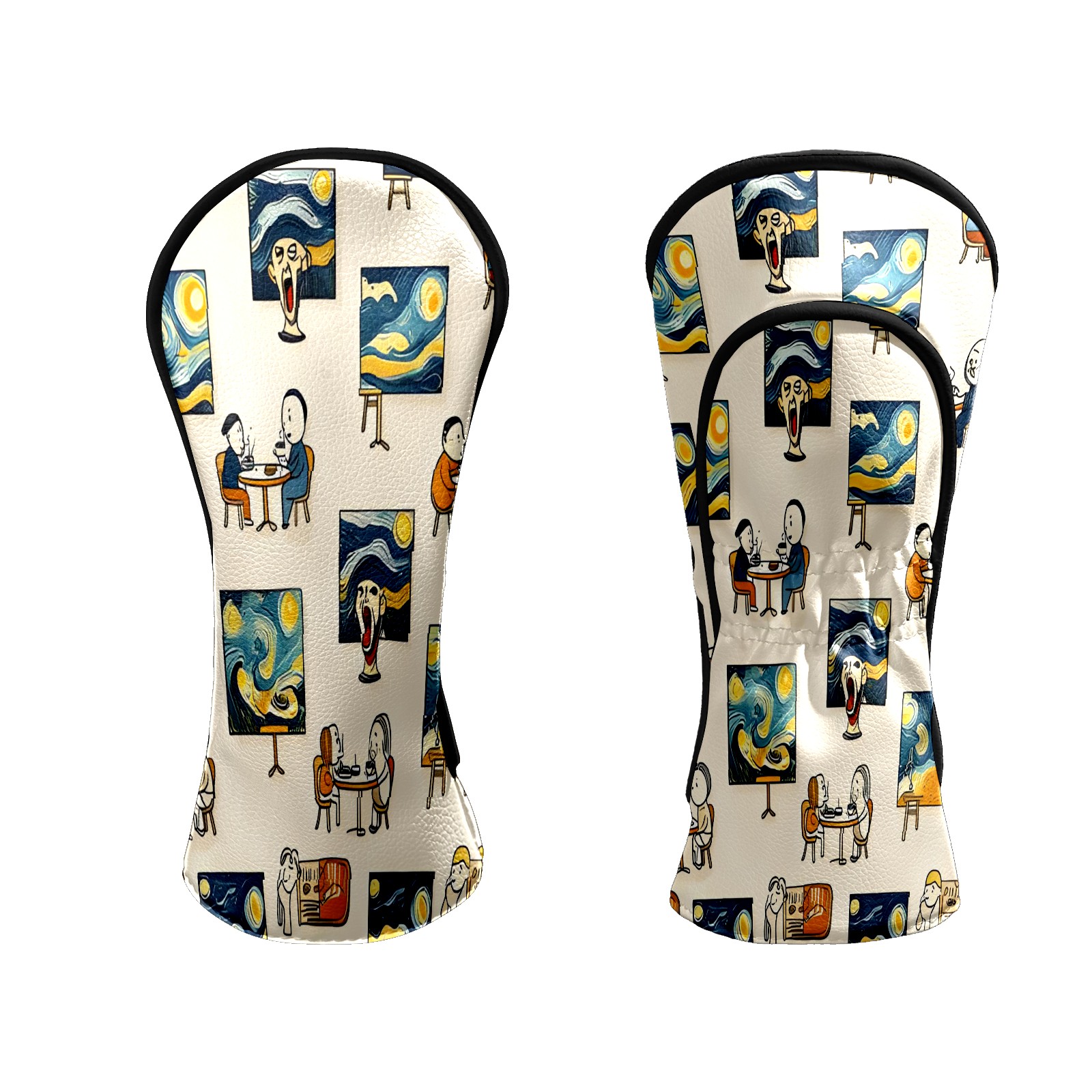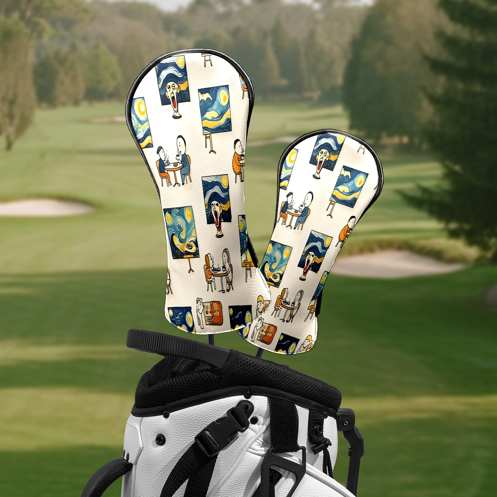Golf Club Head Covers - Artistic Diner Brown Driver Fairway Headcover, Premium PU Leather, Protective Velvet Lining, Secure Elastic Band, Fits All Golf Brands, Perfect Gift for Golfers Men Women