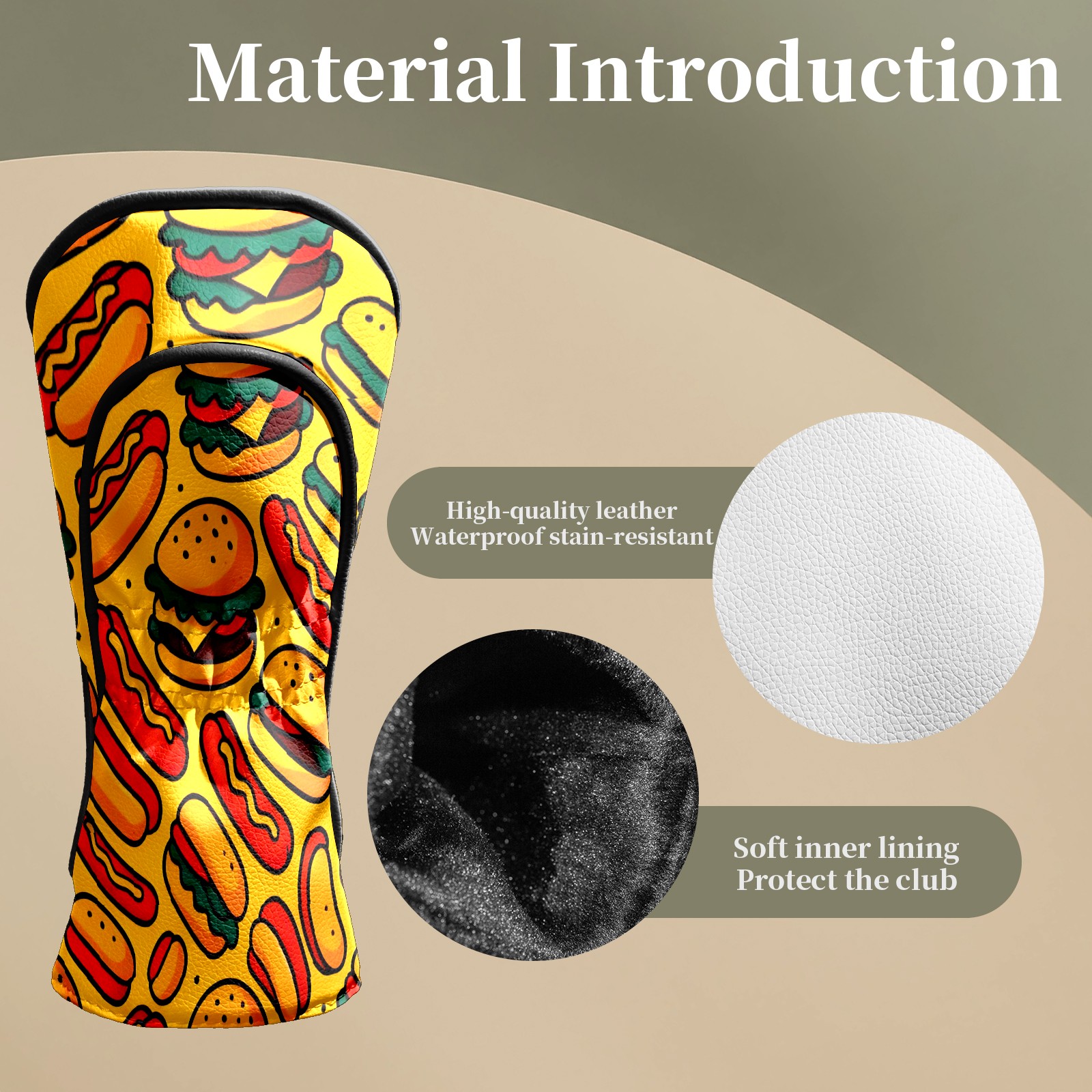 Golf Club Head Covers - Vibrant Food Yellow Driver Fairway Headcover, Premium PU Leather, Protective Velvet Lining, Secure Elastic Band, Fits All Golf Brands, Perfect Gift for Golfers Men Women