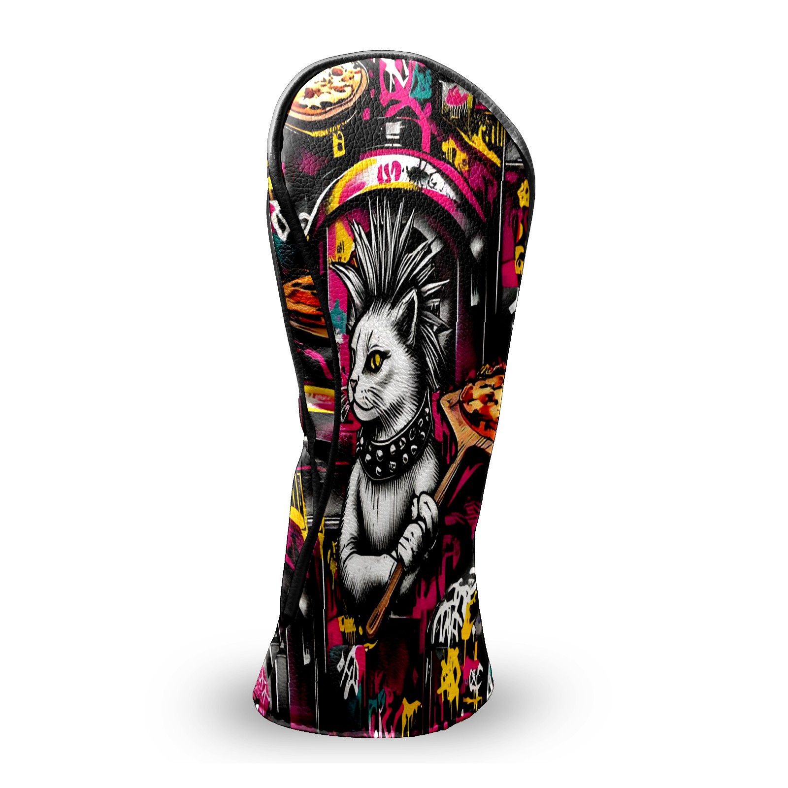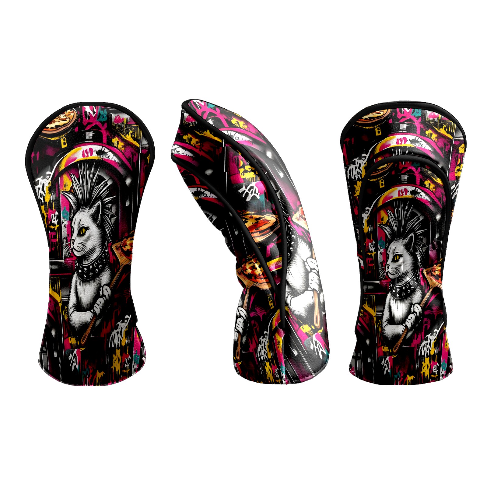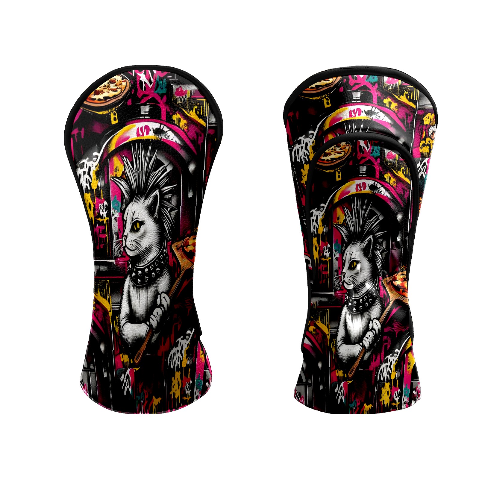 Golf Club Head Covers - Trendy Cat Pizza Driver Fairway Headcover, Premium PU Leather, Protective Velvet Lining, Secure Elastic Band, Fits All Golf Brands, Perfect Gift for Golfers Men Women