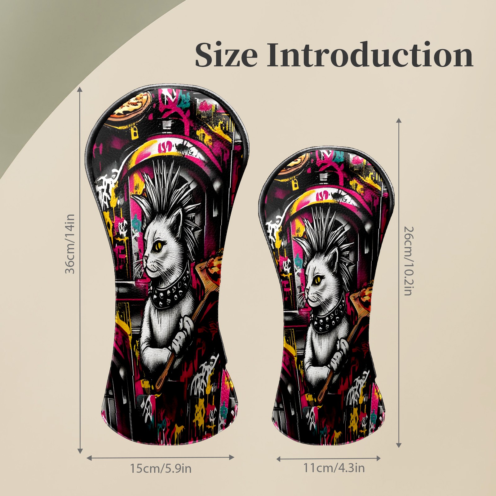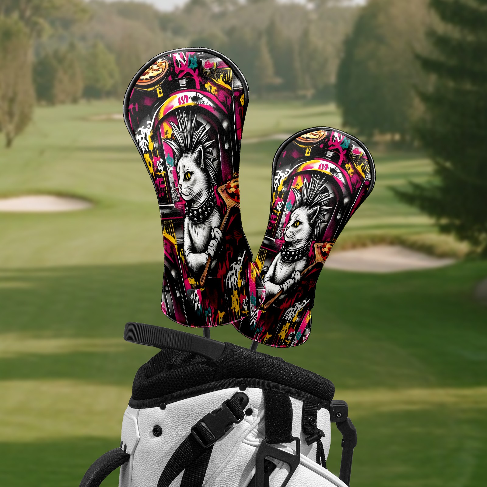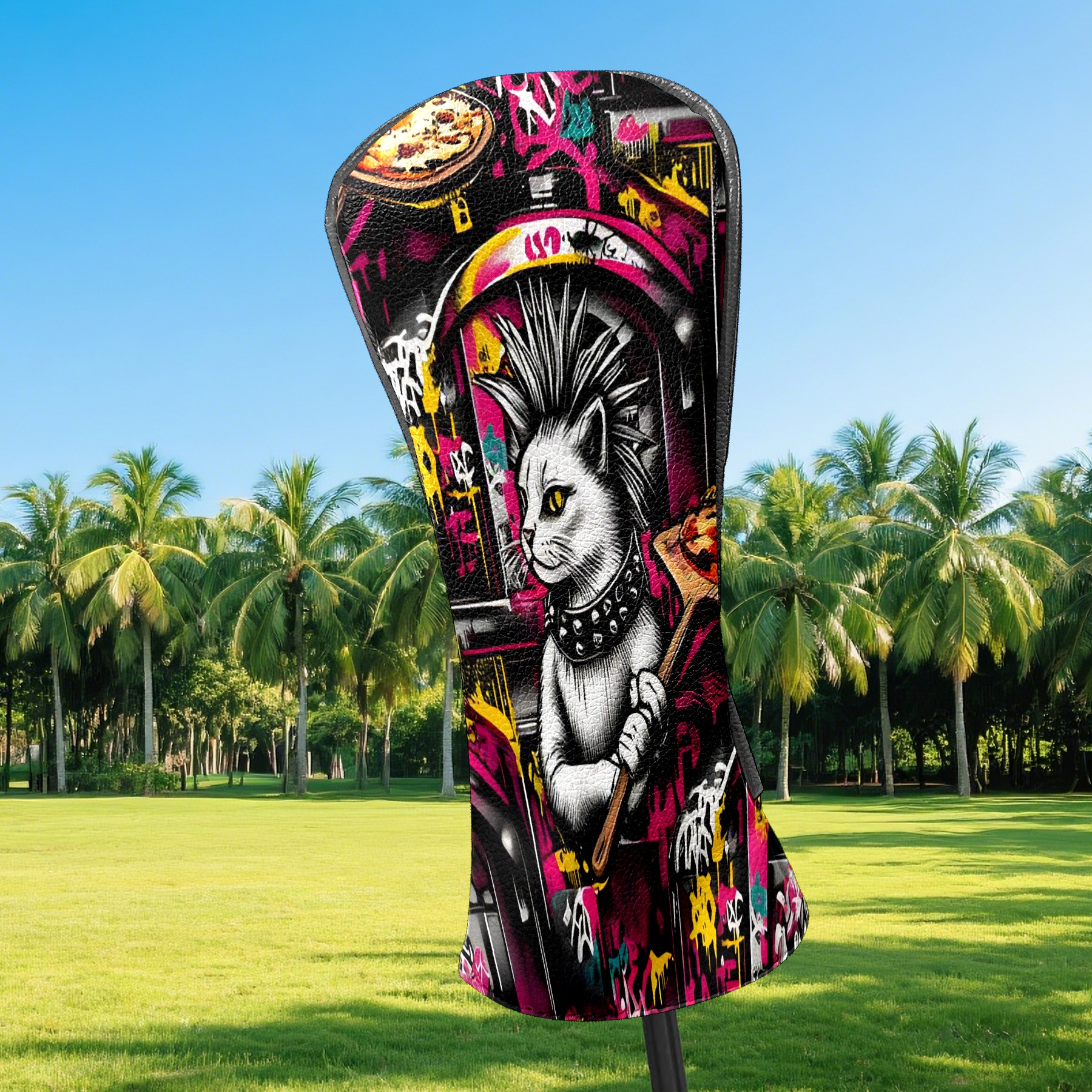 Golf Club Head Covers - Trendy Cat Pizza Driver Fairway Headcover, Premium PU Leather, Protective Velvet Lining, Secure Elastic Band, Fits All Golf Brands, Perfect Gift for Golfers Men Women