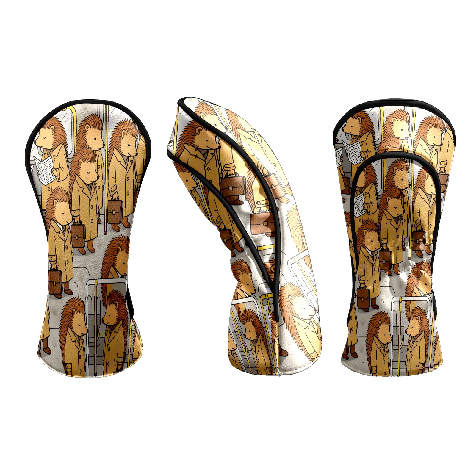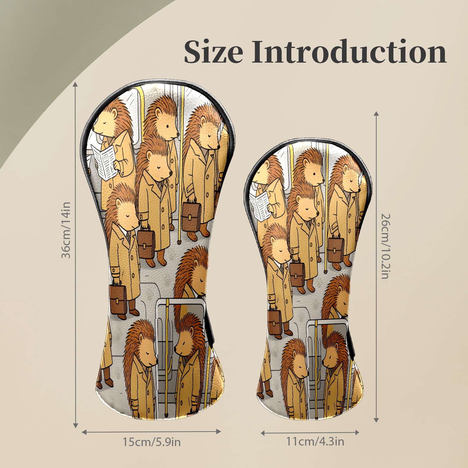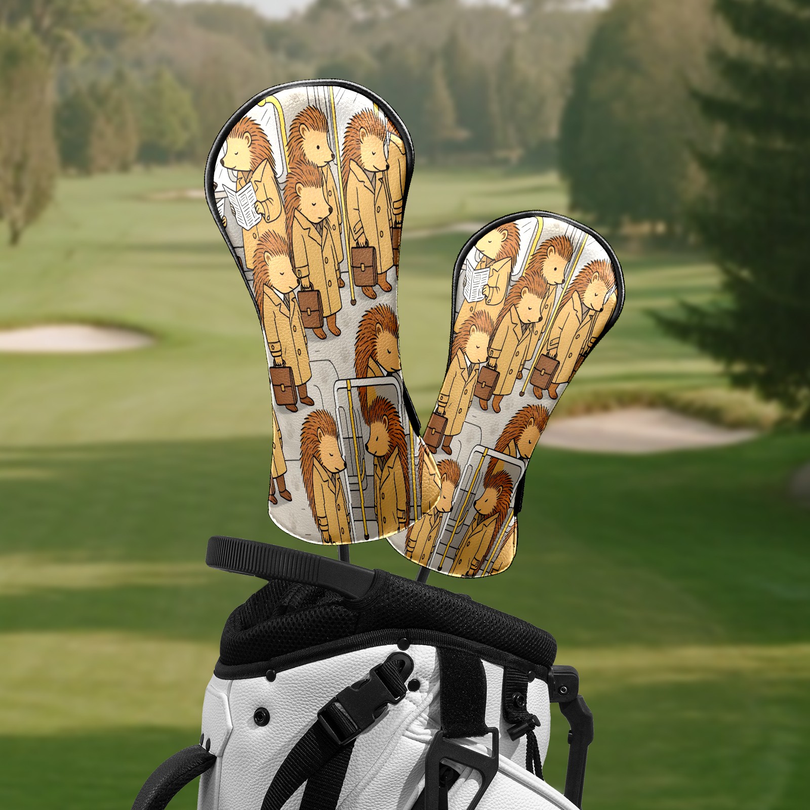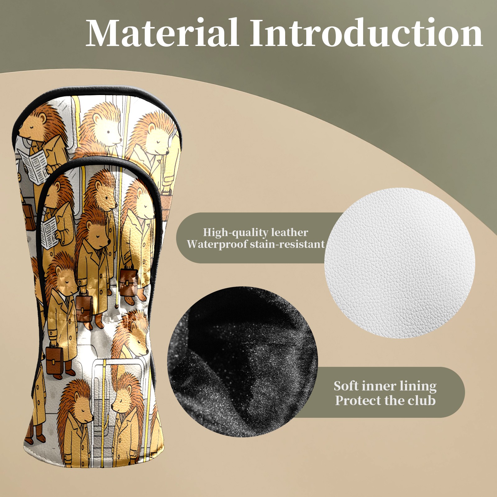 Golf Club Head Covers - Daily Hedgehog Brown Driver Fairway Headcover, Premium PU Leather, Protective Velvet Lining, Secure Elastic Band, Fits All Golf Brands, Perfect Gift for Golfers Men Women