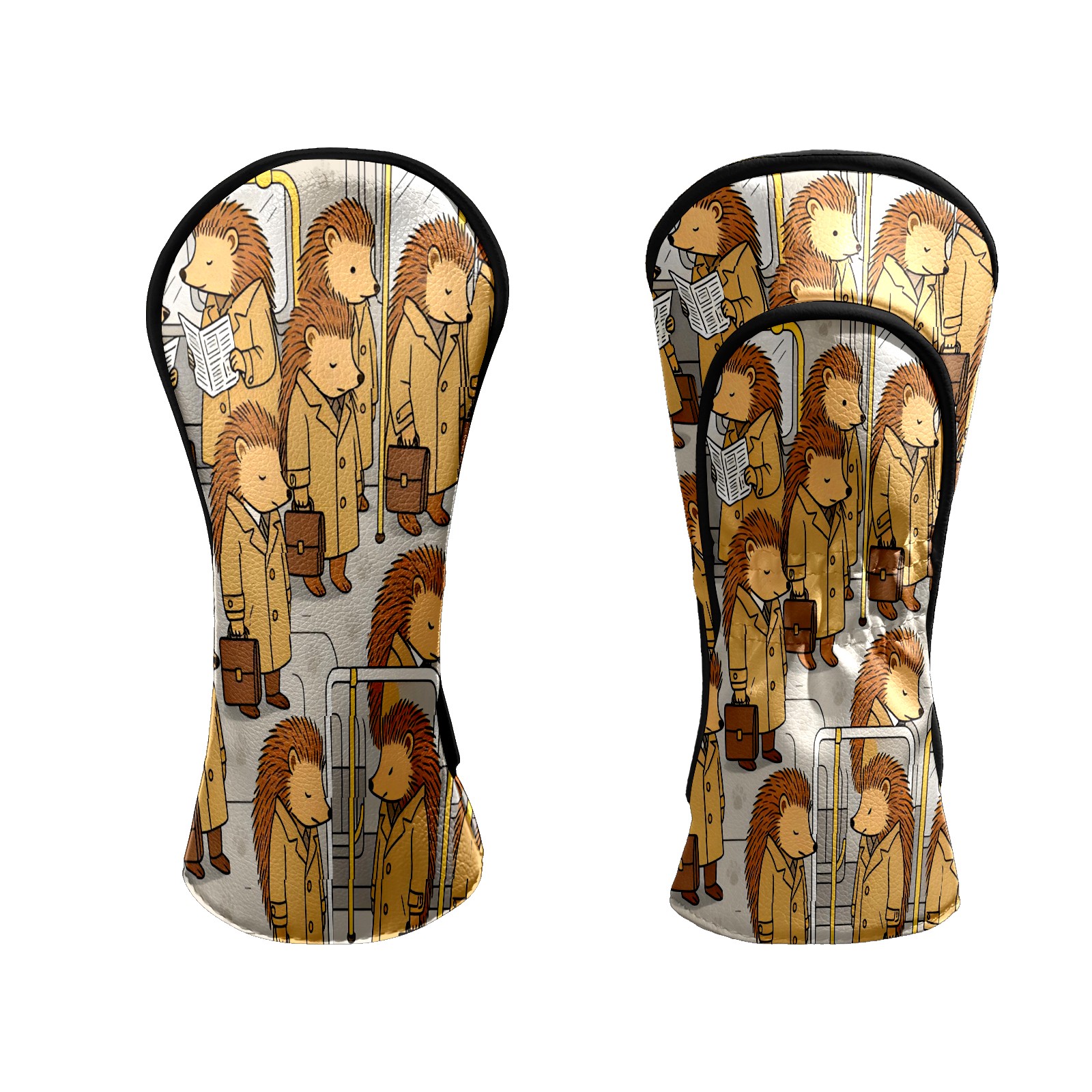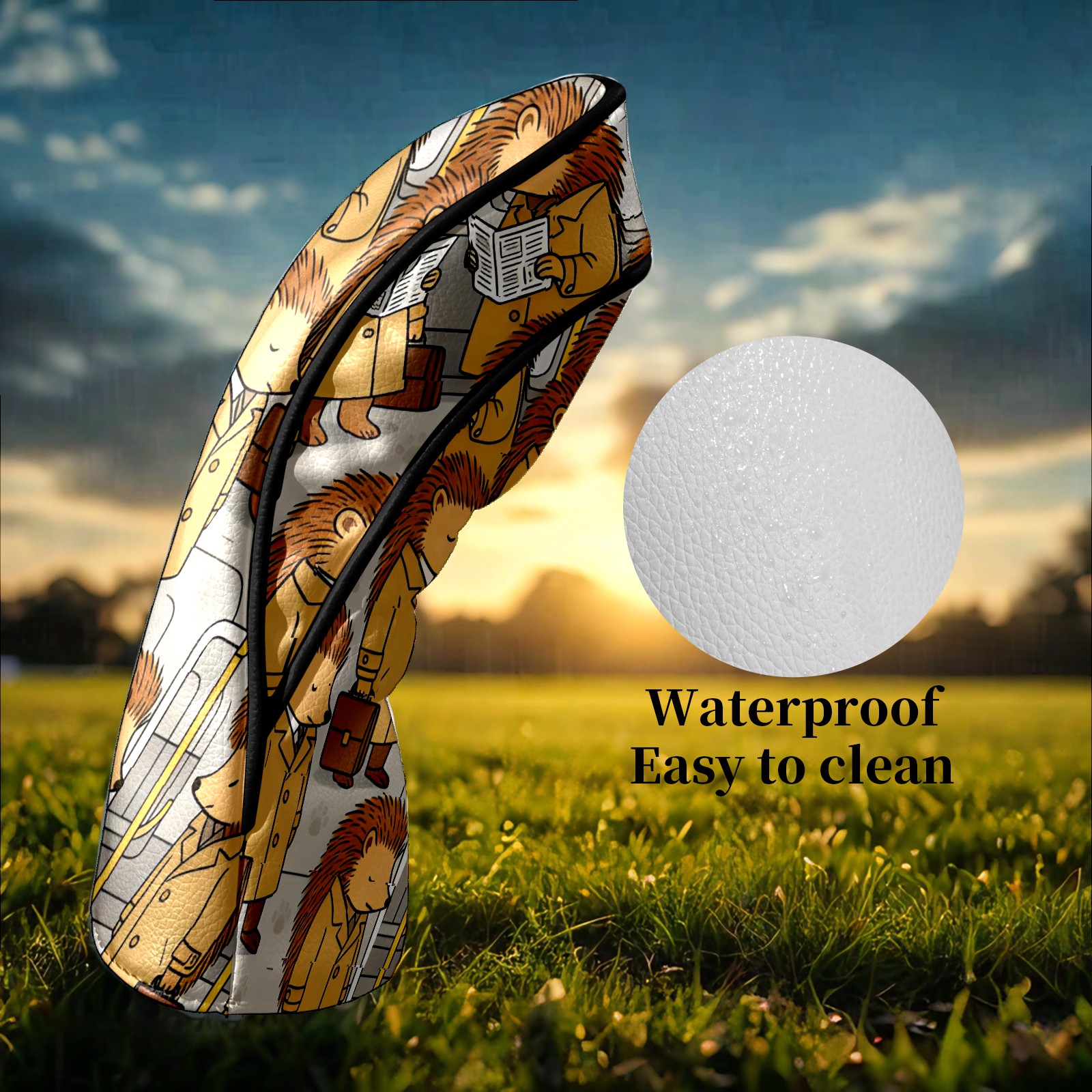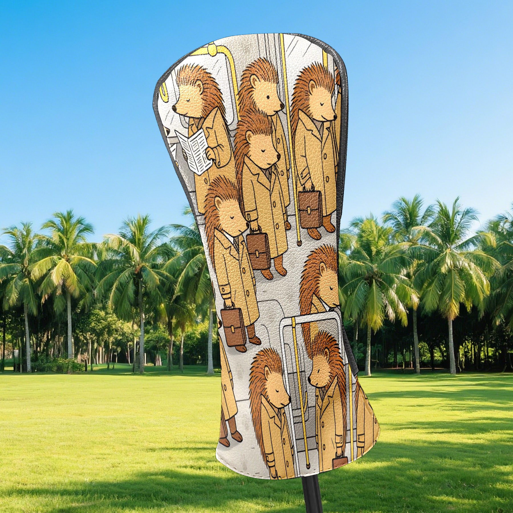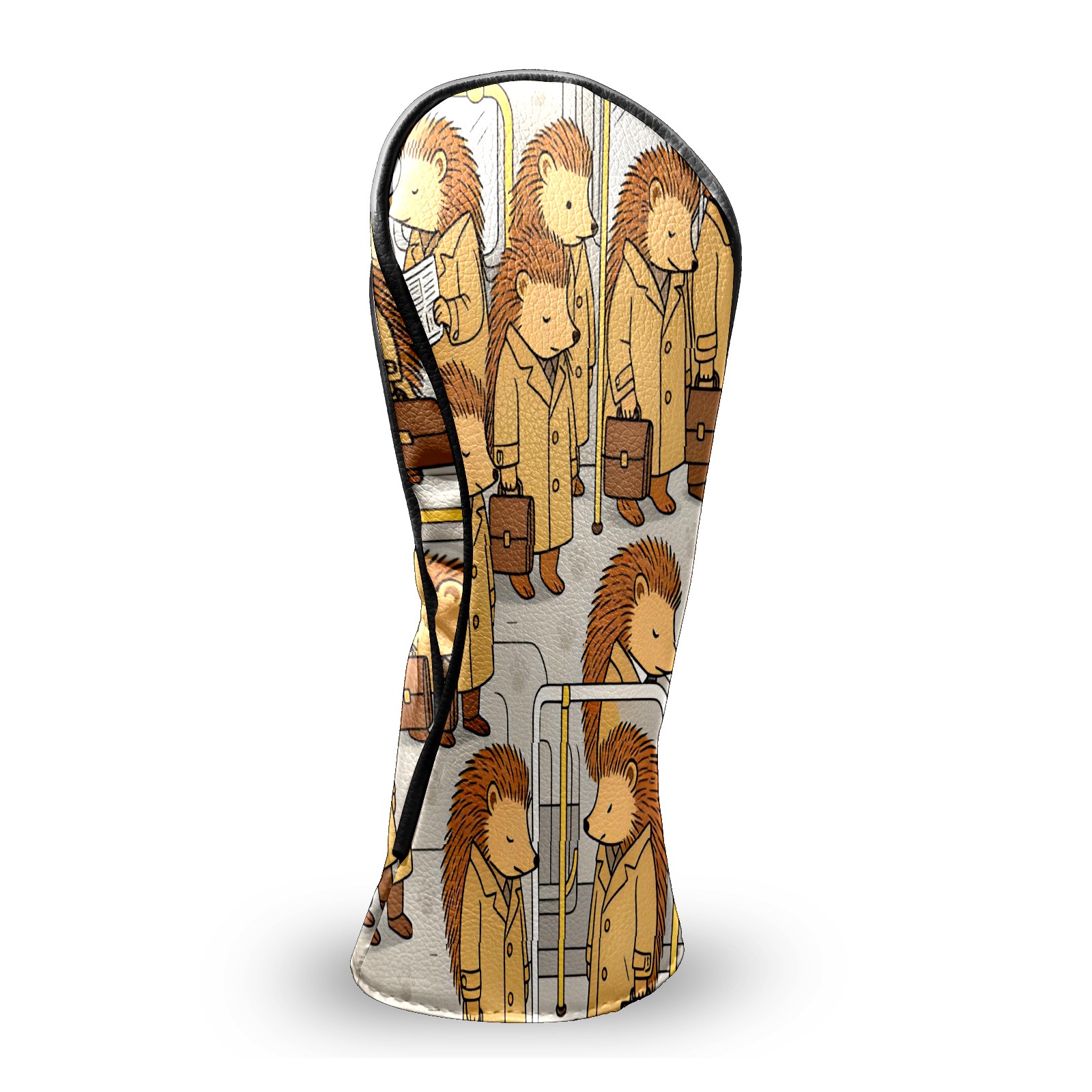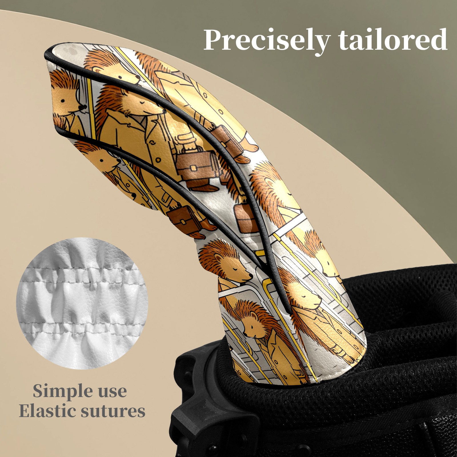 Golf Club Head Covers - Daily Hedgehog Brown Driver Fairway Headcover, Premium PU Leather, Protective Velvet Lining, Secure Elastic Band, Fits All Golf Brands, Perfect Gift for Golfers Men Women