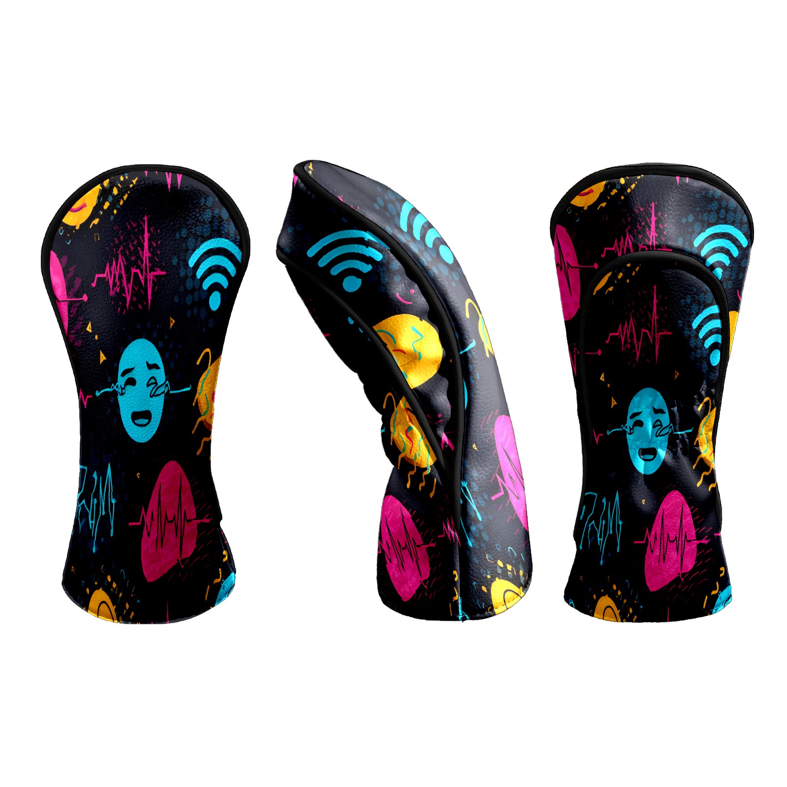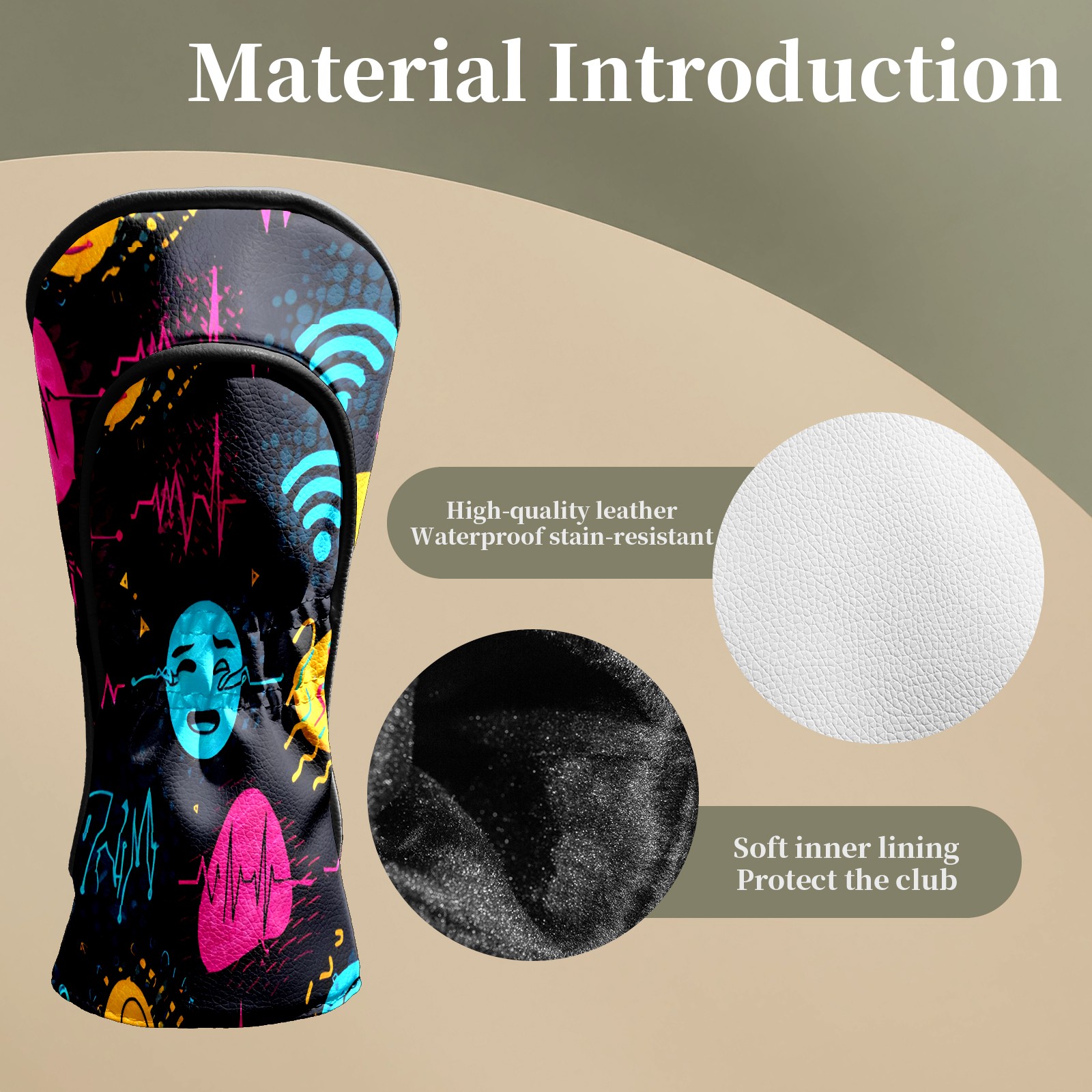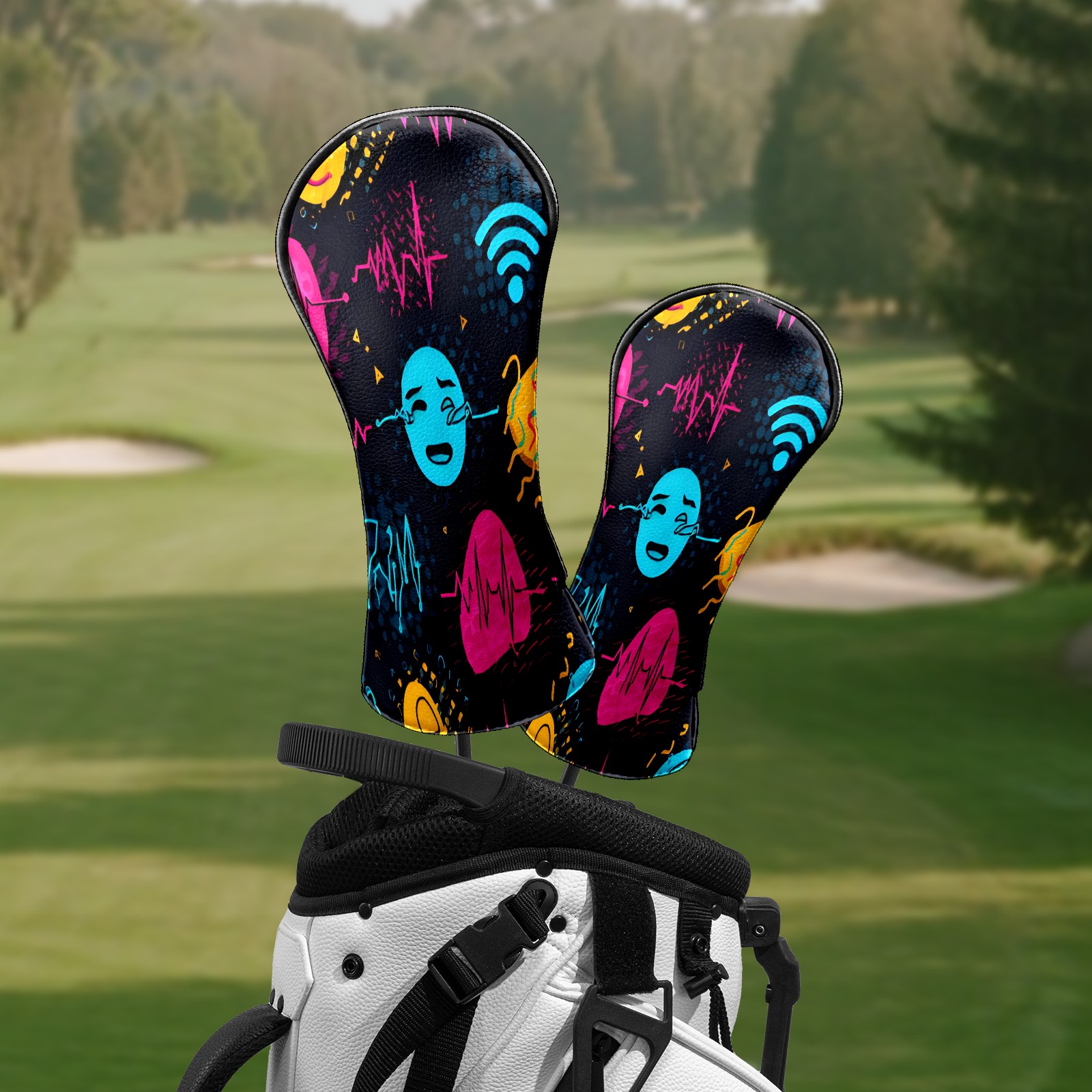 Golf Club Head Covers - Funny Emoji Black Driver Fairway Headcover, Premium PU Leather, Protective Velvet Lining, Secure Elastic Band, Fits All Golf Brands, Perfect Gift for Golfers Men Women