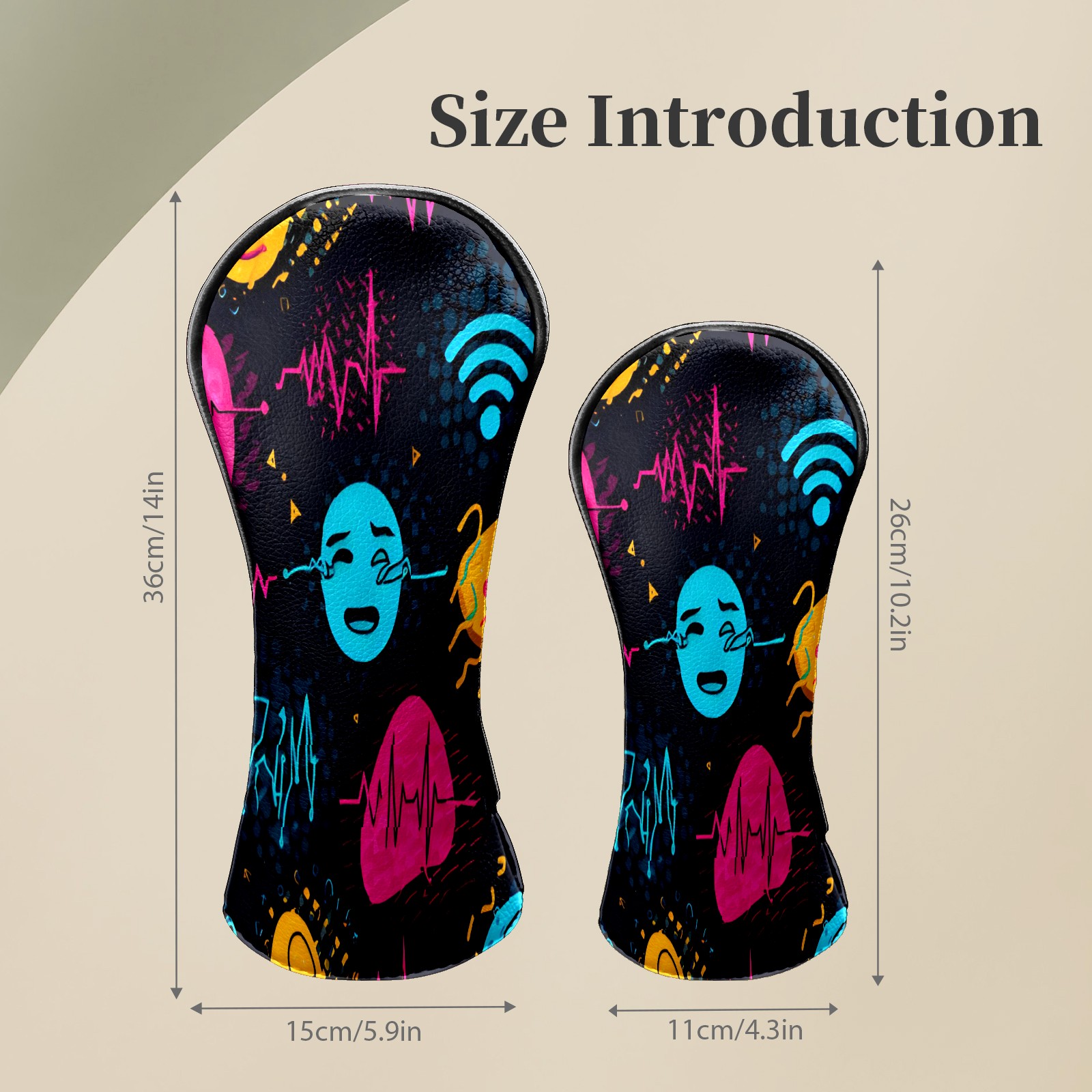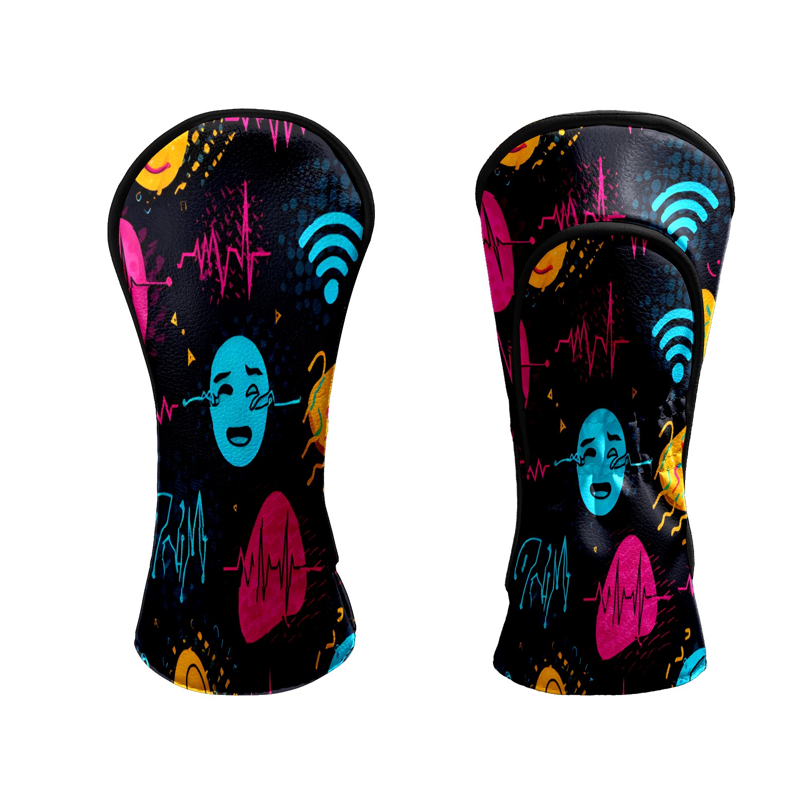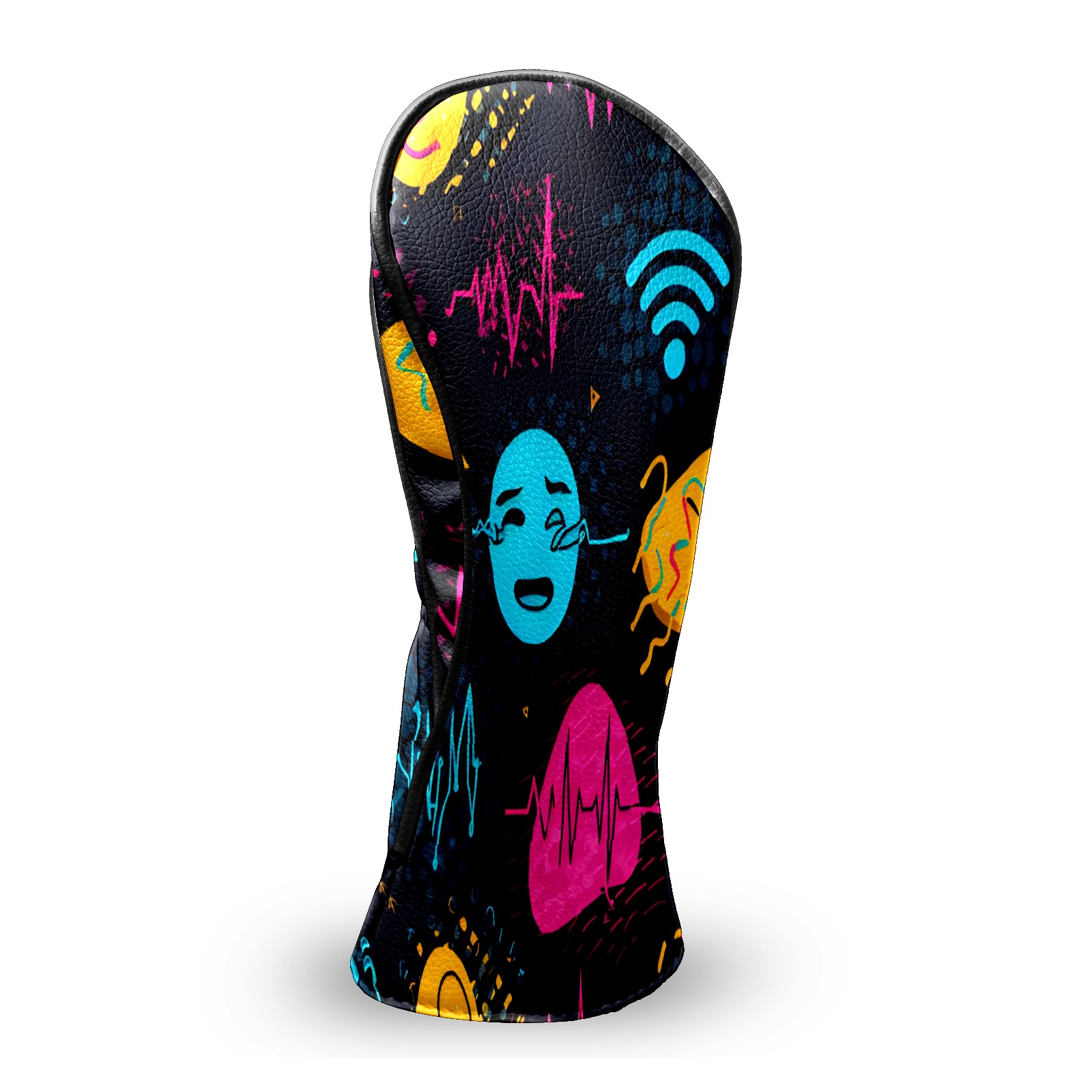 Golf Club Head Covers - Funny Emoji Black Driver Fairway Headcover, Premium PU Leather, Protective Velvet Lining, Secure Elastic Band, Fits All Golf Brands, Perfect Gift for Golfers Men Women