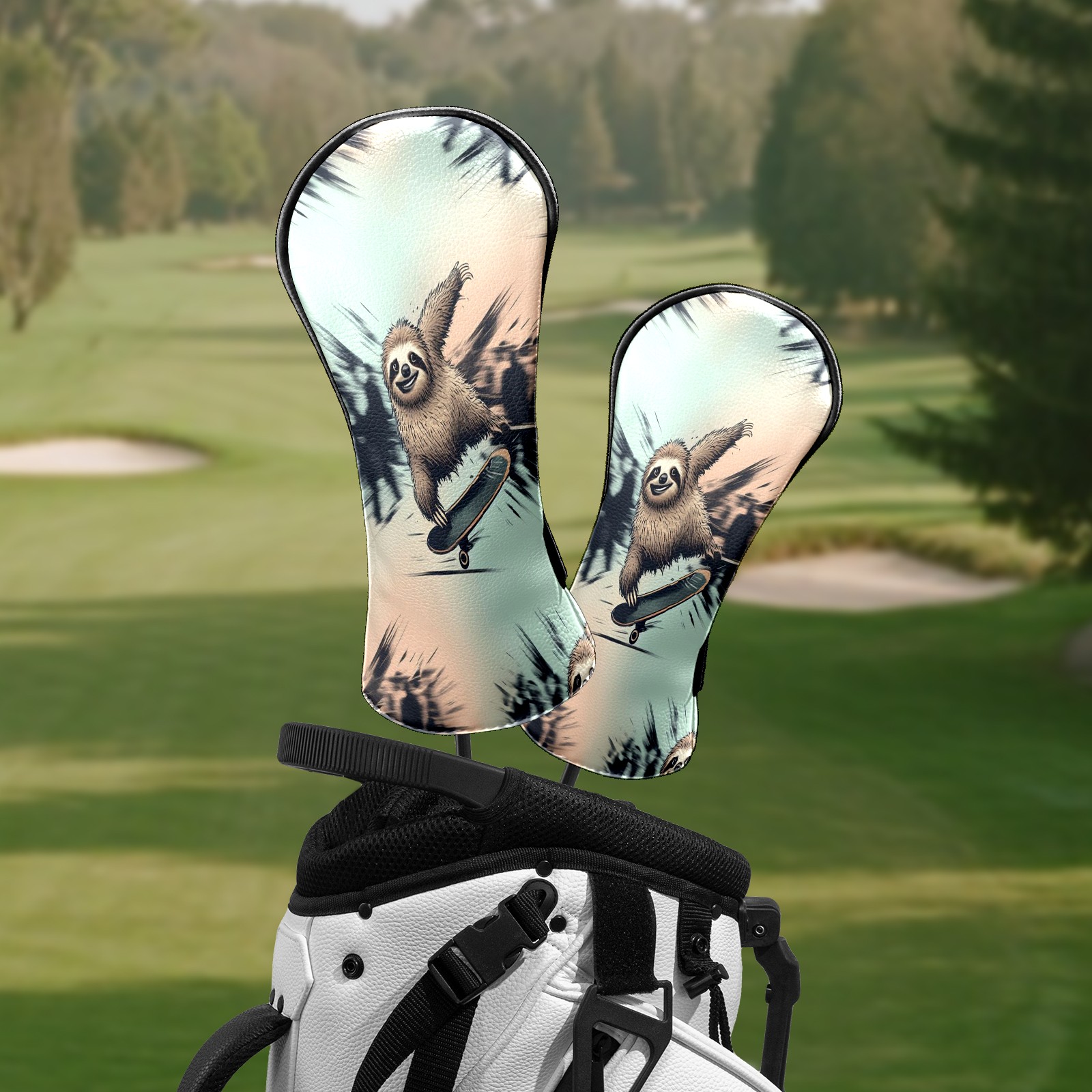 Golf Club Head Covers - Cool Sloth Blue Driver Fairway Headcover, Premium PU Leather, Protective Velvet Lining, Secure Elastic Band, Fits All Golf Brands, Perfect Gift for Golfers Men Women