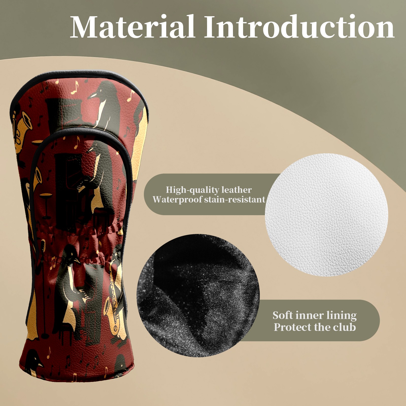 Golf Club Head Covers - Elegant Penguin Brown Driver Fairway Headcover, Premium PU Leather, Protective Velvet Lining, Secure Elastic Band, Fits All Golf Brands, Perfect Gift for Golfers Men Women