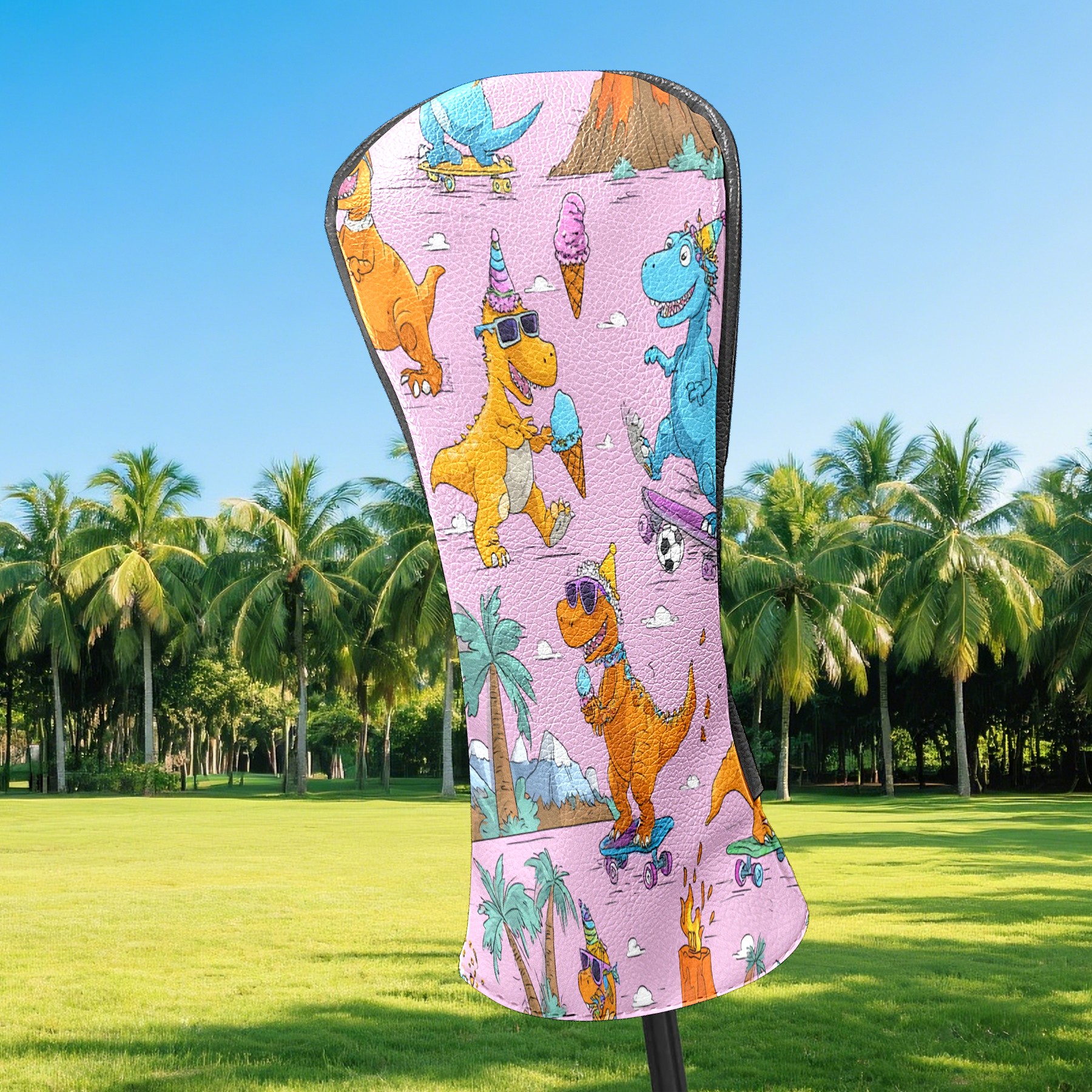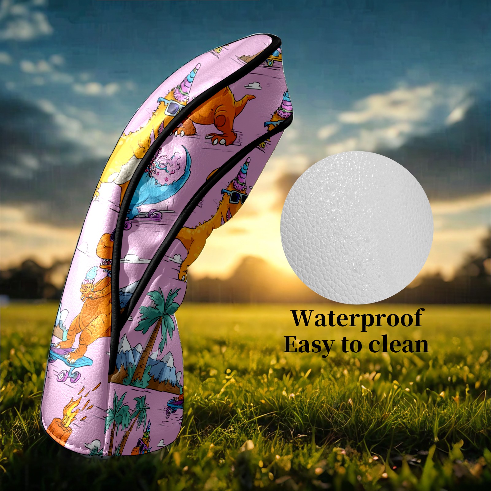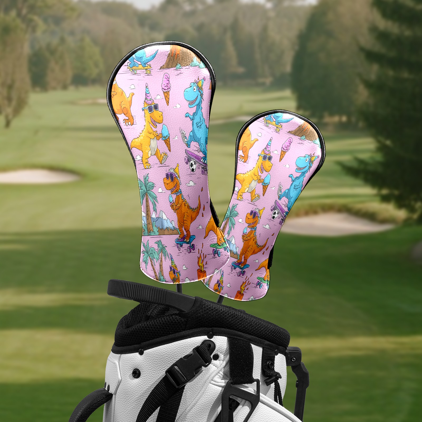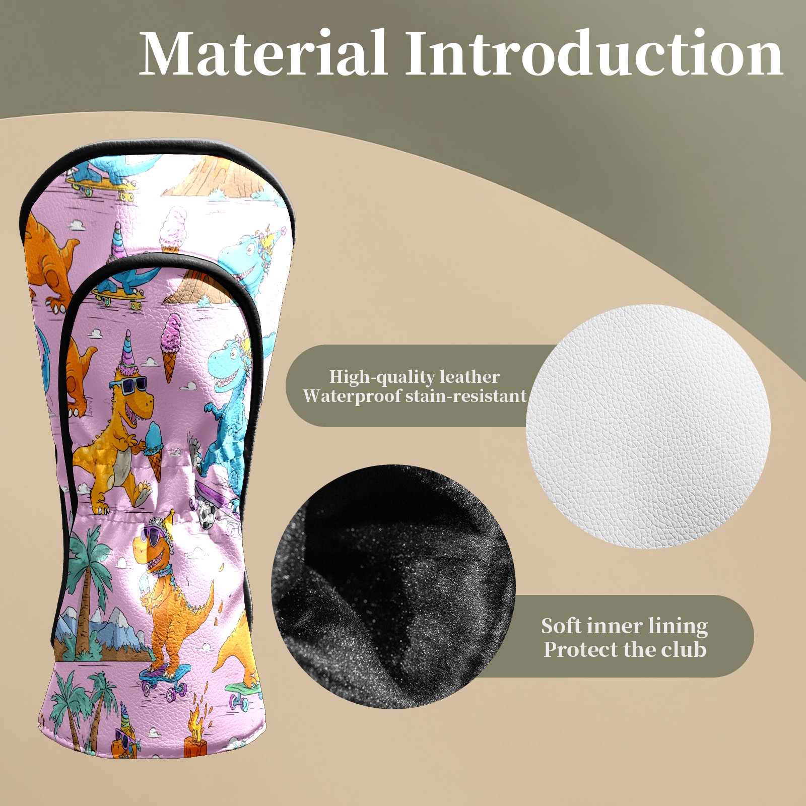 Golf Club Head Covers - Playful Dinosaur Pink Driver Fairway Headcover, Premium PU Leather, Protective Velvet Lining, Secure Elastic Band, Fits All Golf Brands, Perfect Gift for Golfers Men Women