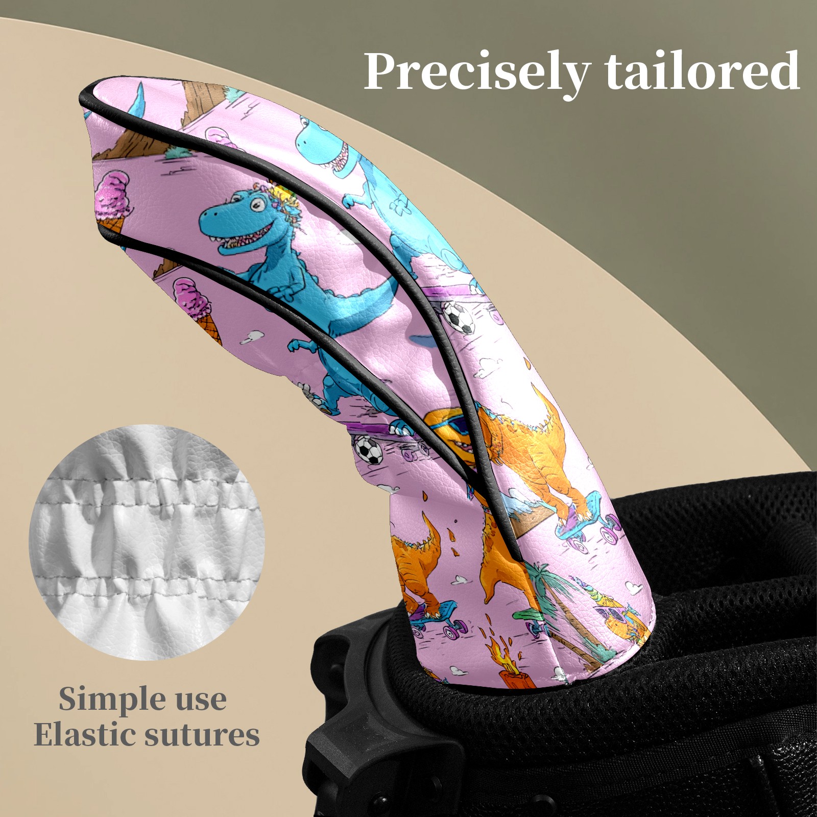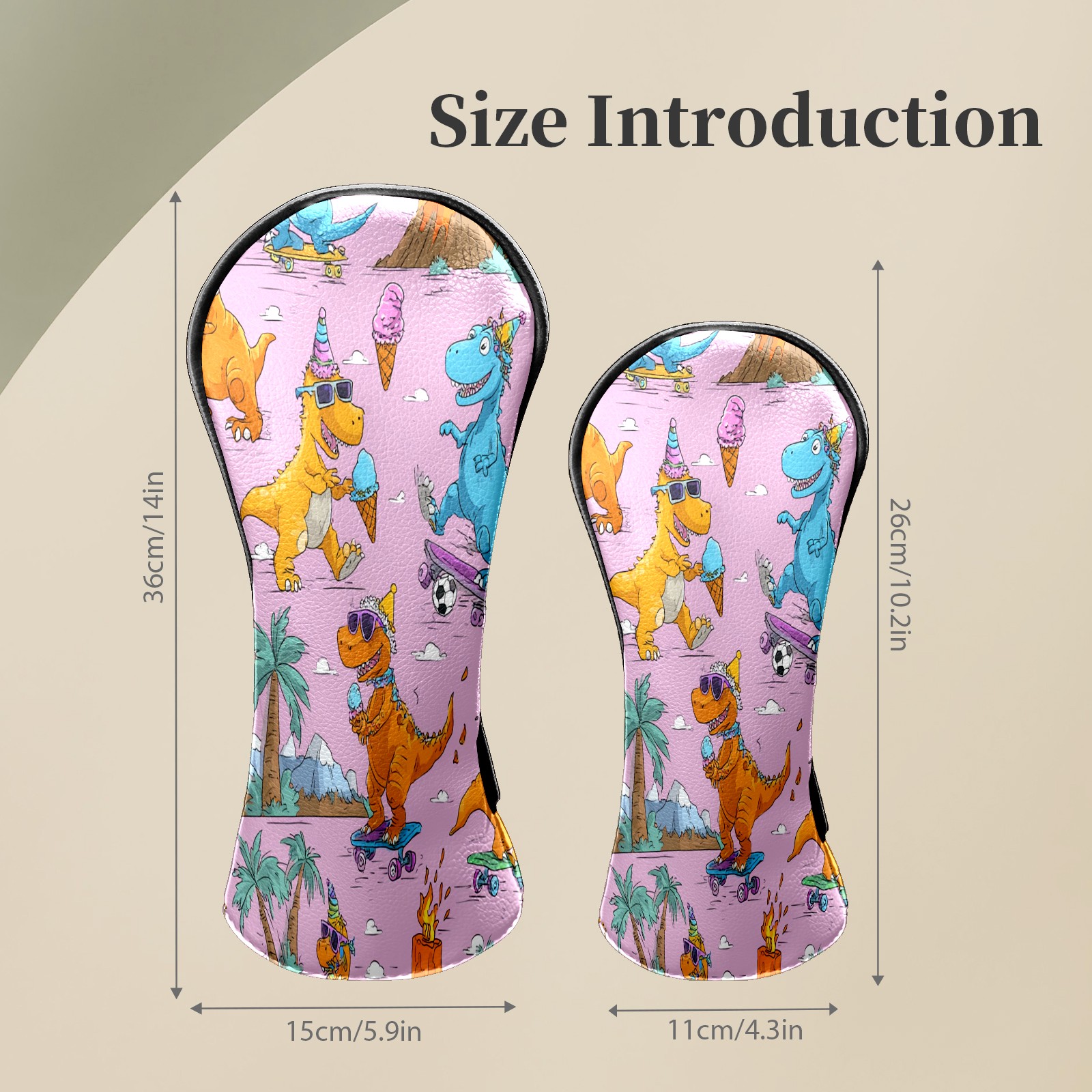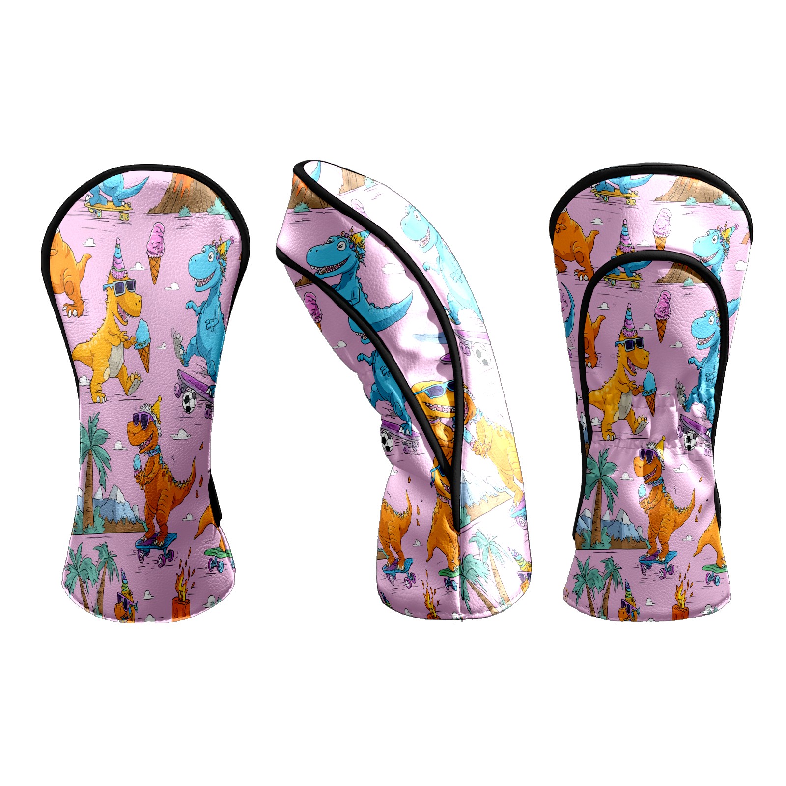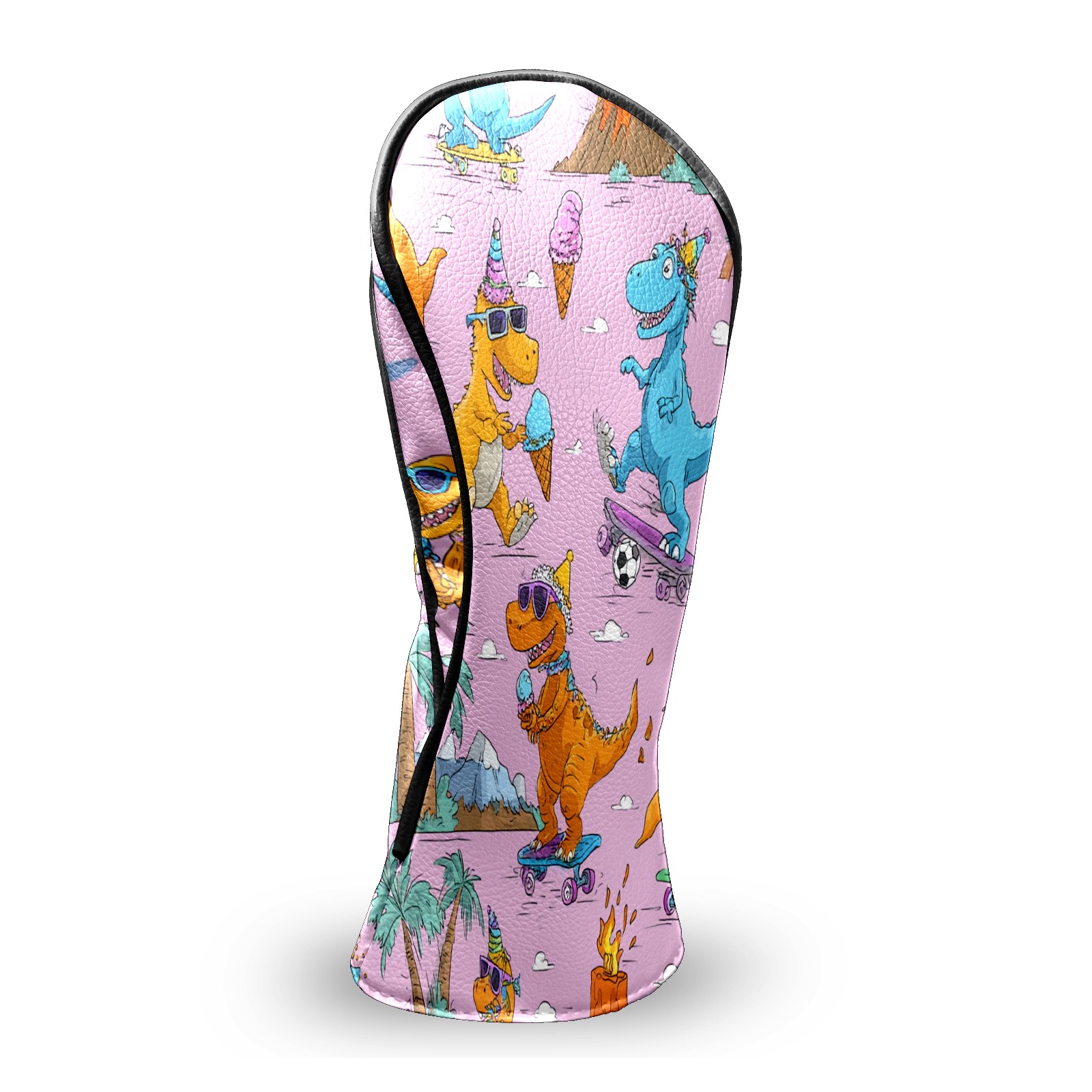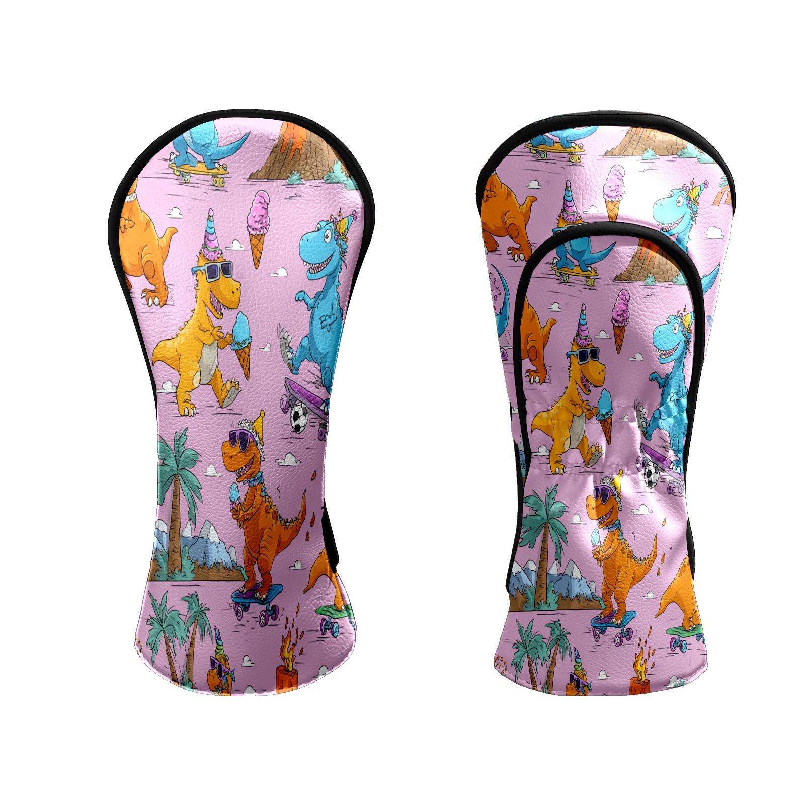 Golf Club Head Covers - Playful Dinosaur Pink Driver Fairway Headcover, Premium PU Leather, Protective Velvet Lining, Secure Elastic Band, Fits All Golf Brands, Perfect Gift for Golfers Men Women