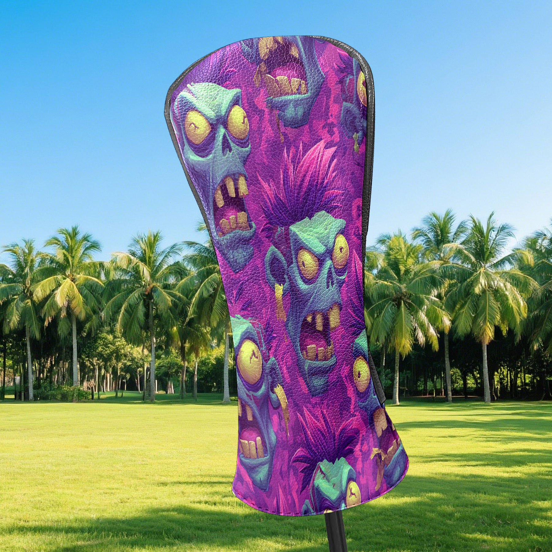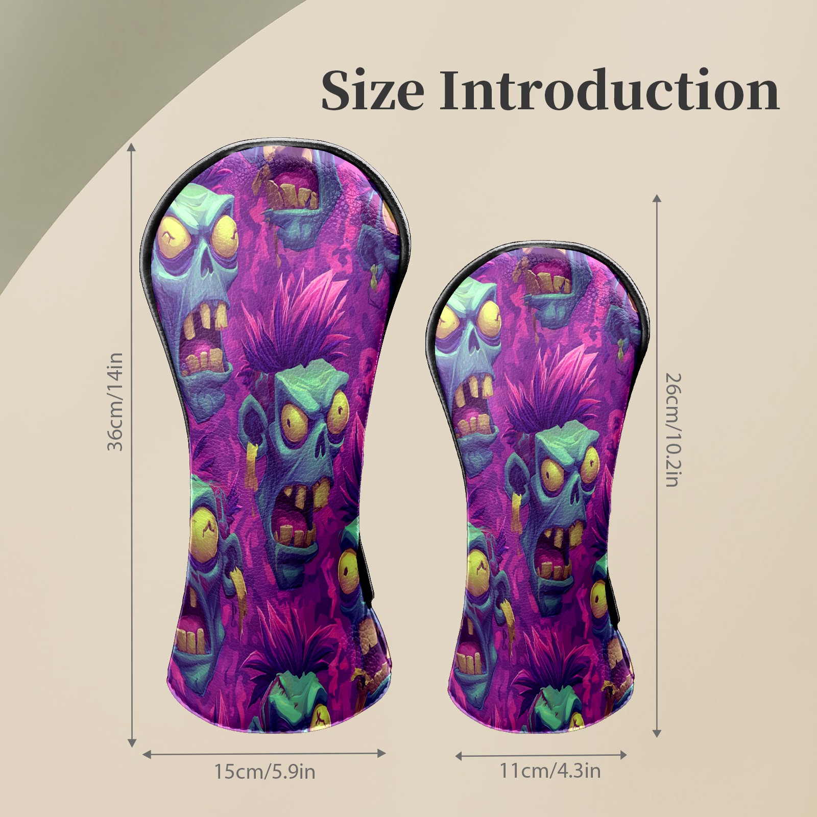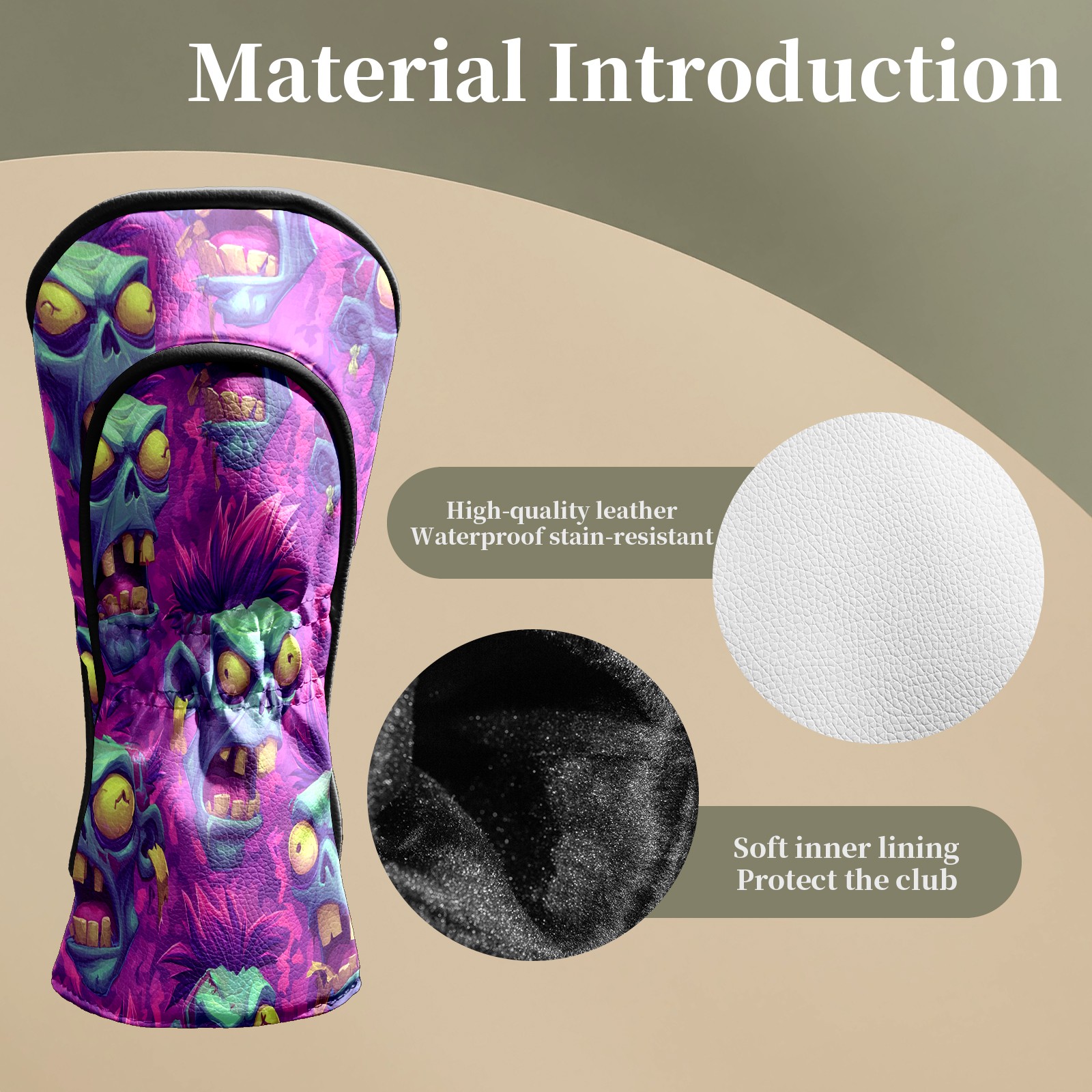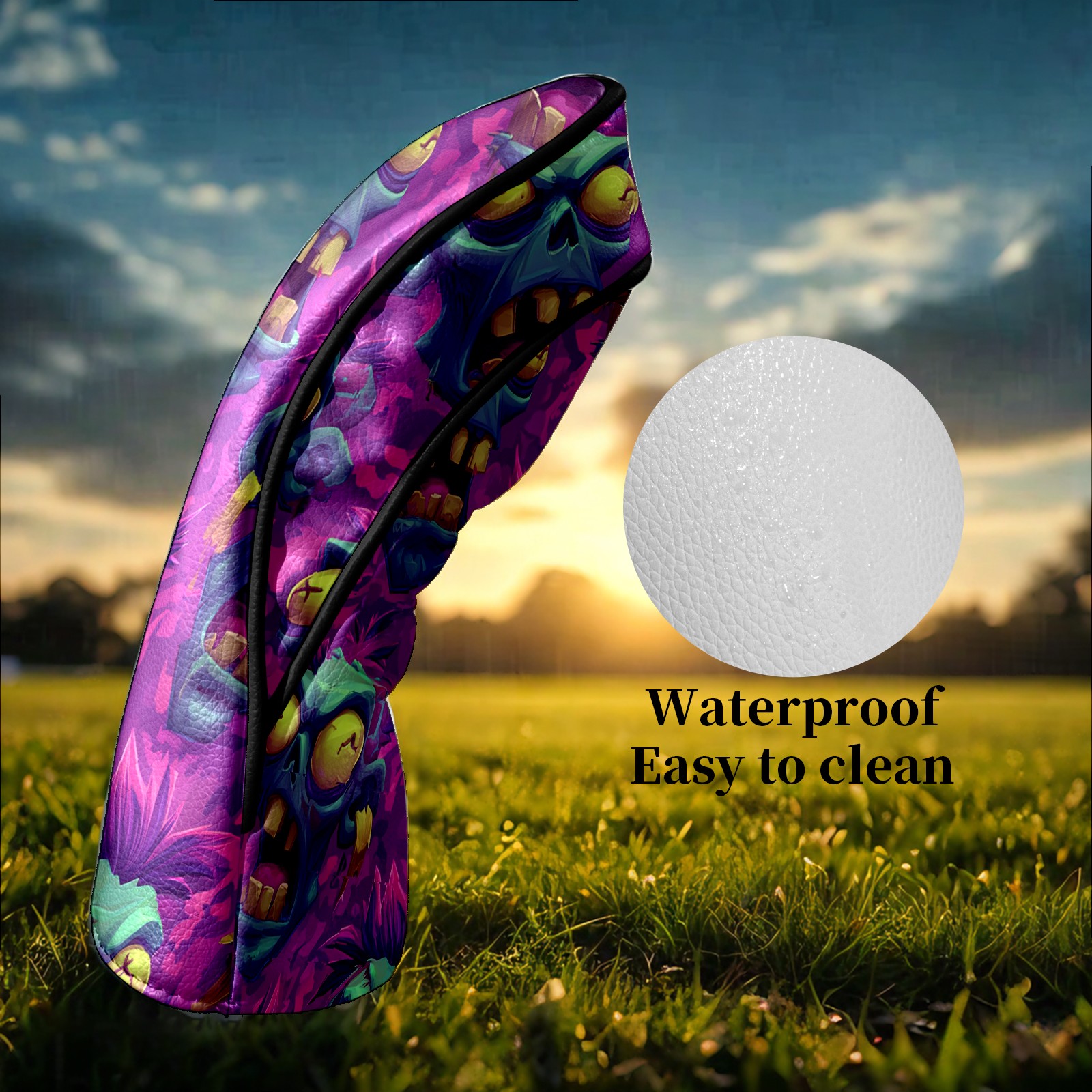 Golf Club Head Covers - Dark Zombie Purple Driver Fairway Headcover, Premium PU Leather, Protective Velvet Lining, Secure Elastic Band, Fits All Golf Brands, Perfect Gift for Golfers Men Women