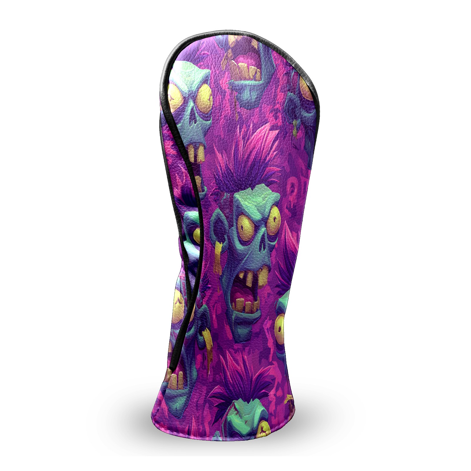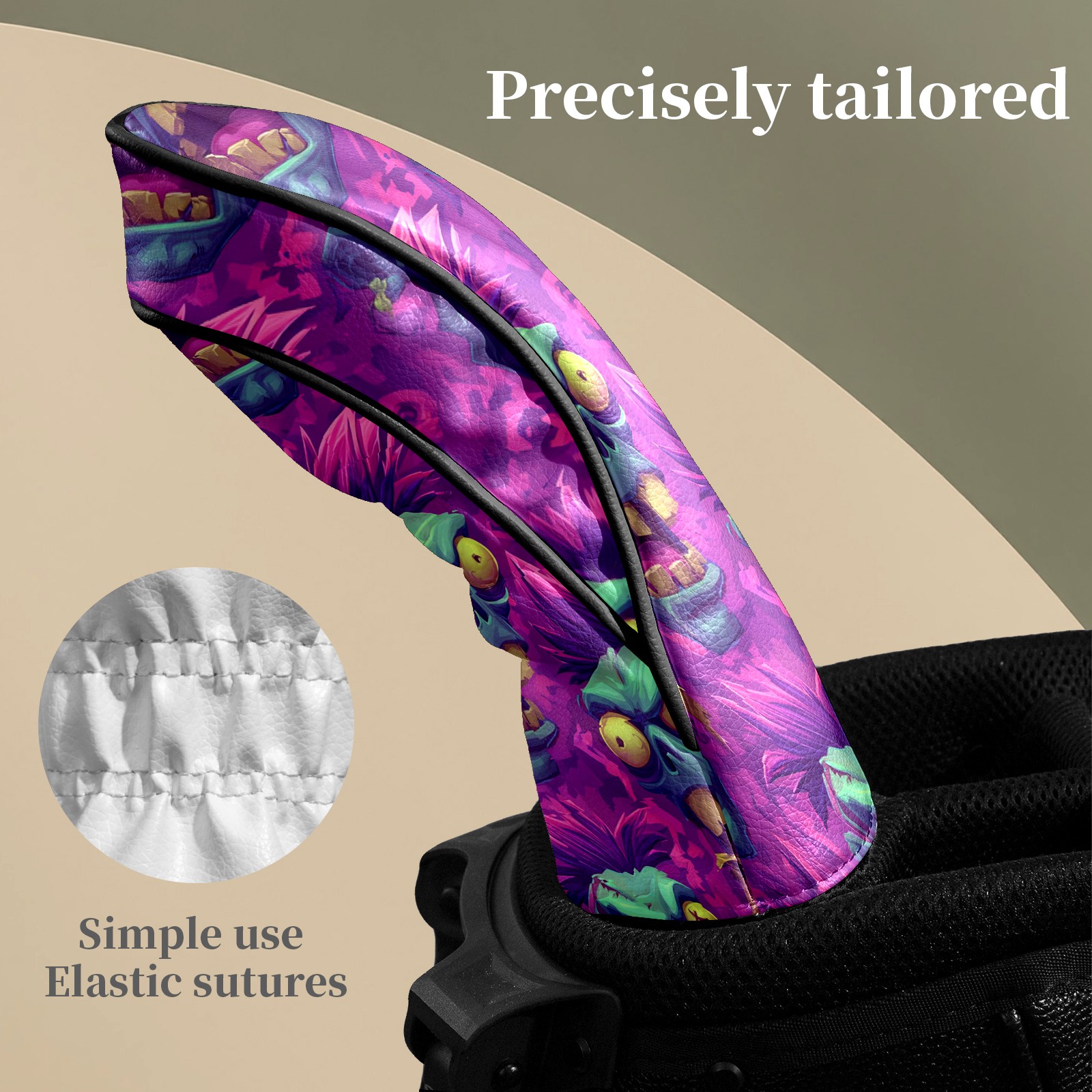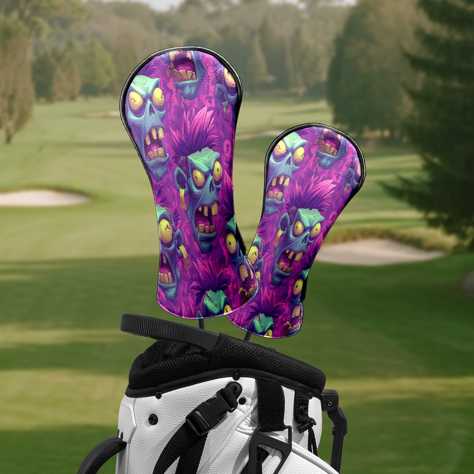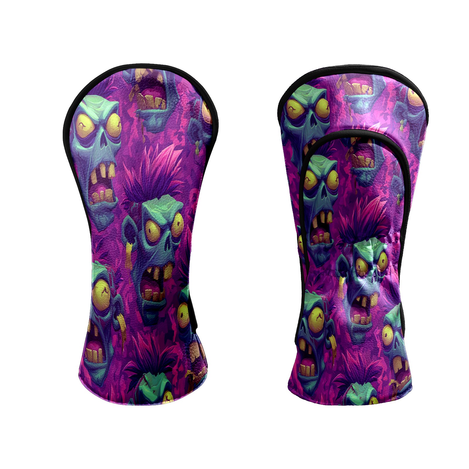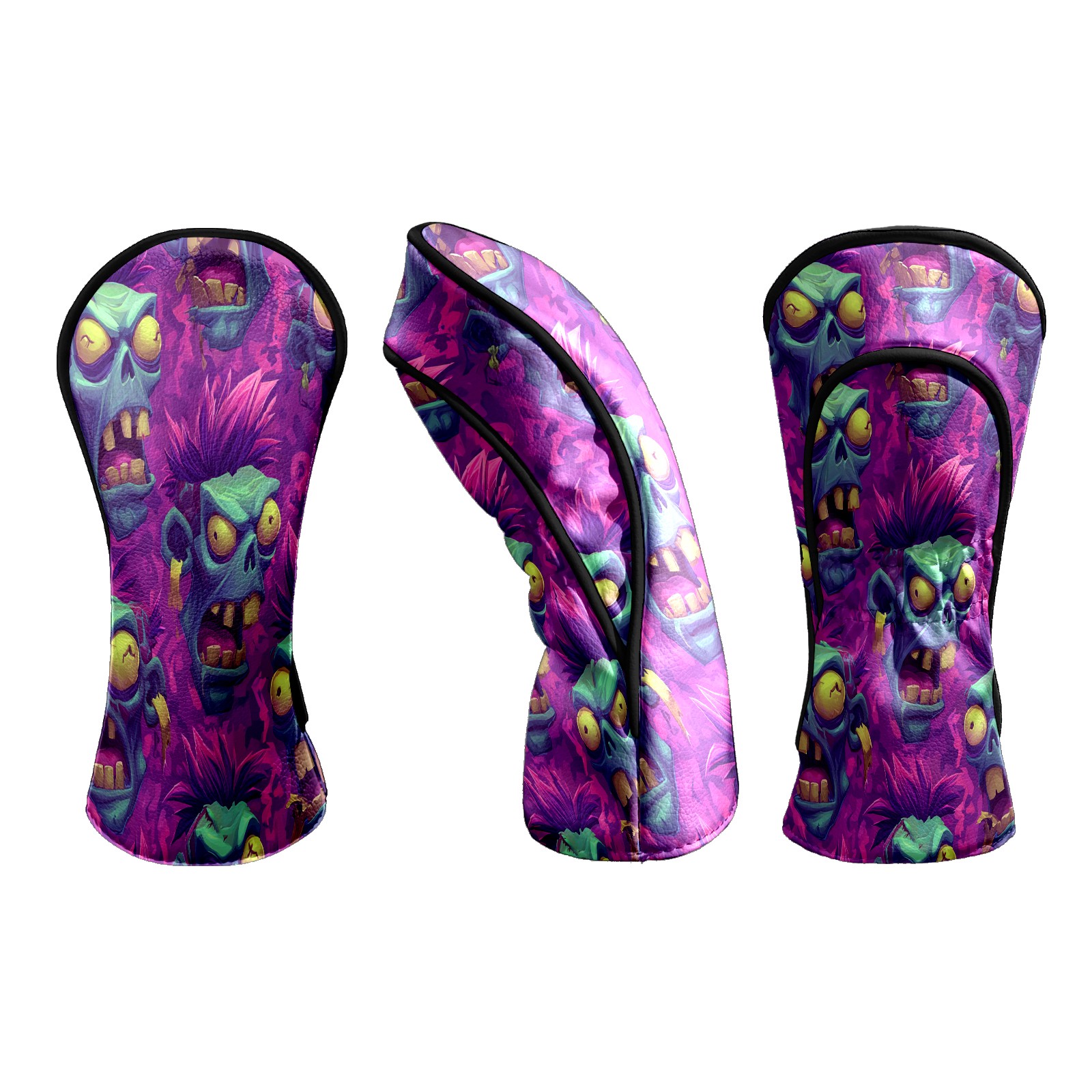 Golf Club Head Covers - Dark Zombie Purple Driver Fairway Headcover, Premium PU Leather, Protective Velvet Lining, Secure Elastic Band, Fits All Golf Brands, Perfect Gift for Golfers Men Women