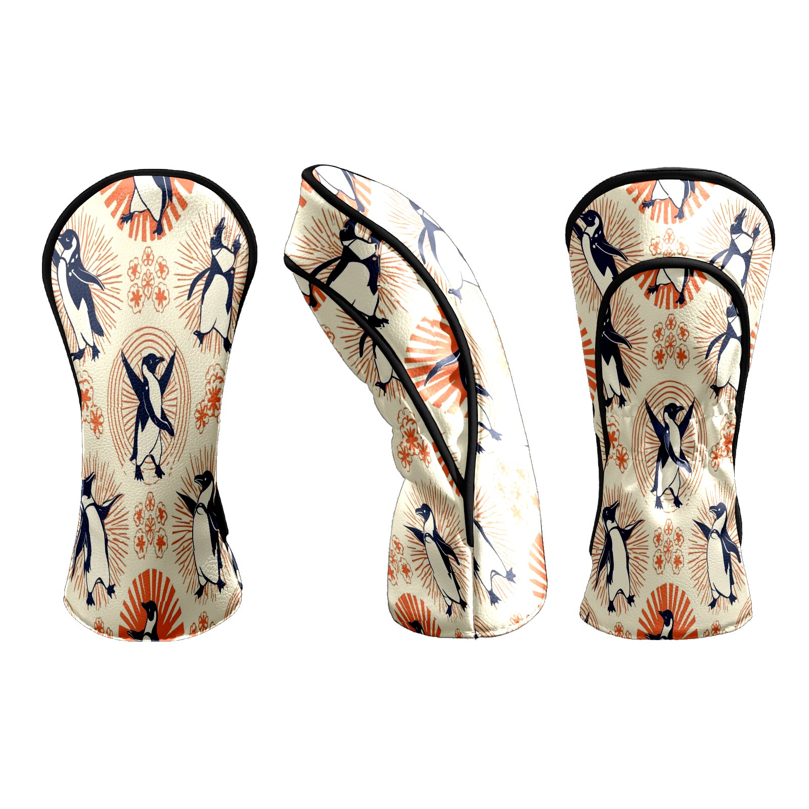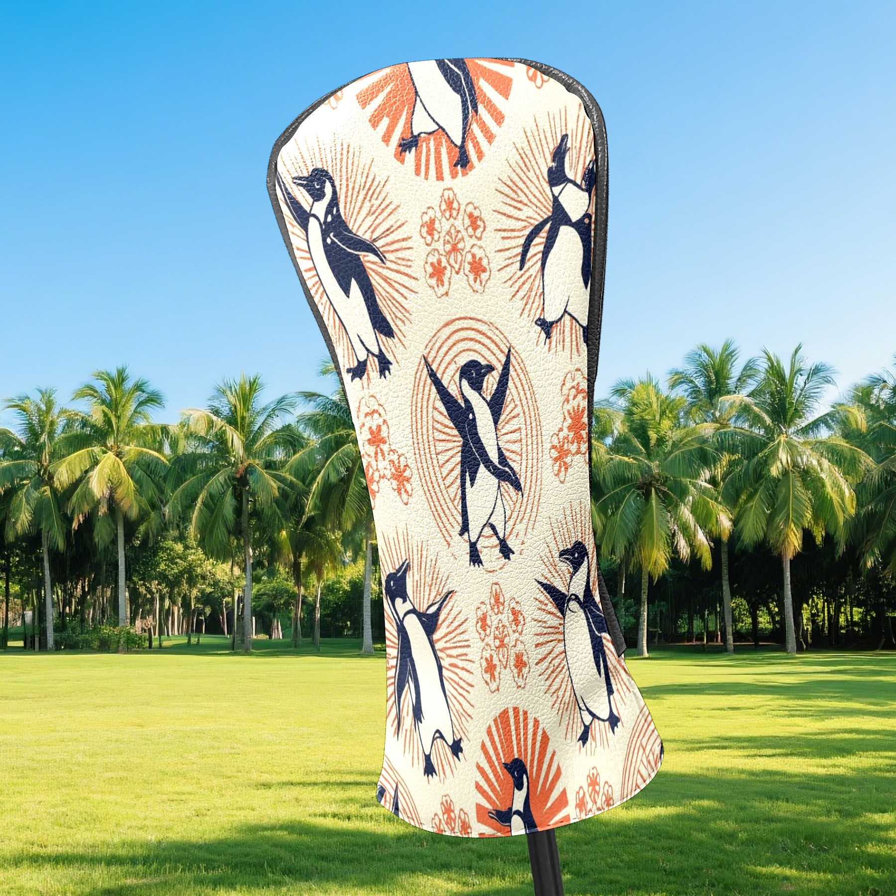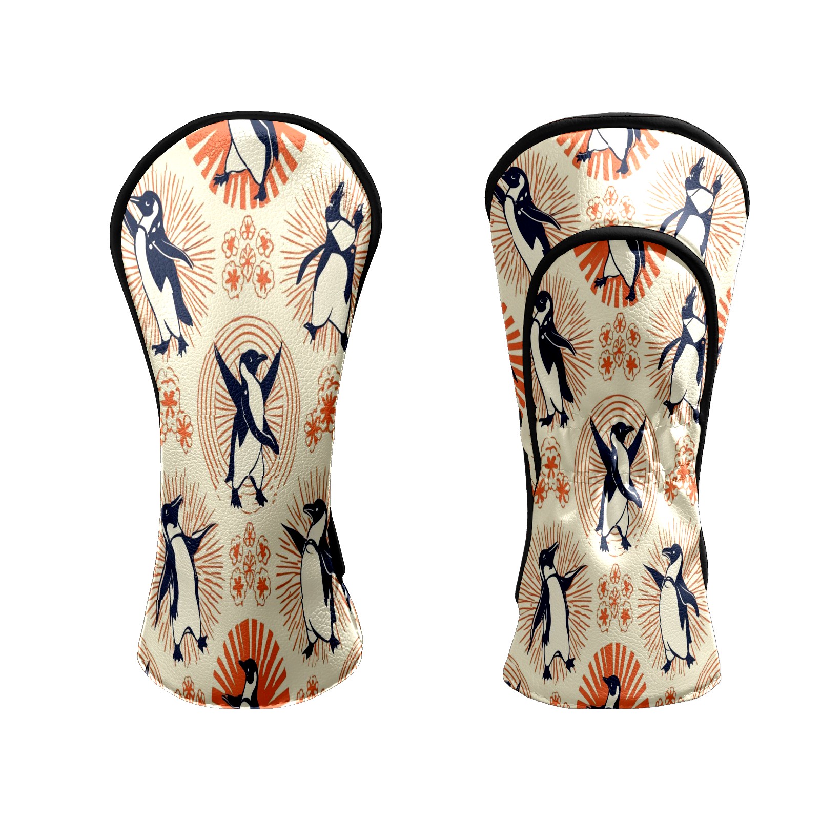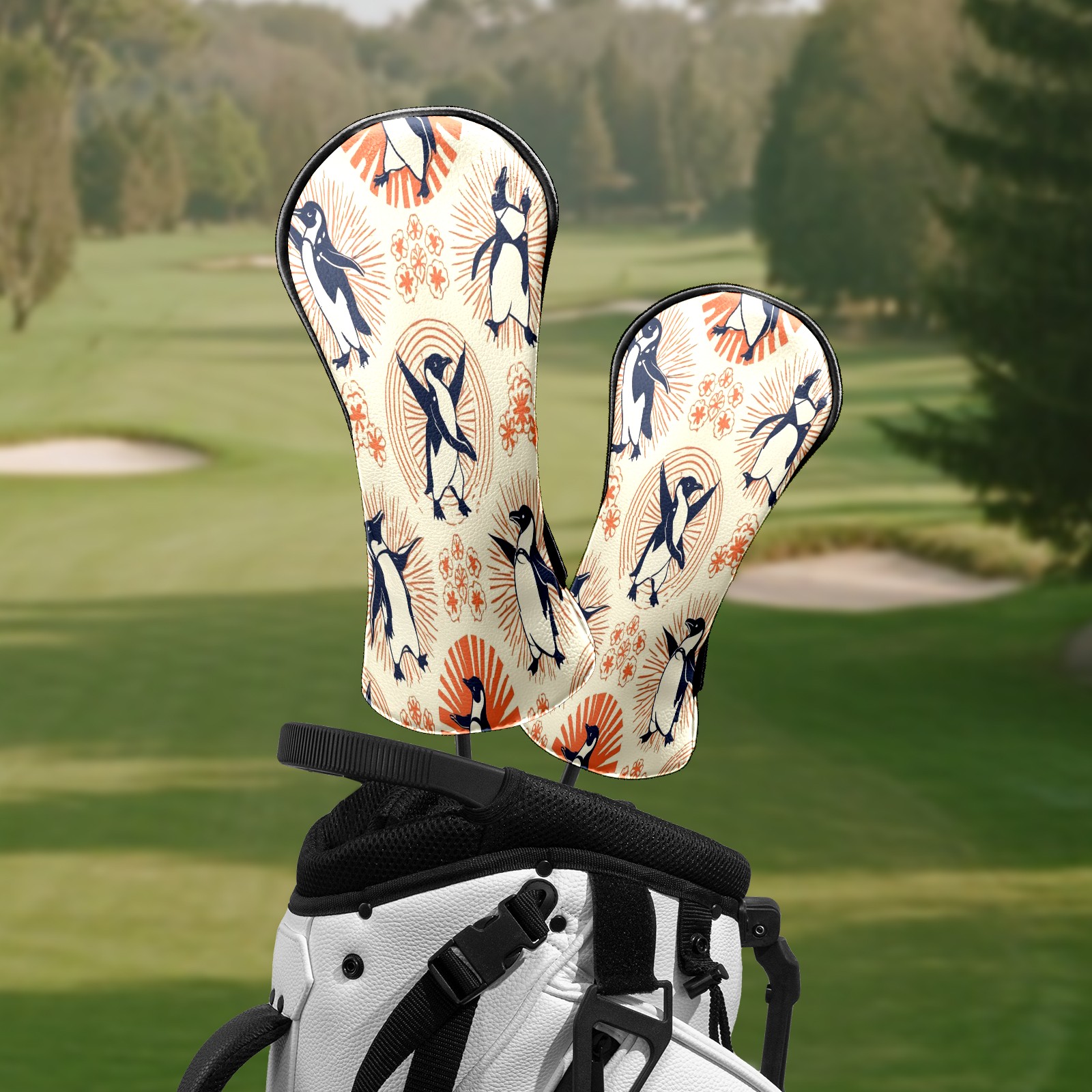 Golf Club Head Covers - Playful Penguin Orange Driver Fairway Headcover, Premium PU Leather, Protective Velvet Lining, Secure Elastic Band, Fits All Golf Brands, Perfect Gift for Golfers Men Women