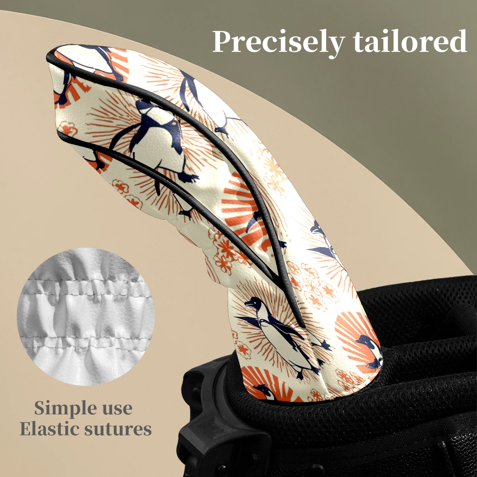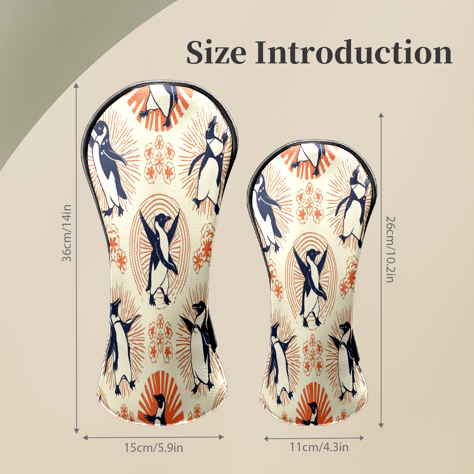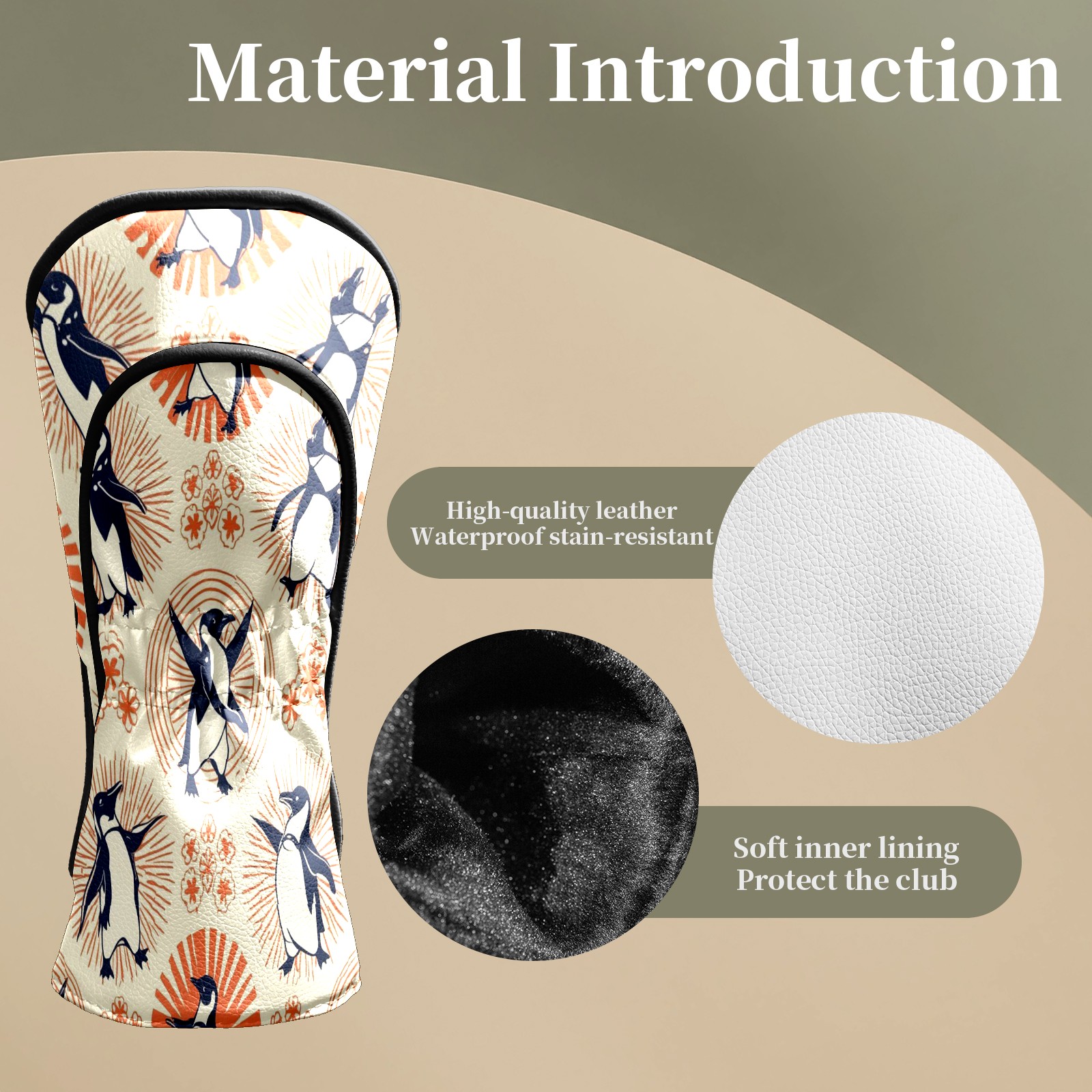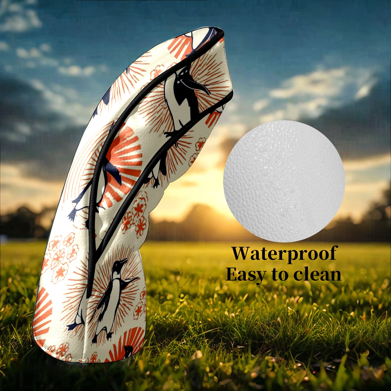 Golf Club Head Covers - Playful Penguin Orange Driver Fairway Headcover, Premium PU Leather, Protective Velvet Lining, Secure Elastic Band, Fits All Golf Brands, Perfect Gift for Golfers Men Women