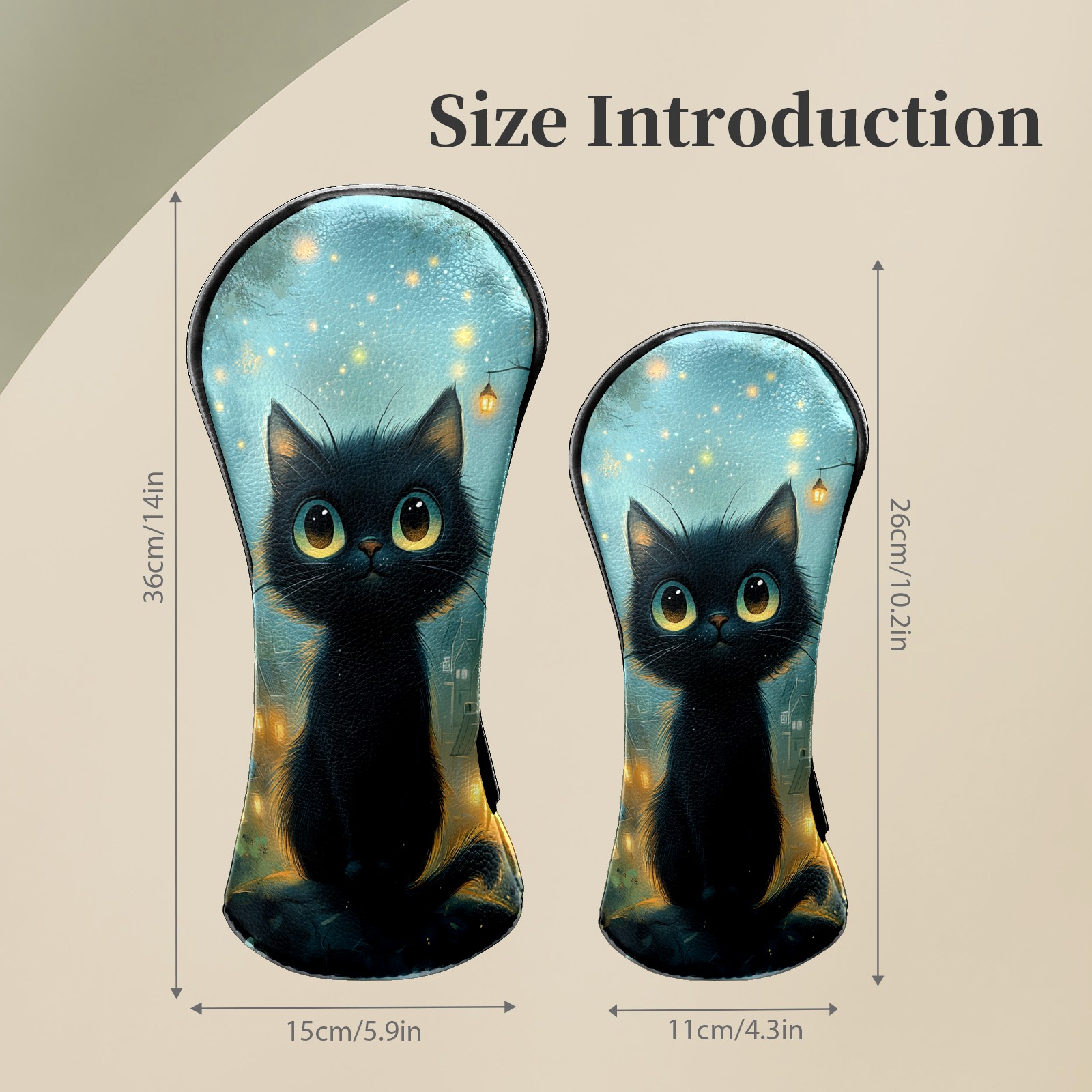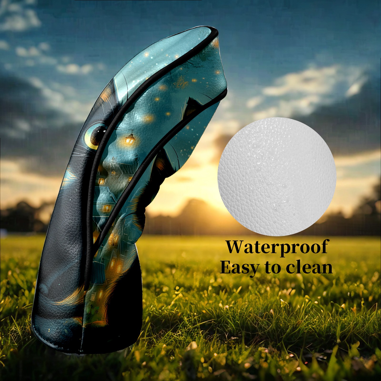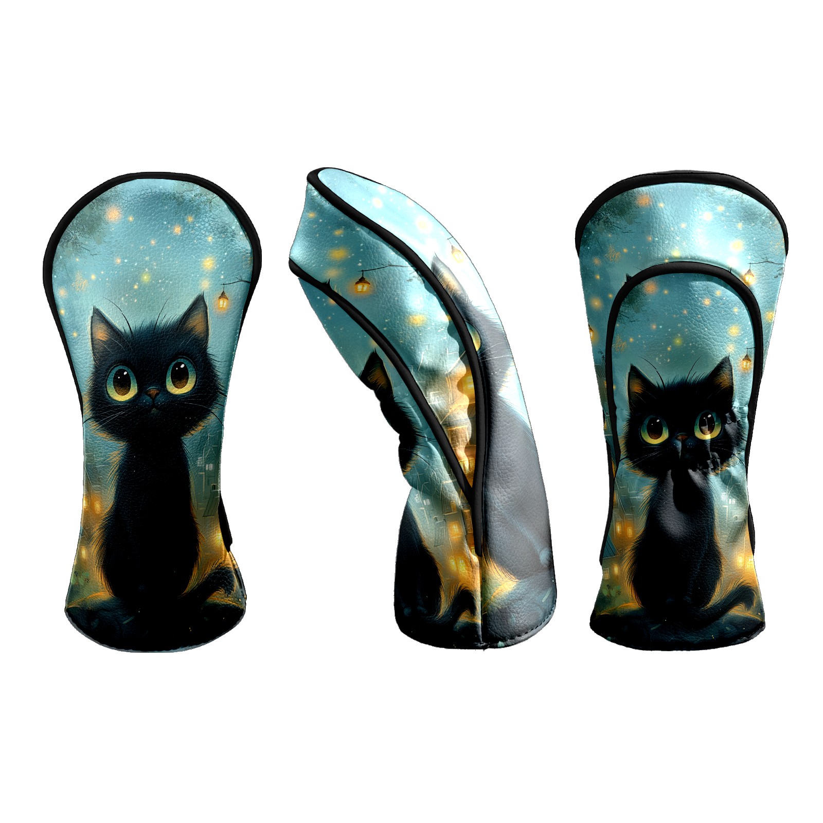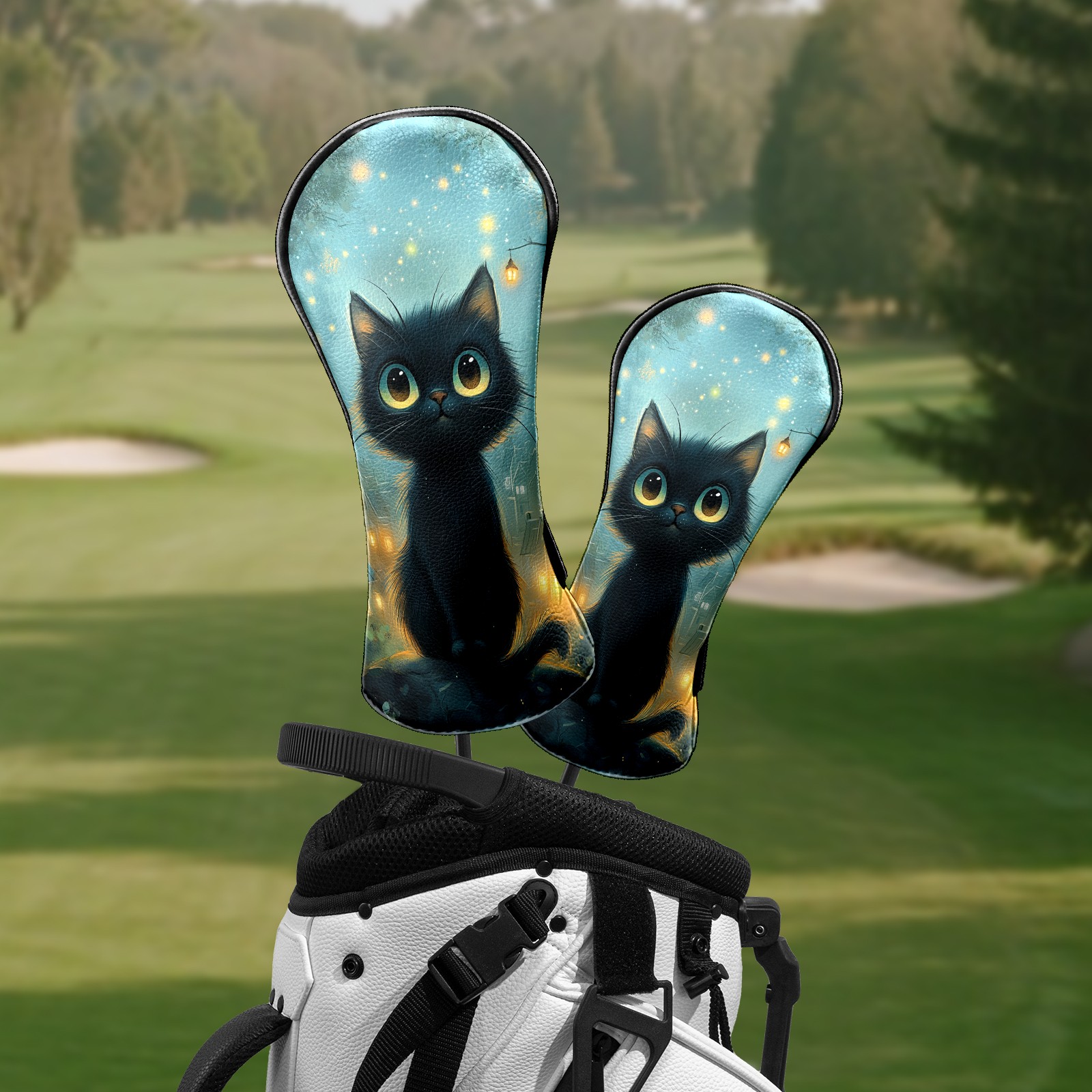 Golf Club Head Covers - Gentle Black Cat Blue Driver Fairway Headcover, Premium PU Leather, Protective Velvet Lining, Secure Elastic Band, Fits All Golf Brands, Perfect Gift for Golfers Men Women