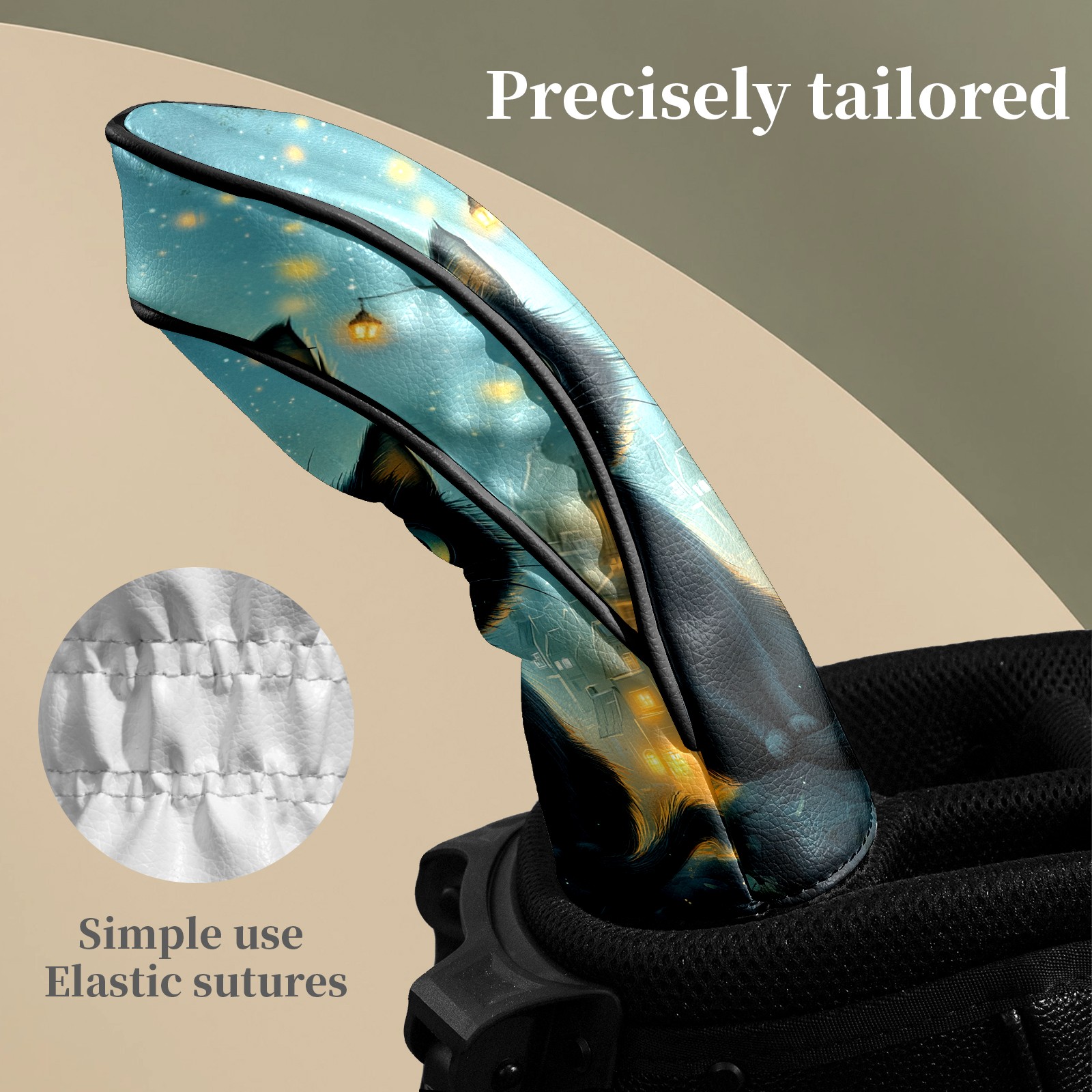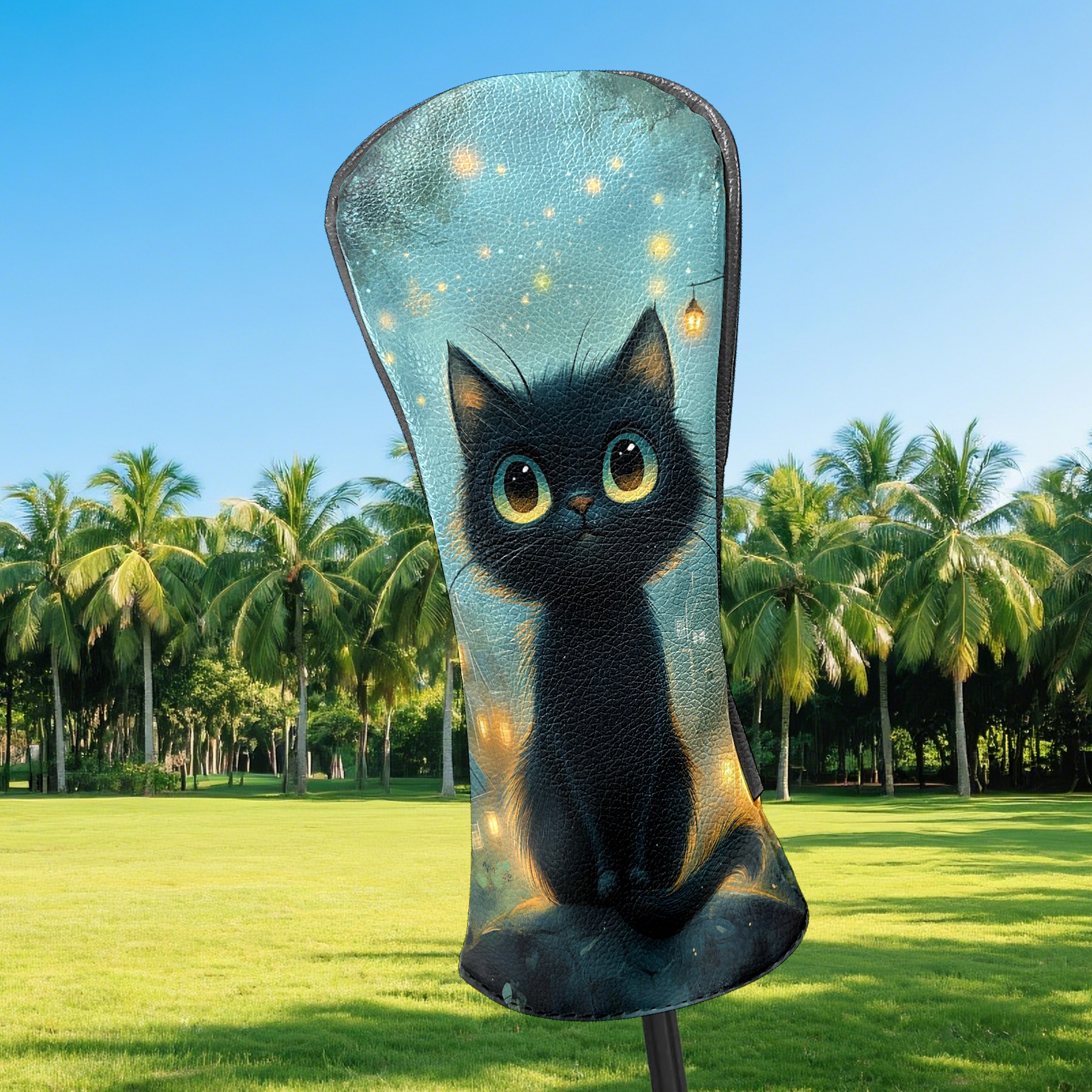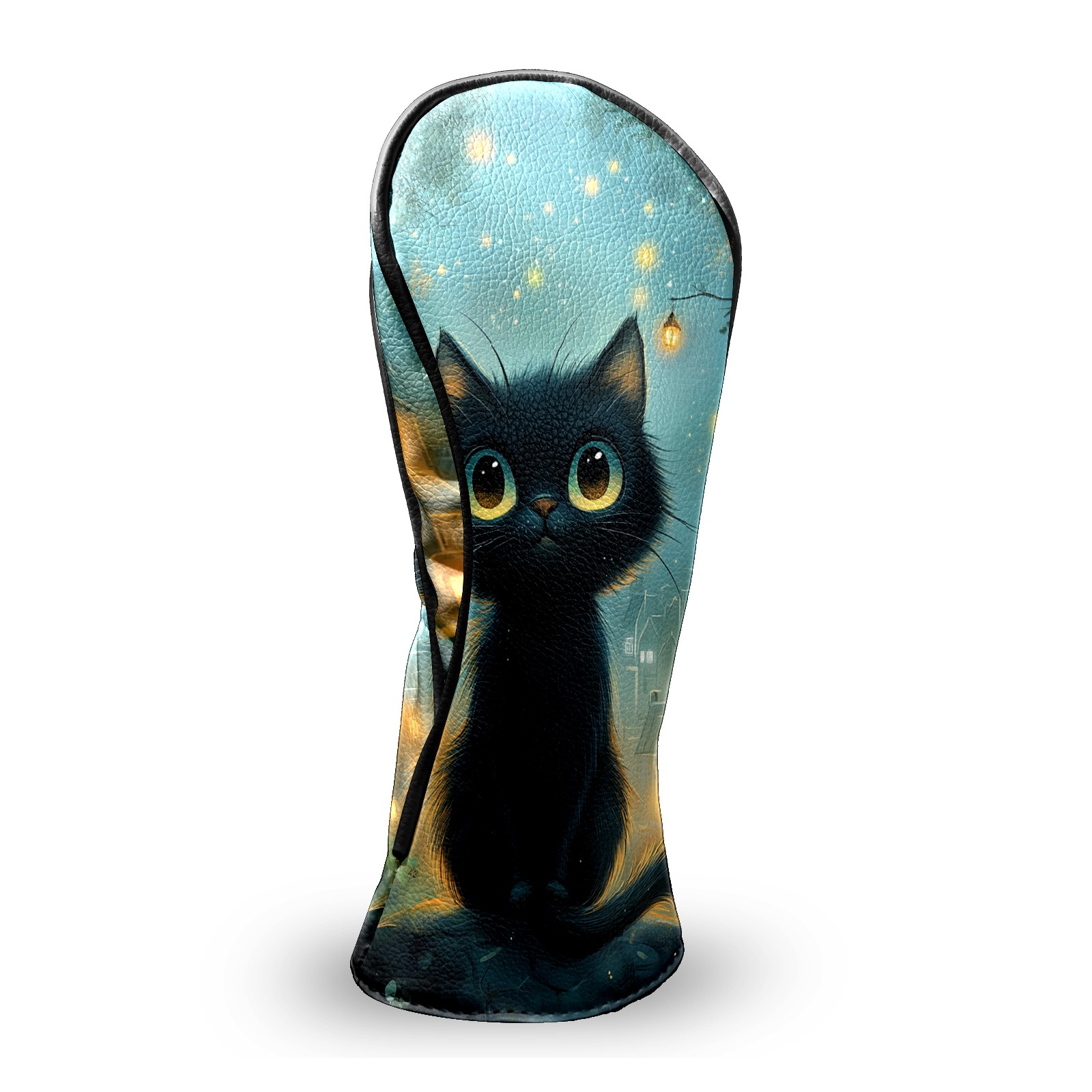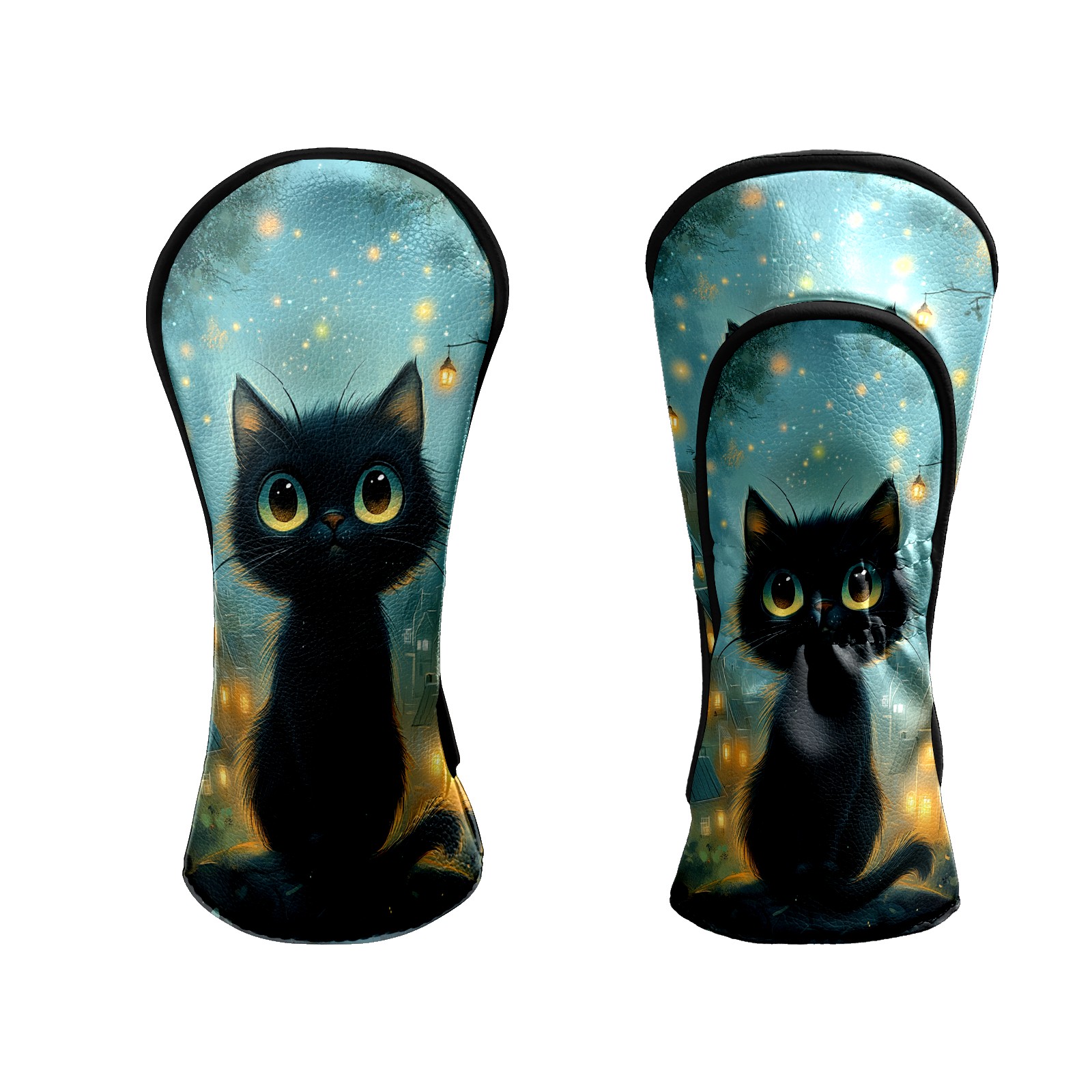 Golf Club Head Covers - Gentle Black Cat Blue Driver Fairway Headcover, Premium PU Leather, Protective Velvet Lining, Secure Elastic Band, Fits All Golf Brands, Perfect Gift for Golfers Men Women