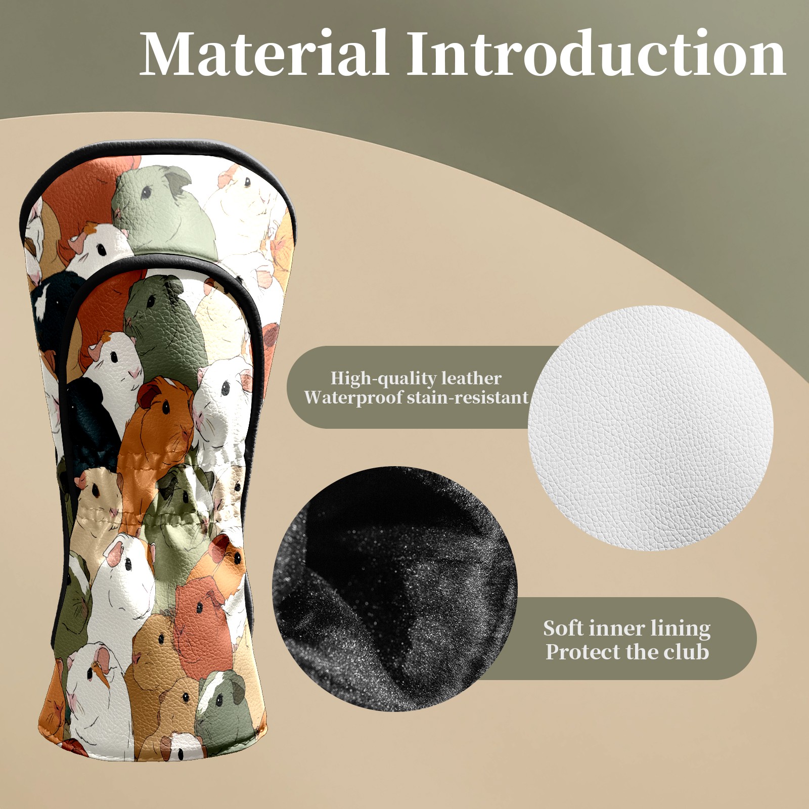 Golf Club Head Covers - Cute Rabbit Brown Driver Fairway Headcover, Premium PU Leather, Protective Velvet Lining, Secure Elastic Band, Fits All Golf Brands, Perfect Gift for Golfers Men Women