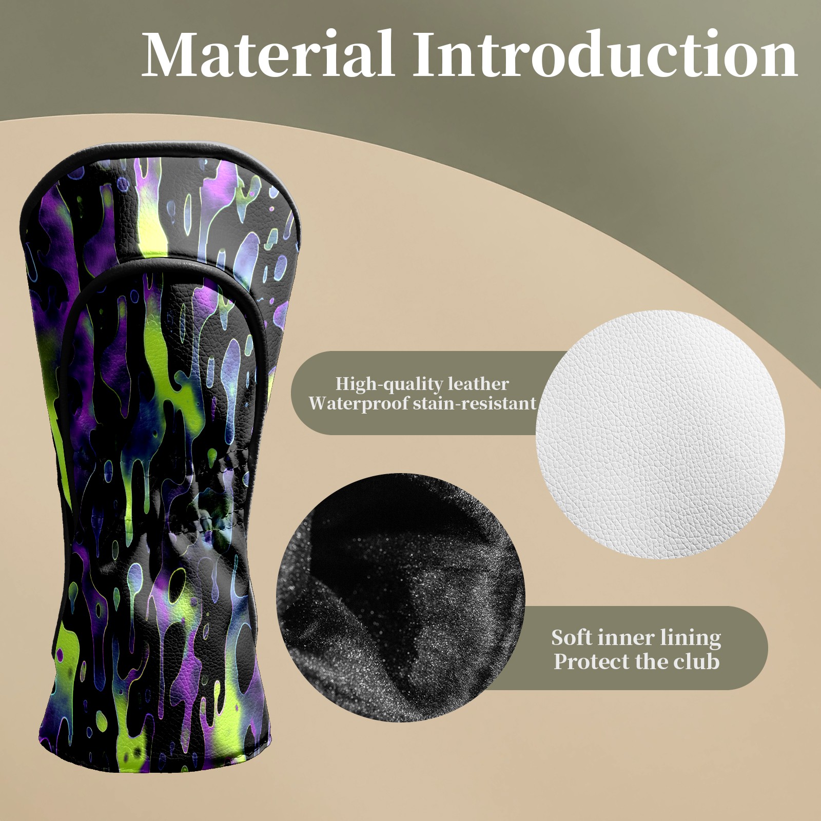 Golf Club Head Covers - Dark Pattern Black Driver Fairway Headcover, Premium PU Leather, Protective Velvet Lining, Secure Elastic Band, Fits All Golf Brands, Perfect Gift for Golfers Men Women