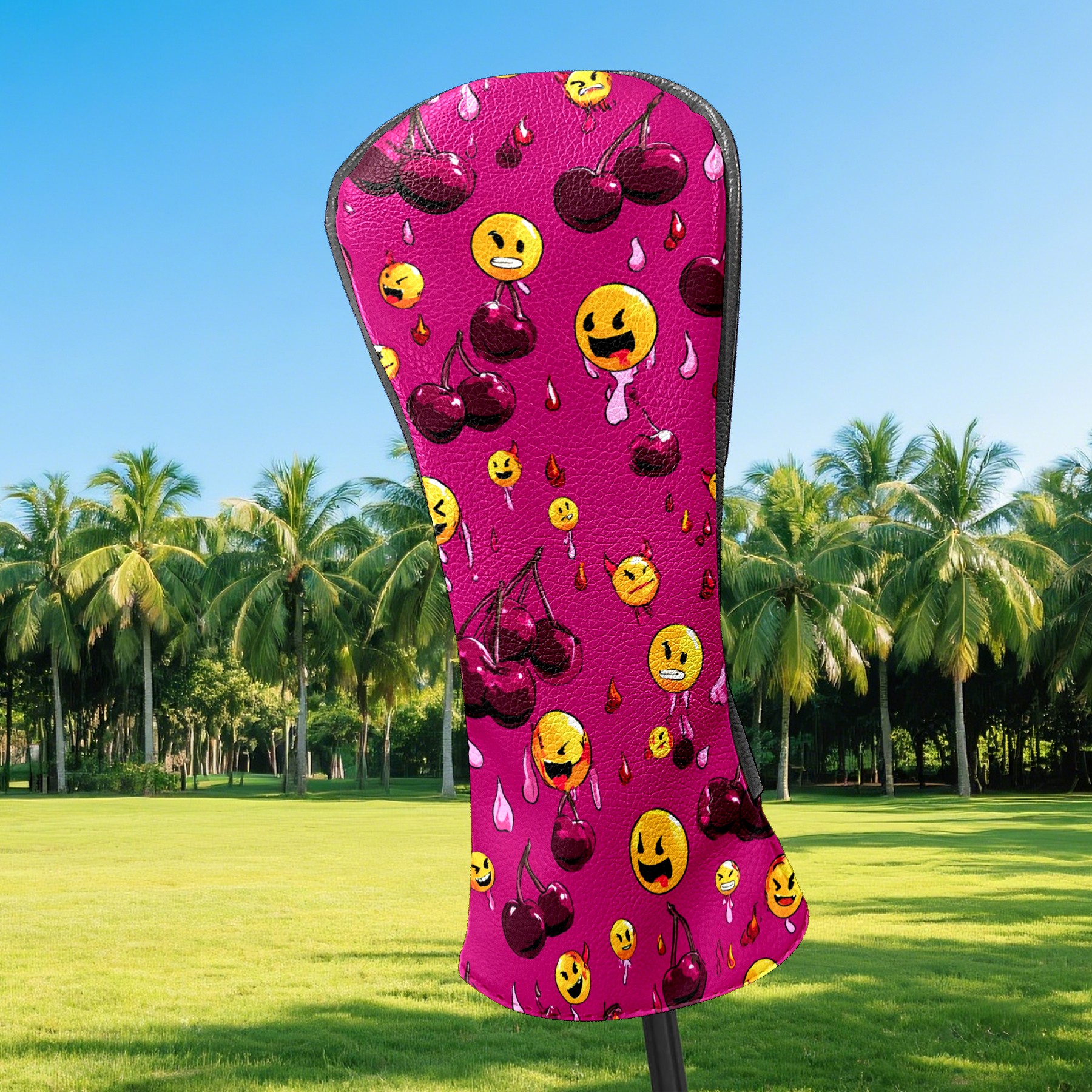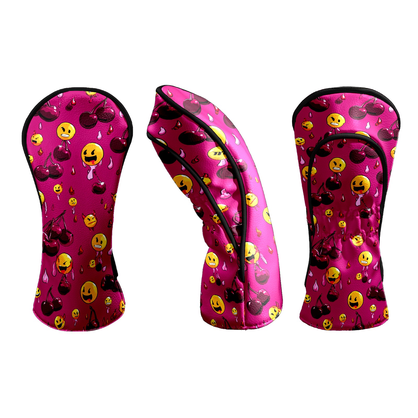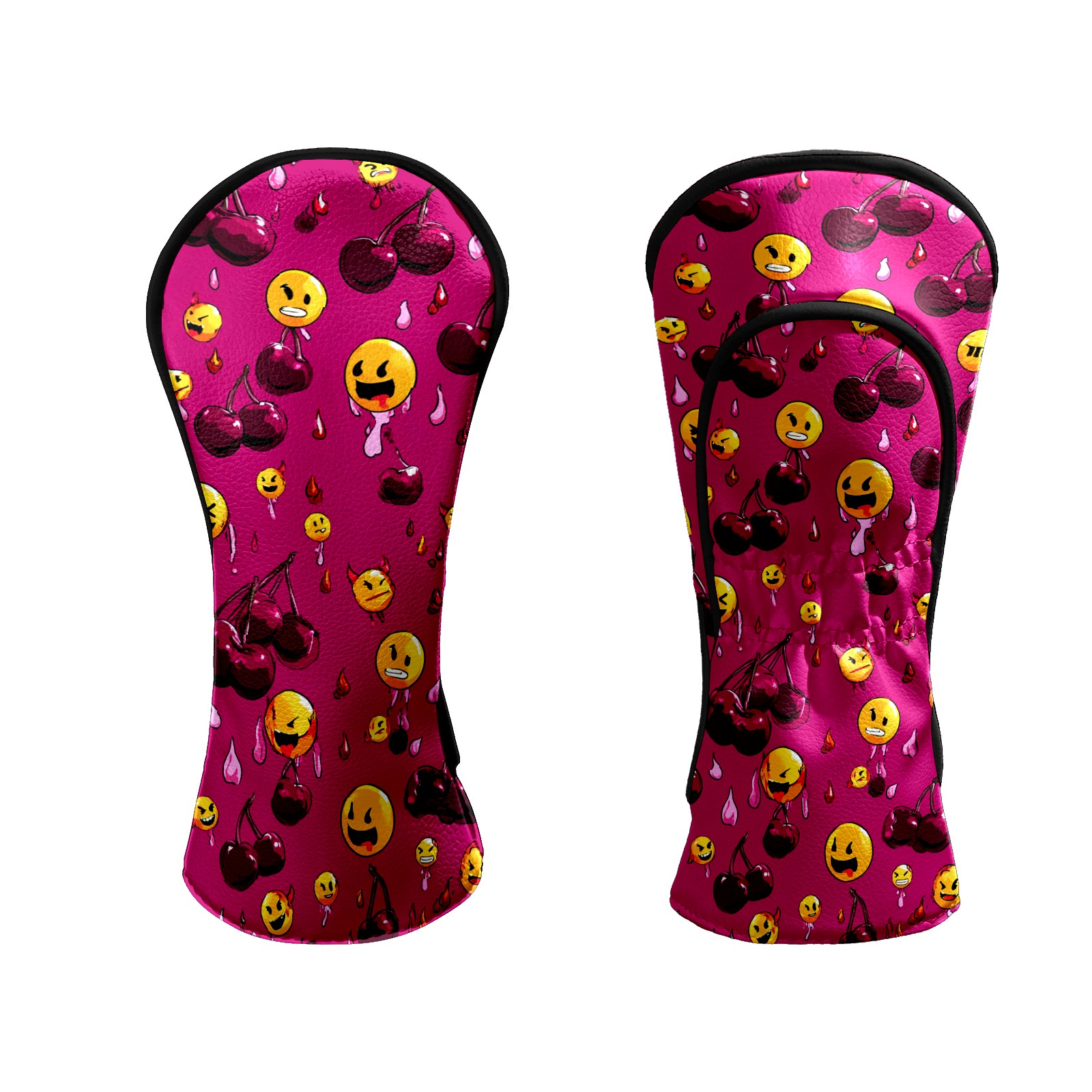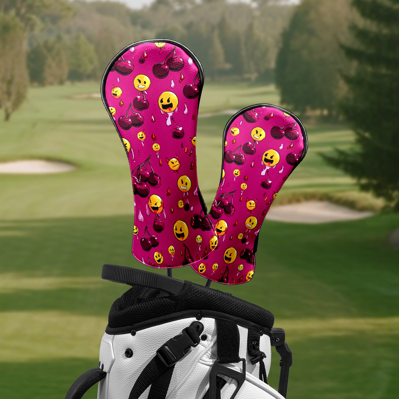 Golf Club Head Covers - Cheerful Emoji Red Driver Fairway Headcover, Premium PU Leather, Protective Velvet Lining, Secure Elastic Band, Fits All Golf Brands, Perfect Gift for Golfers Men Women