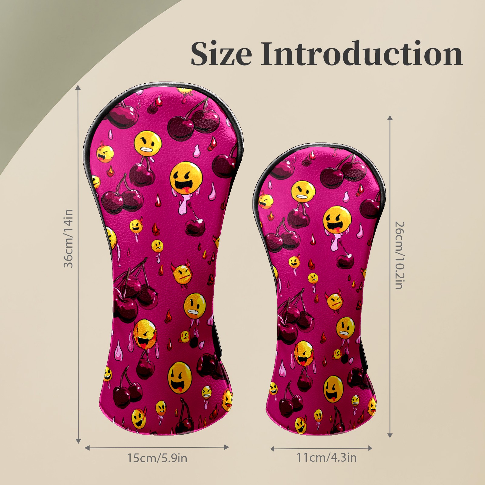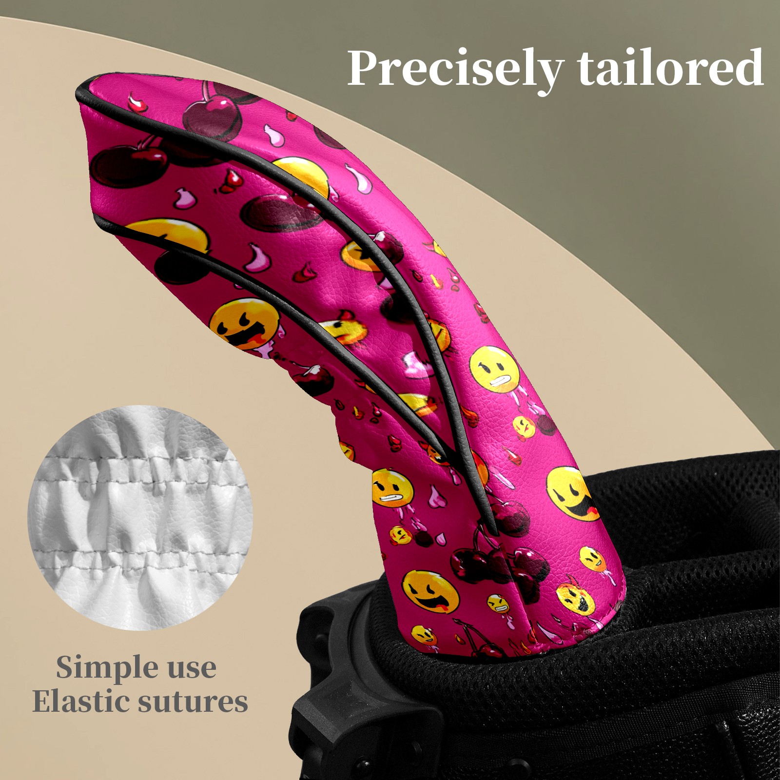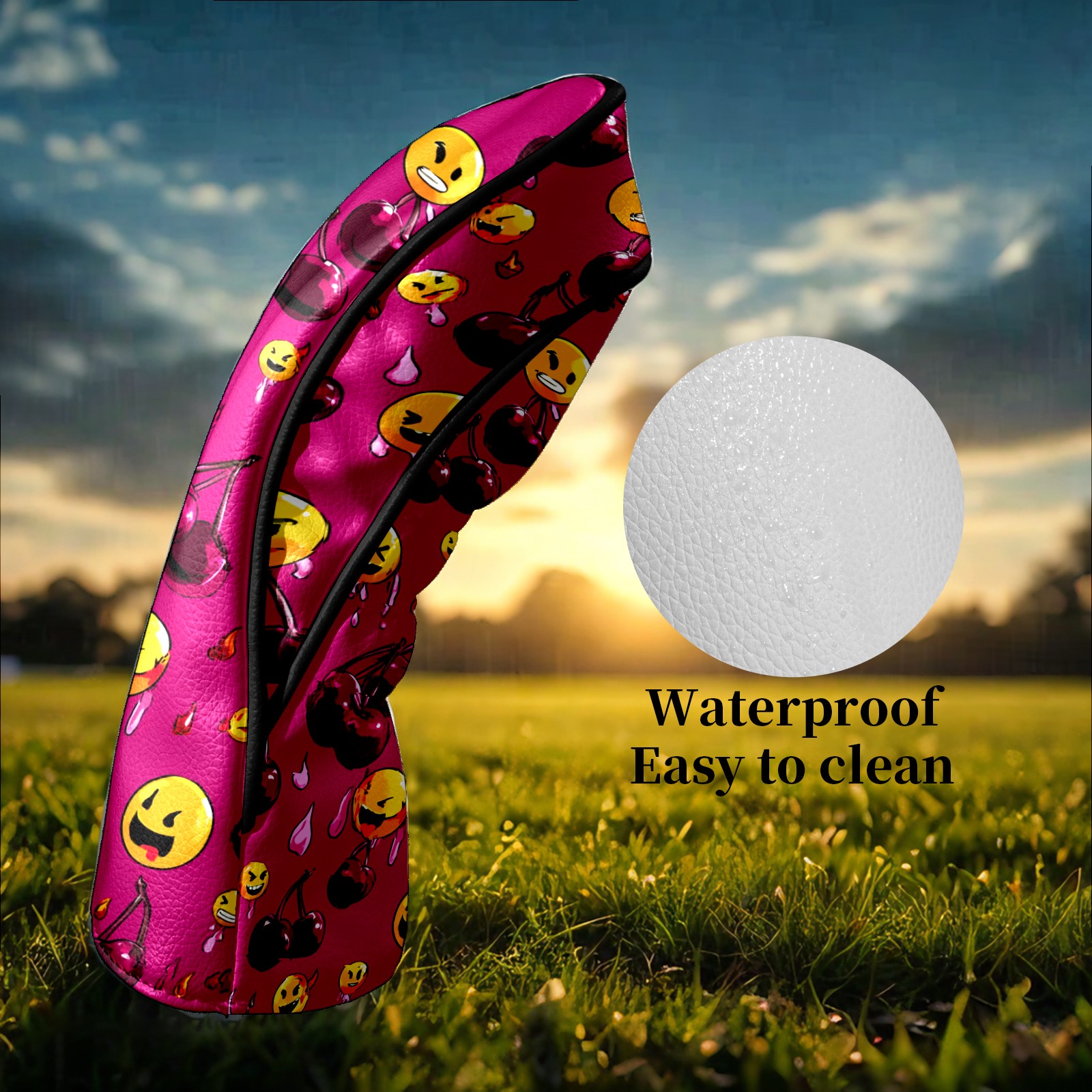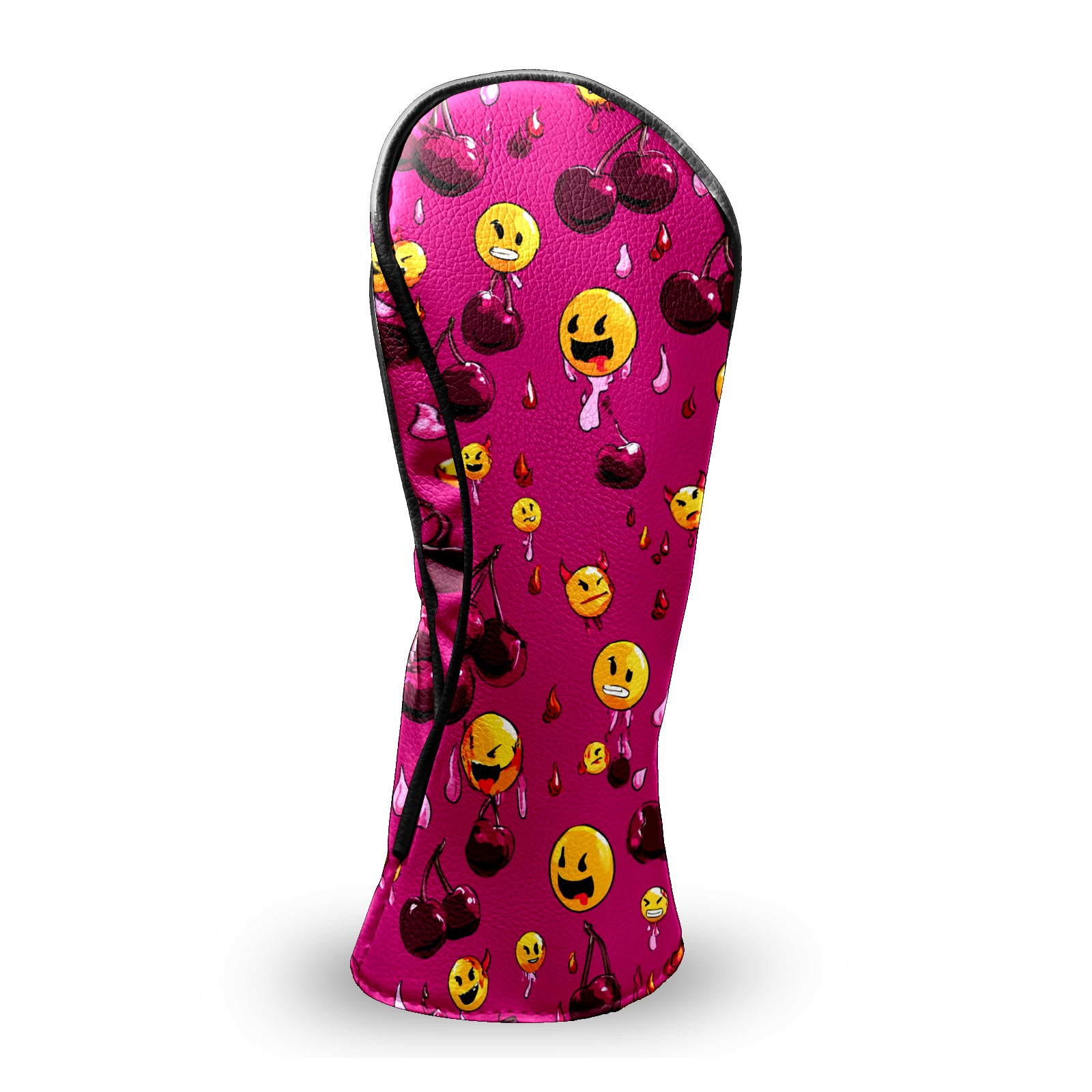 Golf Club Head Covers - Cheerful Emoji Red Driver Fairway Headcover, Premium PU Leather, Protective Velvet Lining, Secure Elastic Band, Fits All Golf Brands, Perfect Gift for Golfers Men Women