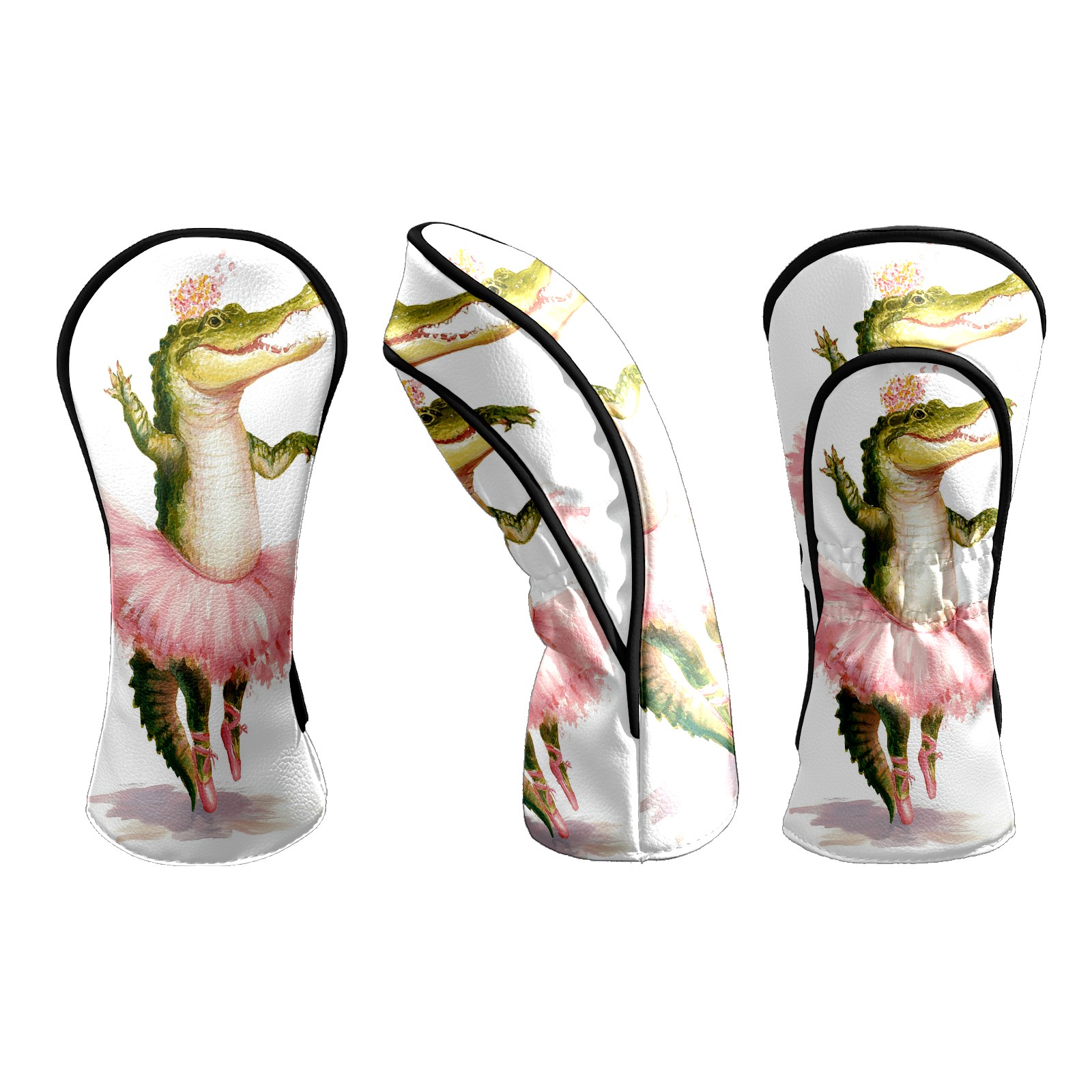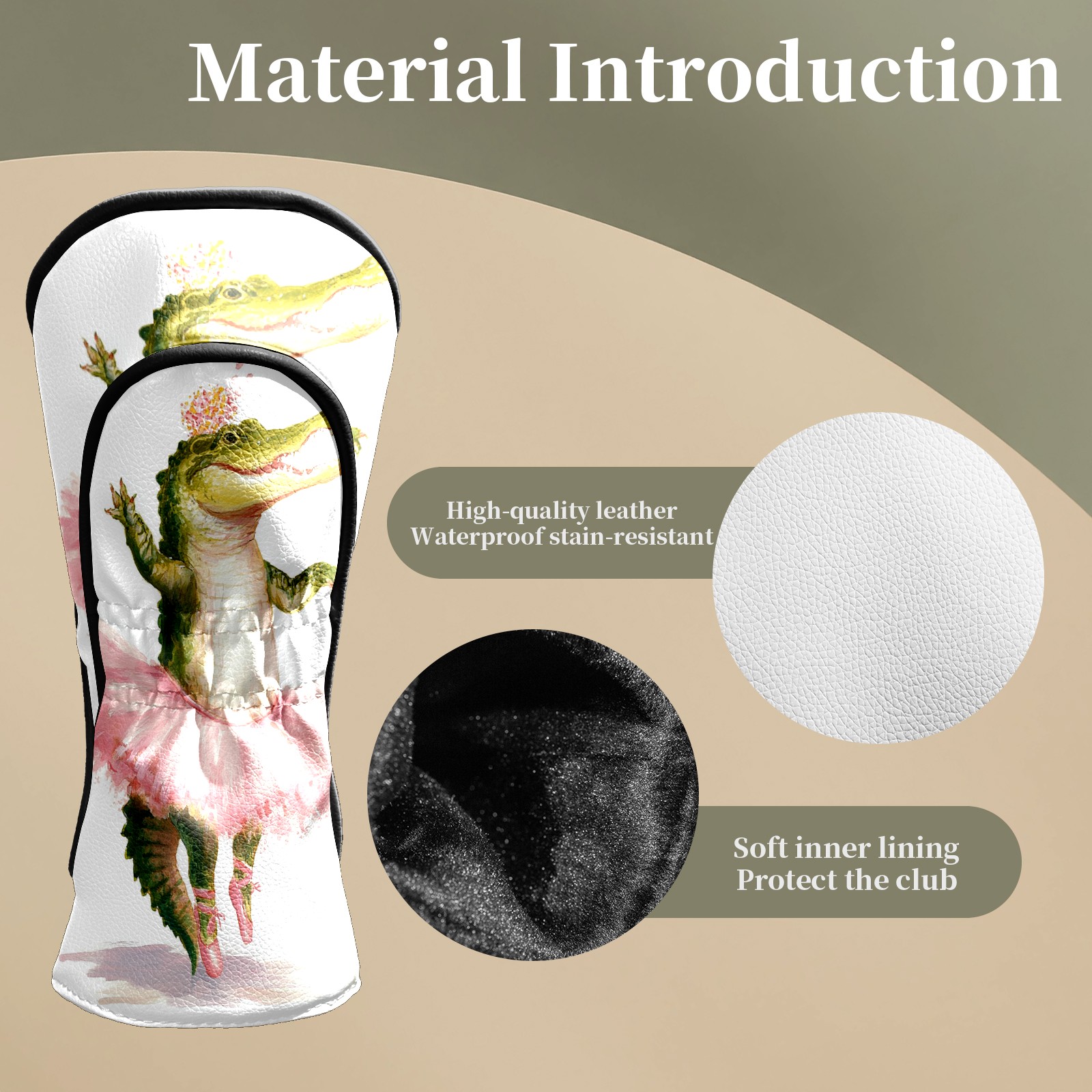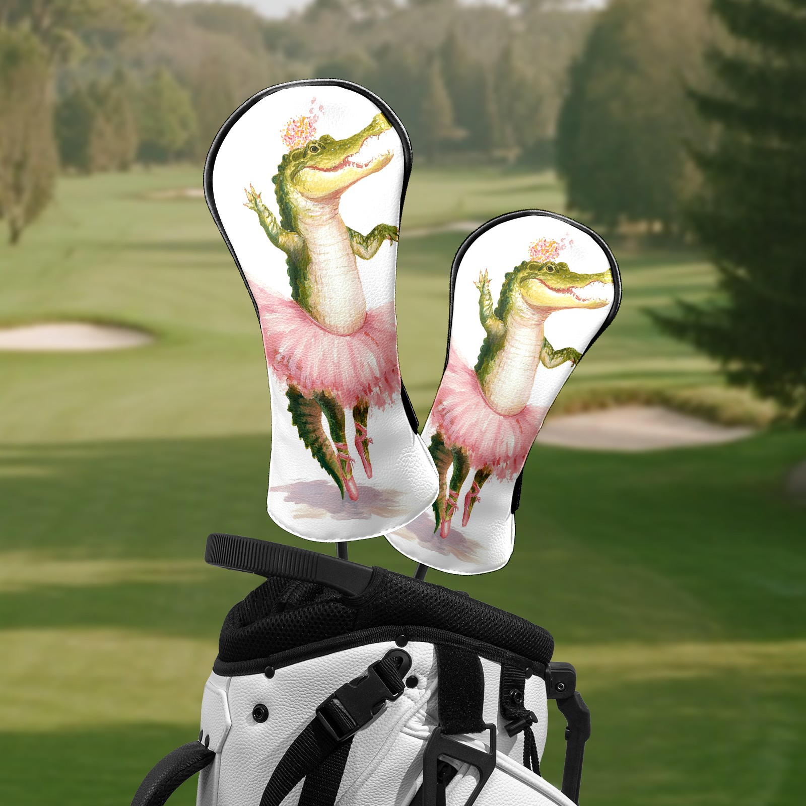 Golf Club Head Covers - Elegant Crocodile Pink Driver Fairway Headcover, Premium PU Leather, Protective Velvet Lining, Secure Elastic Band, Fits All Golf Brands, Perfect Gift for Golfers Men Women