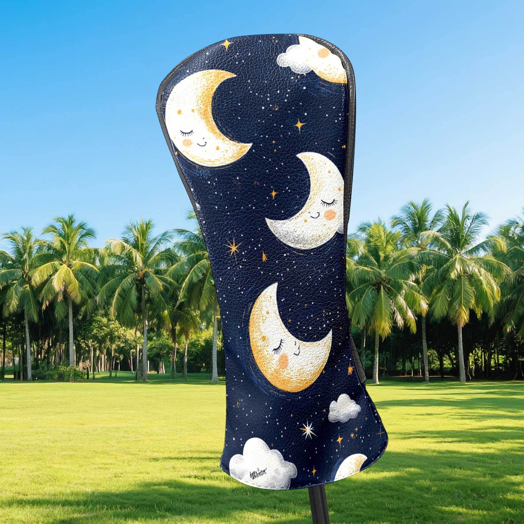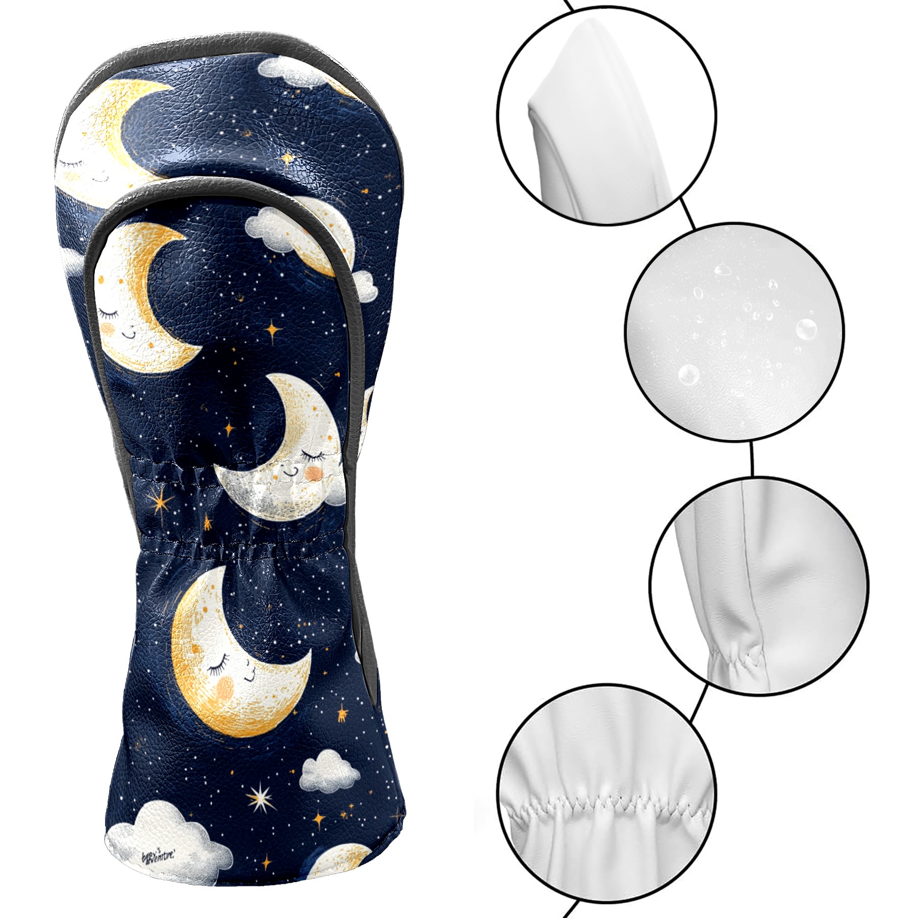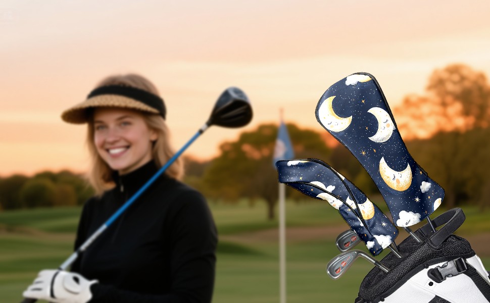 Golf Headcovers Fits Driver Hybrid Fairway 3/5 Wood, Waterproof PU Leather Golf Club Protector, Ideal Sports Accessories & Golfer Gift Moon Cloud Pattern3