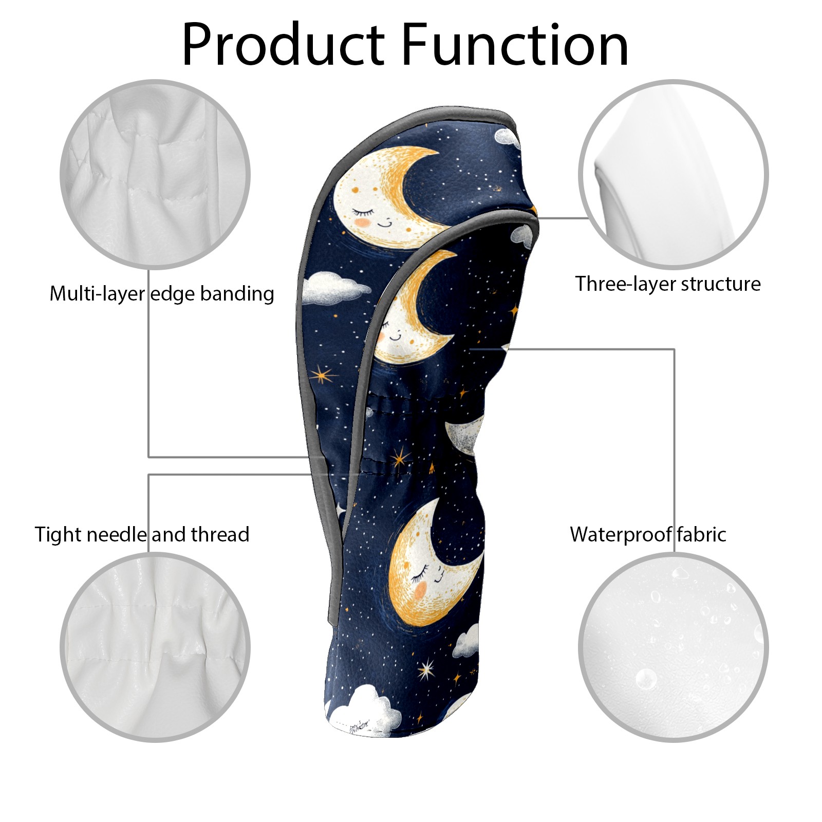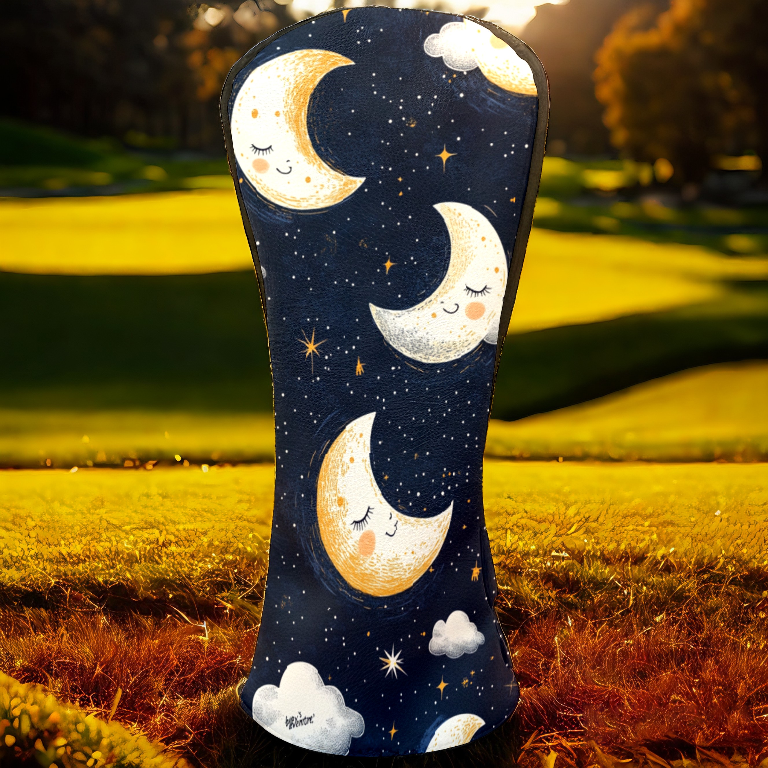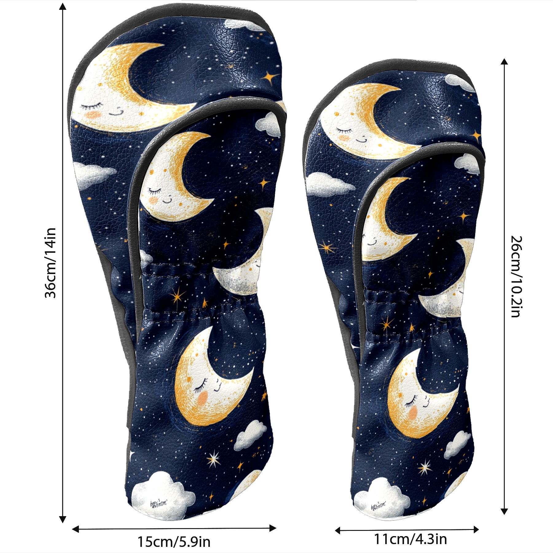 Golf Headcovers Fits Driver Hybrid Fairway 3/5 Wood, Waterproof PU Leather Golf Club Protector, Ideal Sports Accessories & Golfer Gift Moon Cloud Pattern3