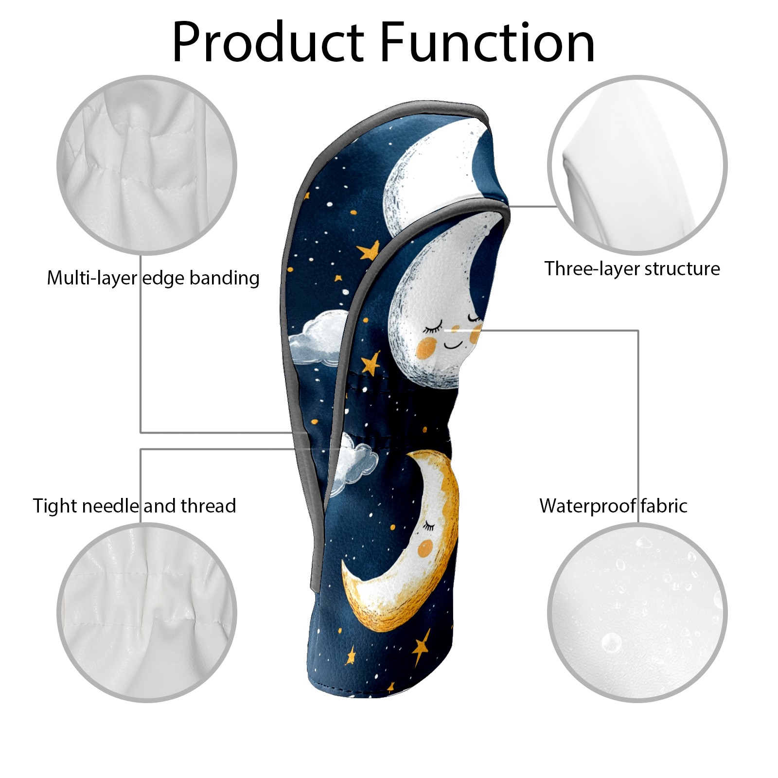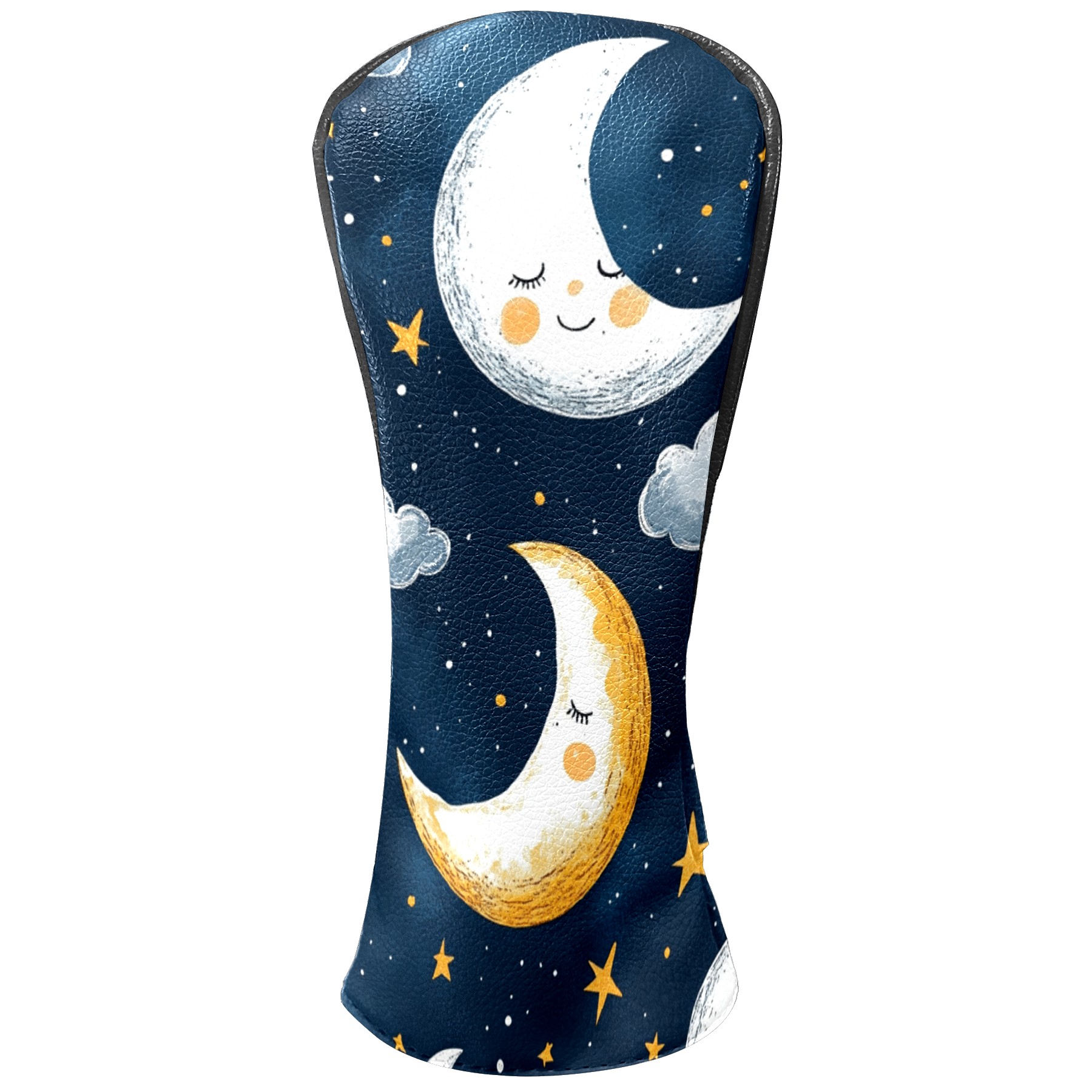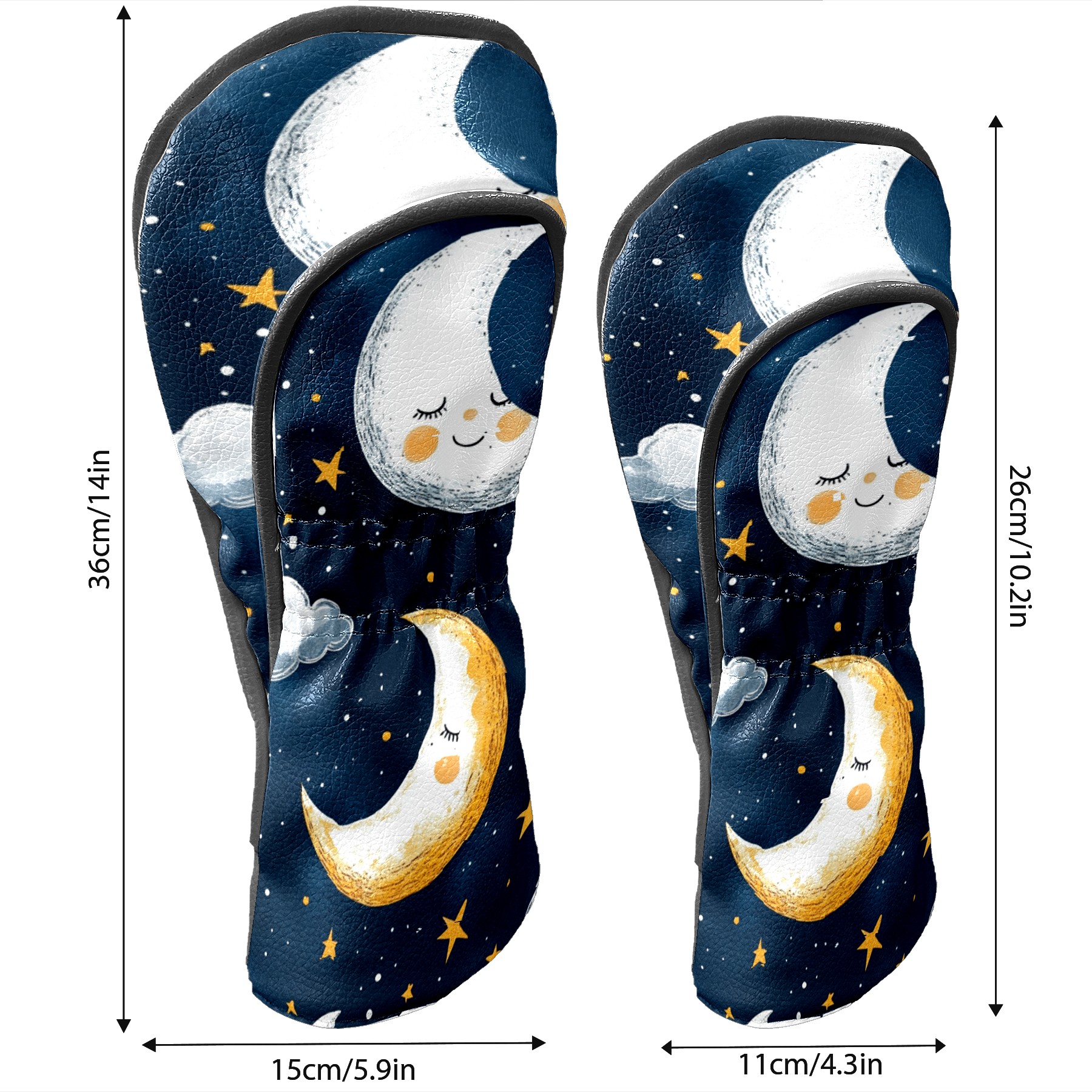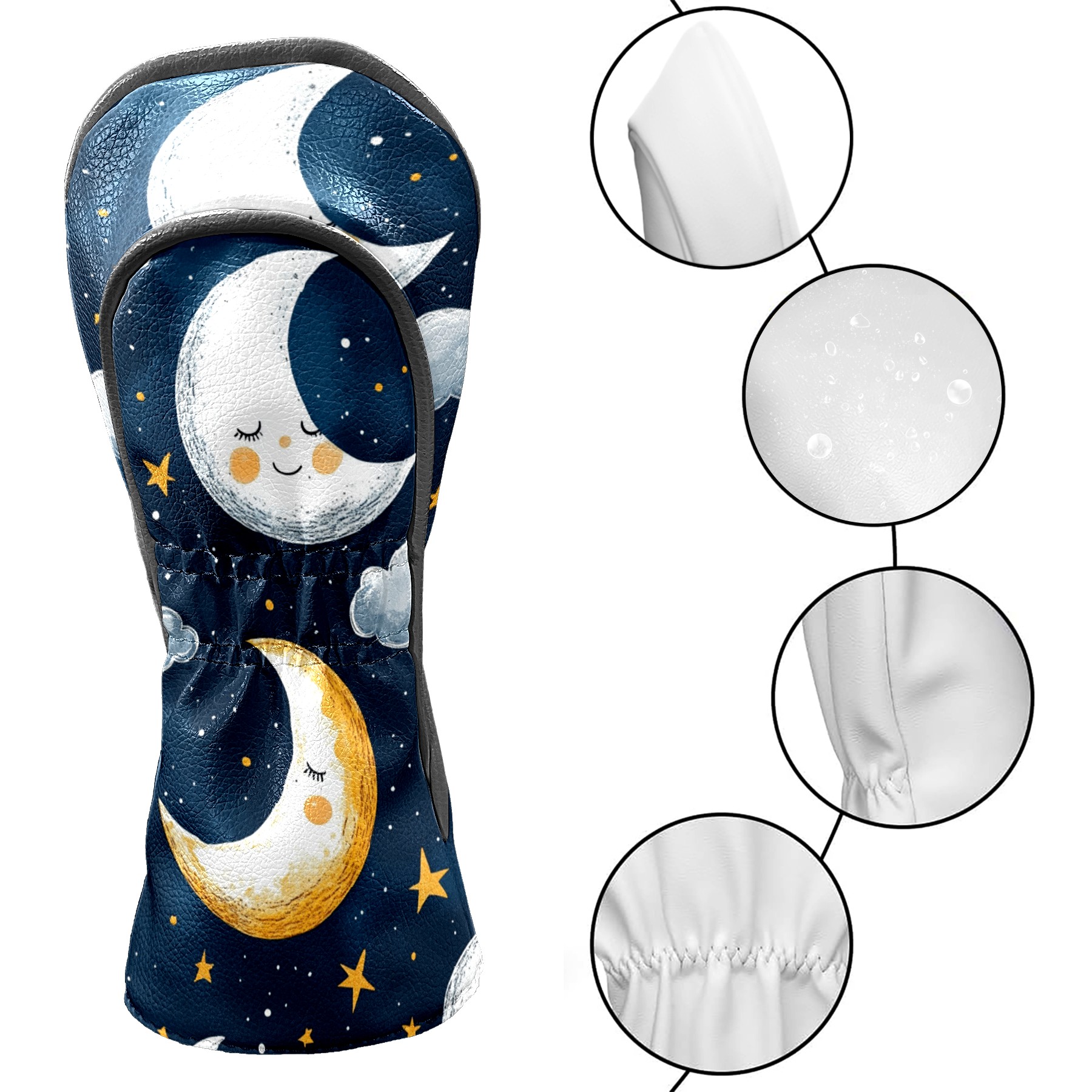 Golf Headcovers Fits Driver Hybrid Fairway 3/5 Wood, Waterproof PU Leather Golf Club Protector, Ideal Sports Accessories & Golfer Gift Moon Cloud Pattern1