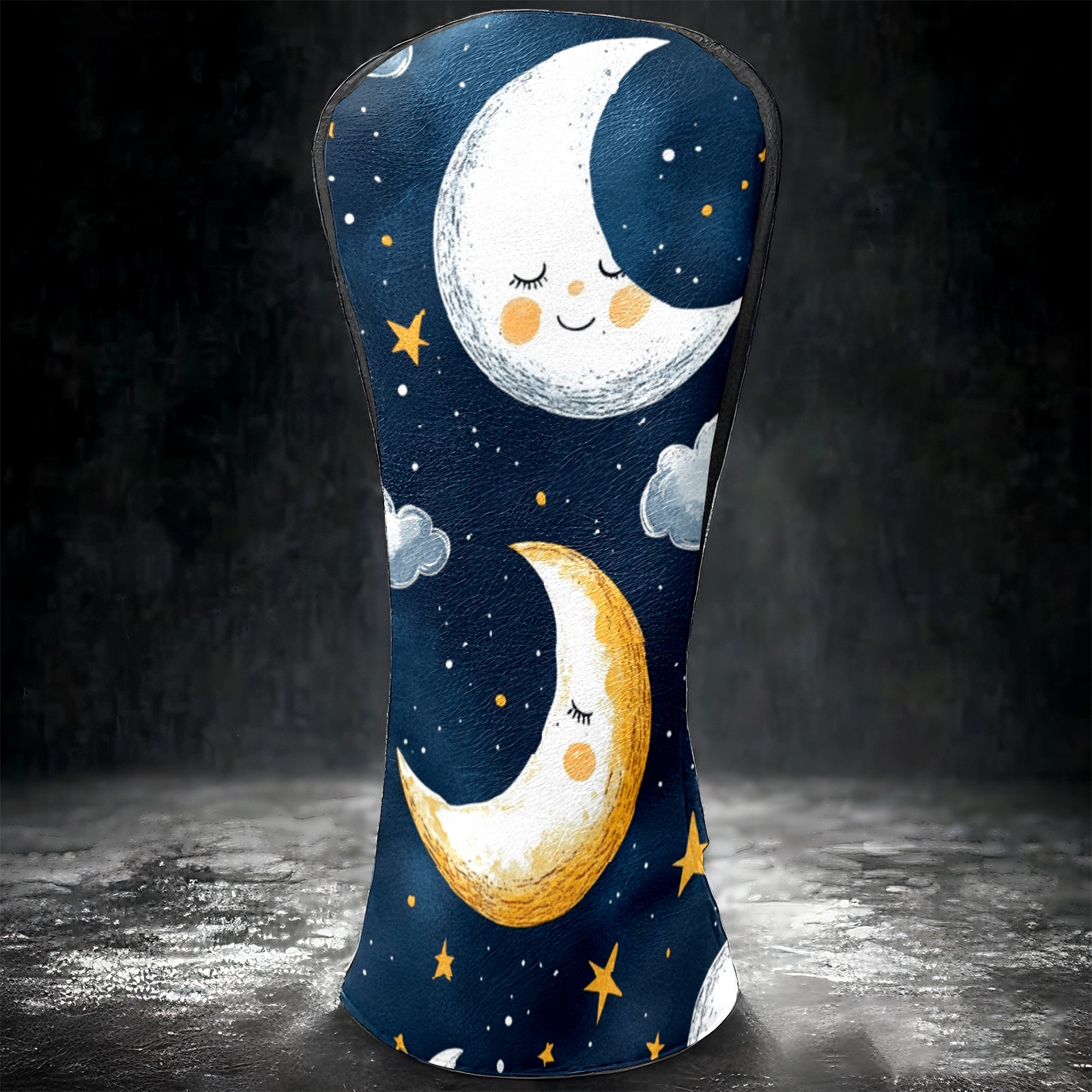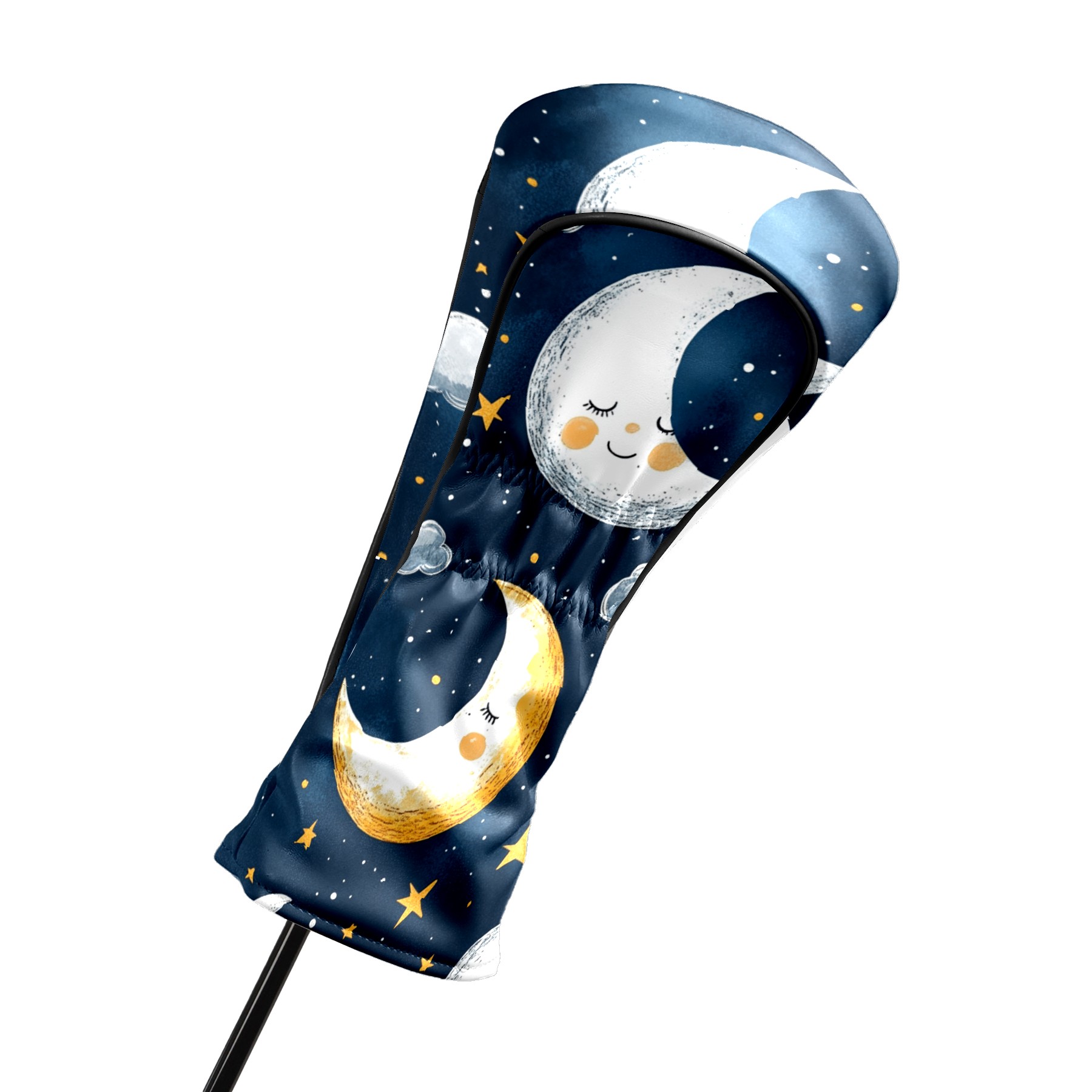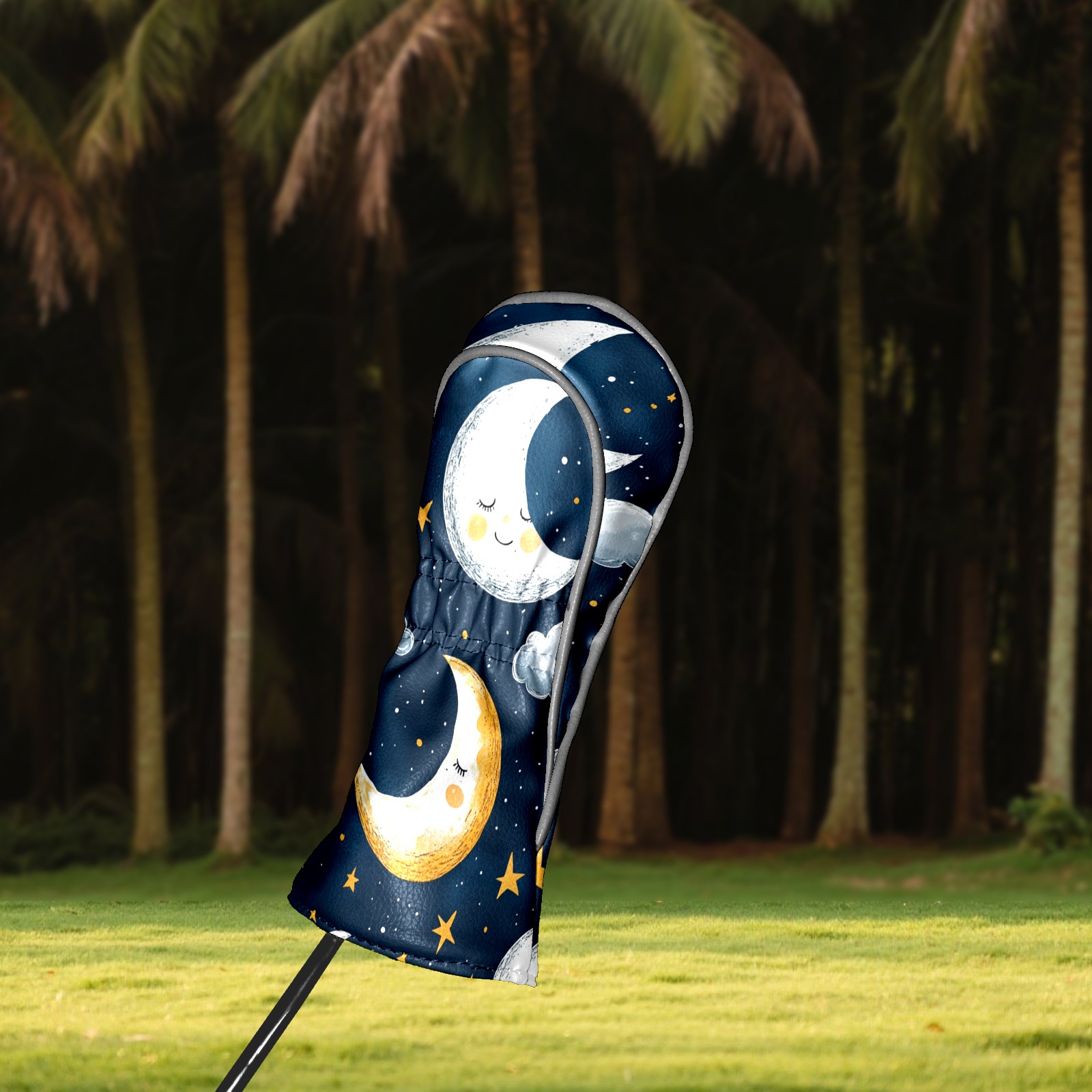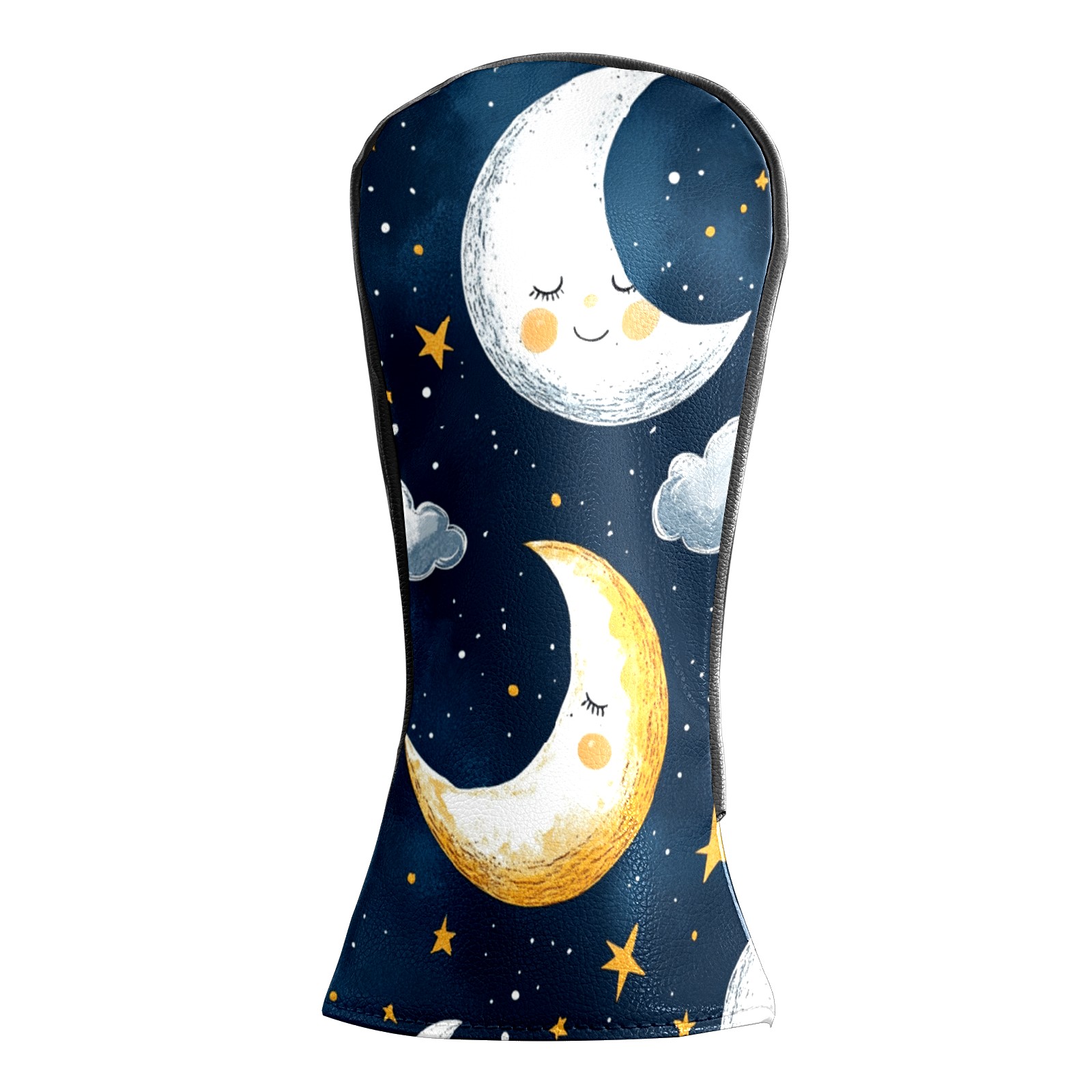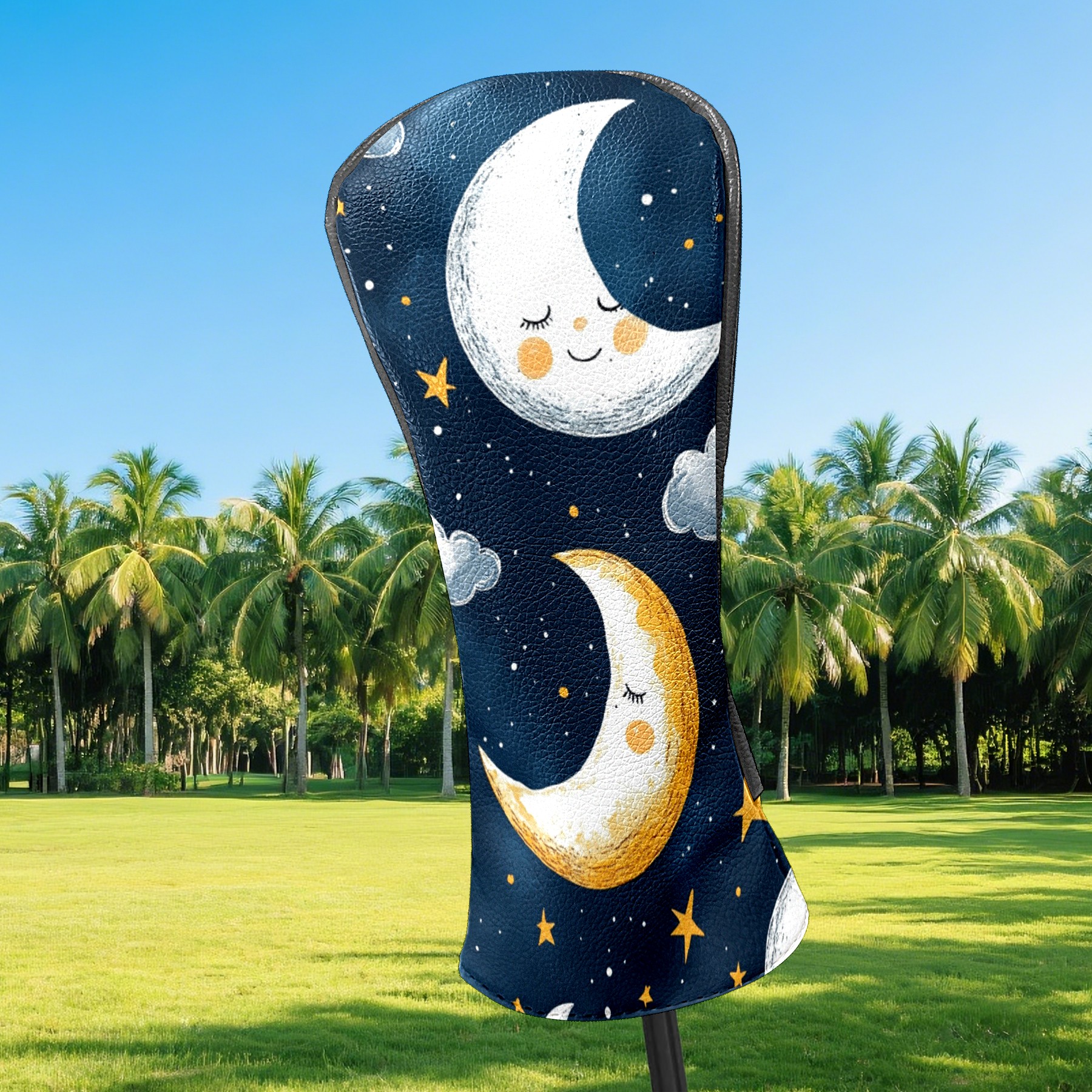 Golf Headcovers Fits Driver Hybrid Fairway 3/5 Wood, Waterproof PU Leather Golf Club Protector, Ideal Sports Accessories & Golfer Gift Moon Cloud Pattern1
