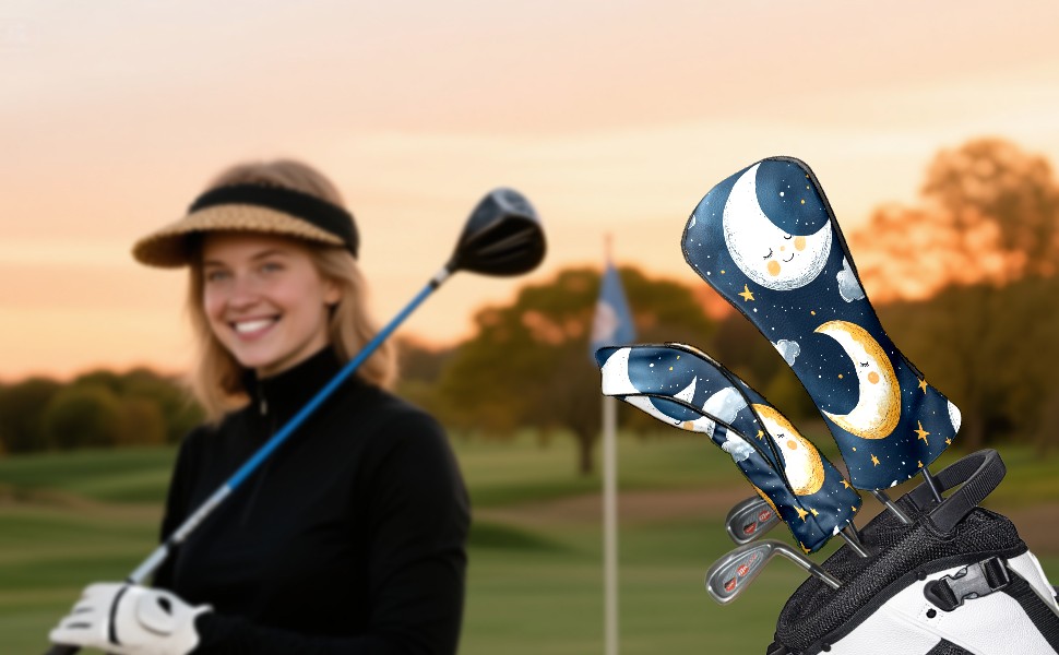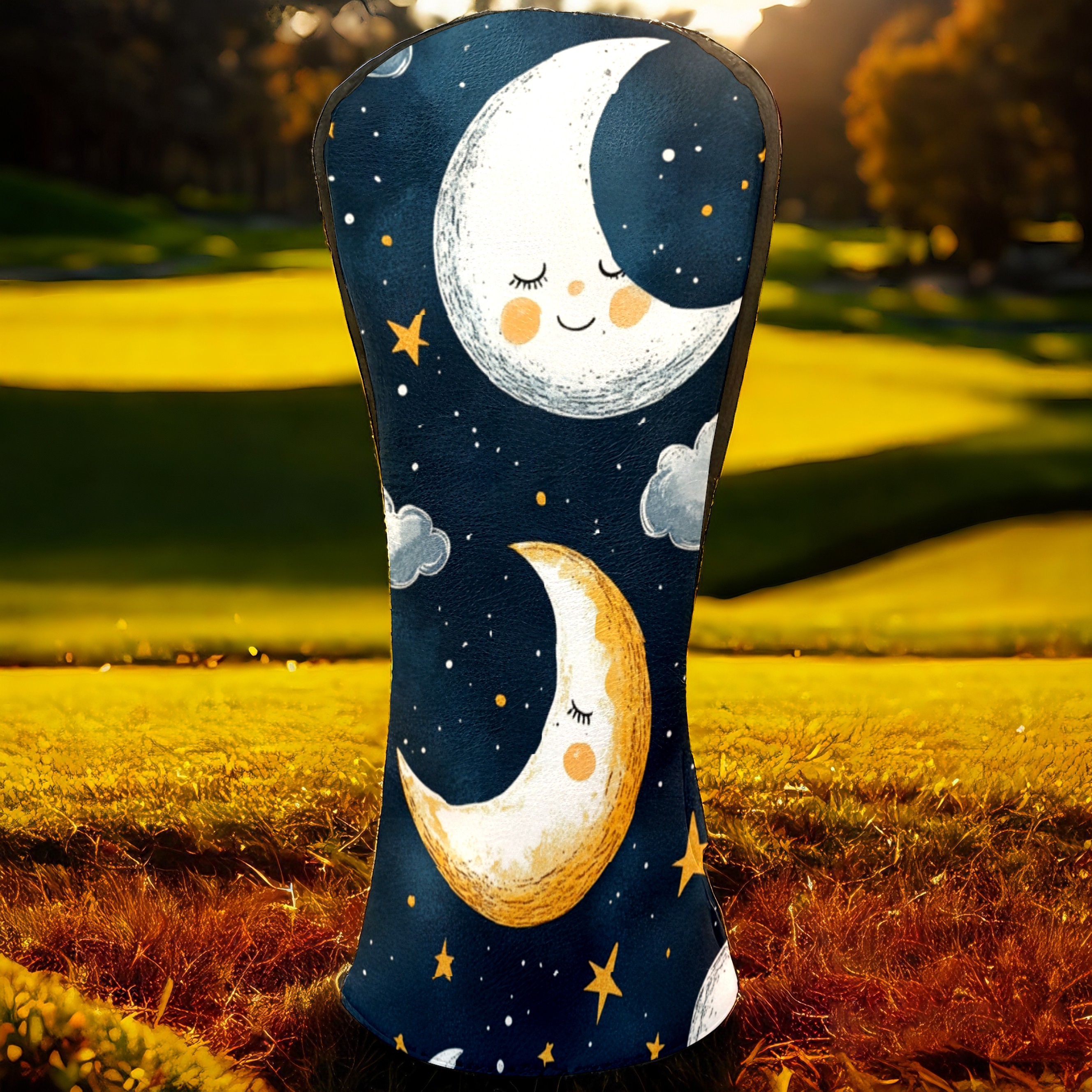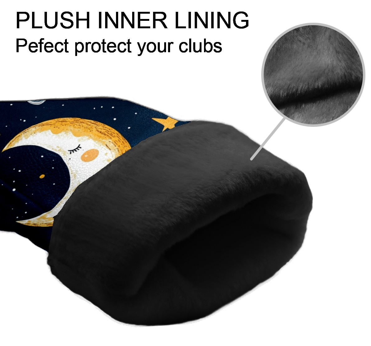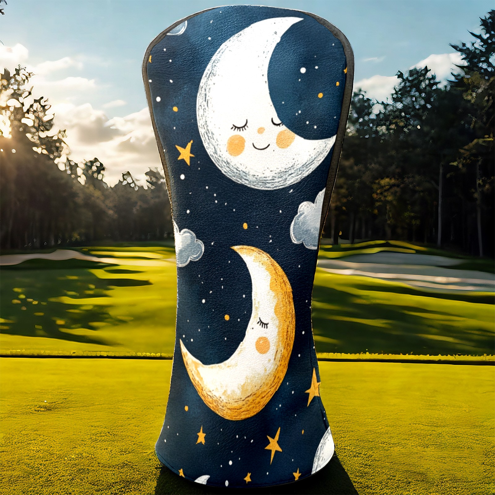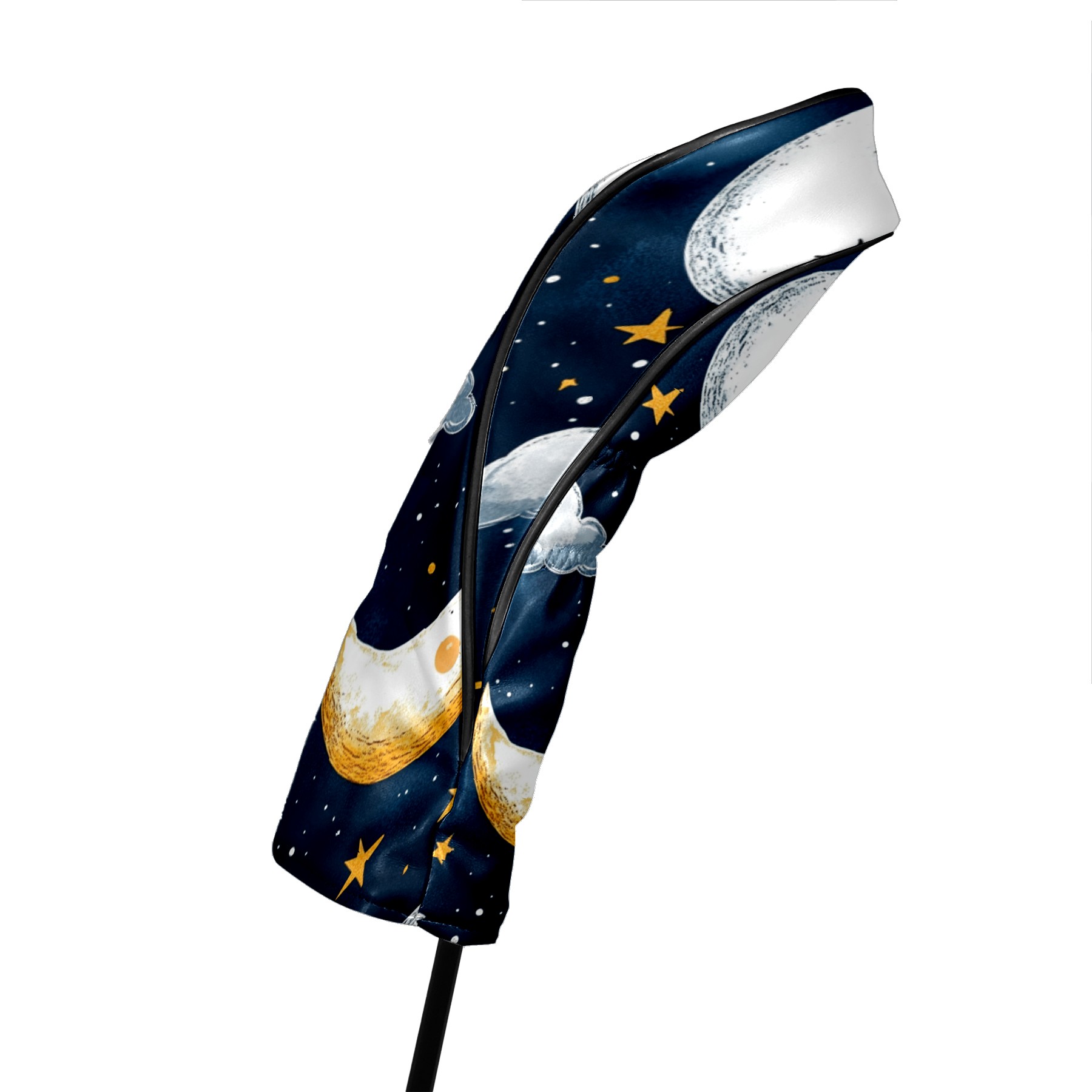 Golf Headcovers Fits Driver Hybrid Fairway 3/5 Wood, Waterproof PU Leather Golf Club Protector, Ideal Sports Accessories & Golfer Gift Moon Cloud Pattern1