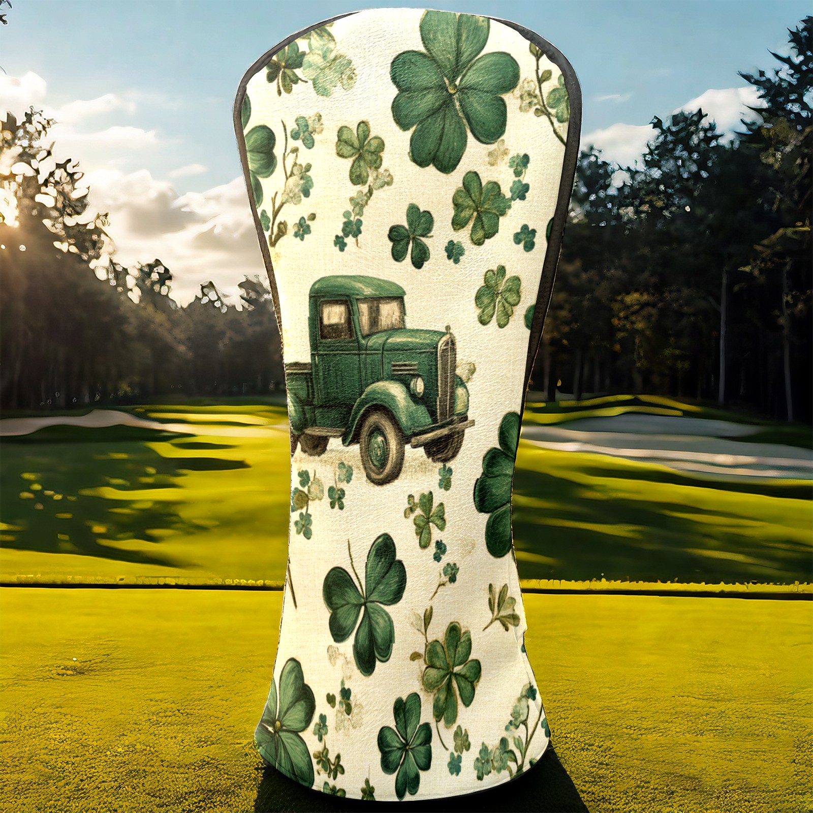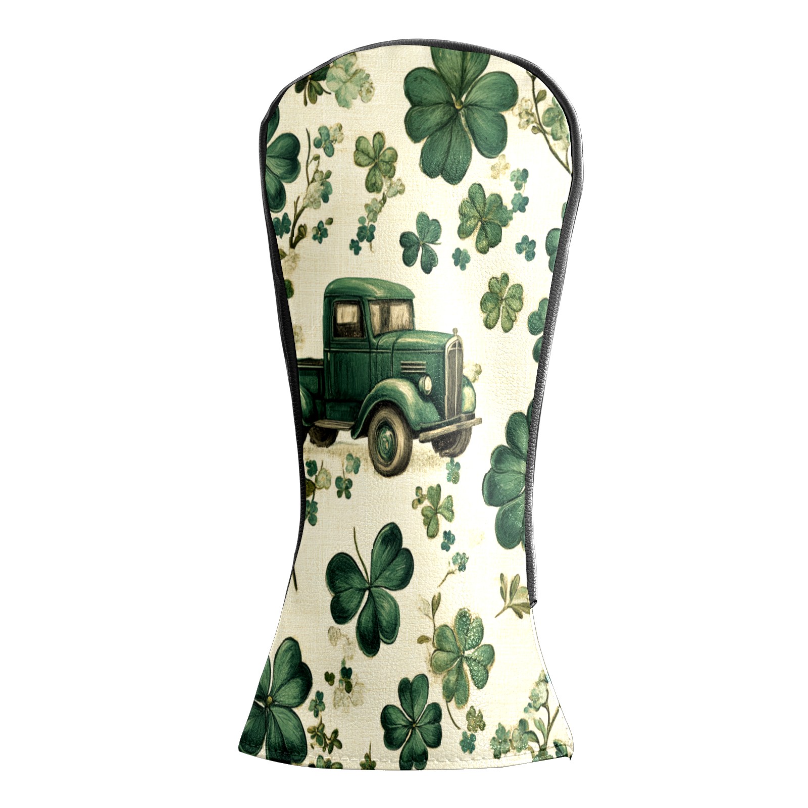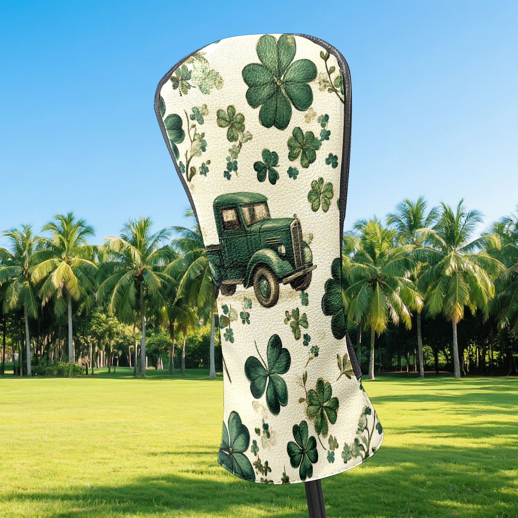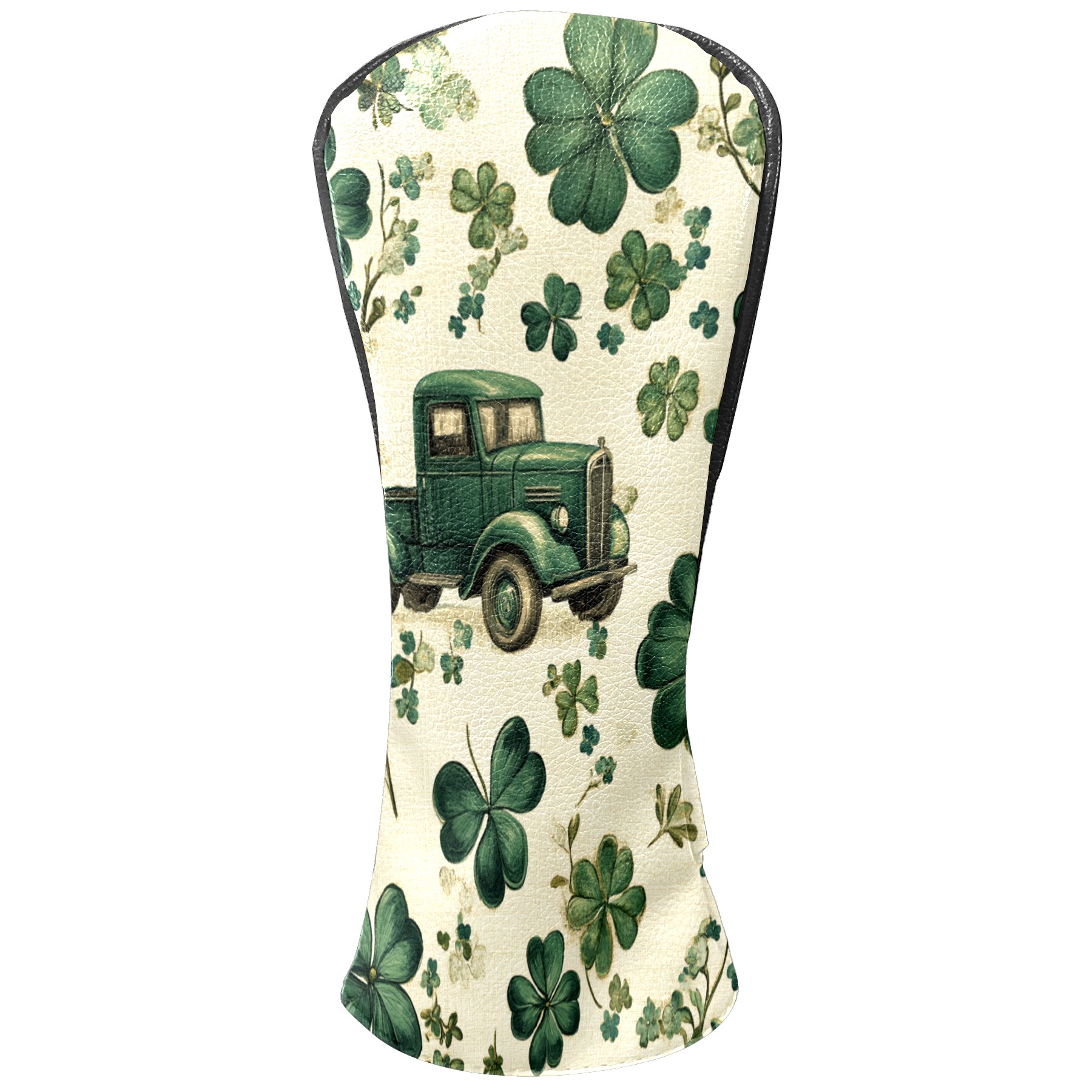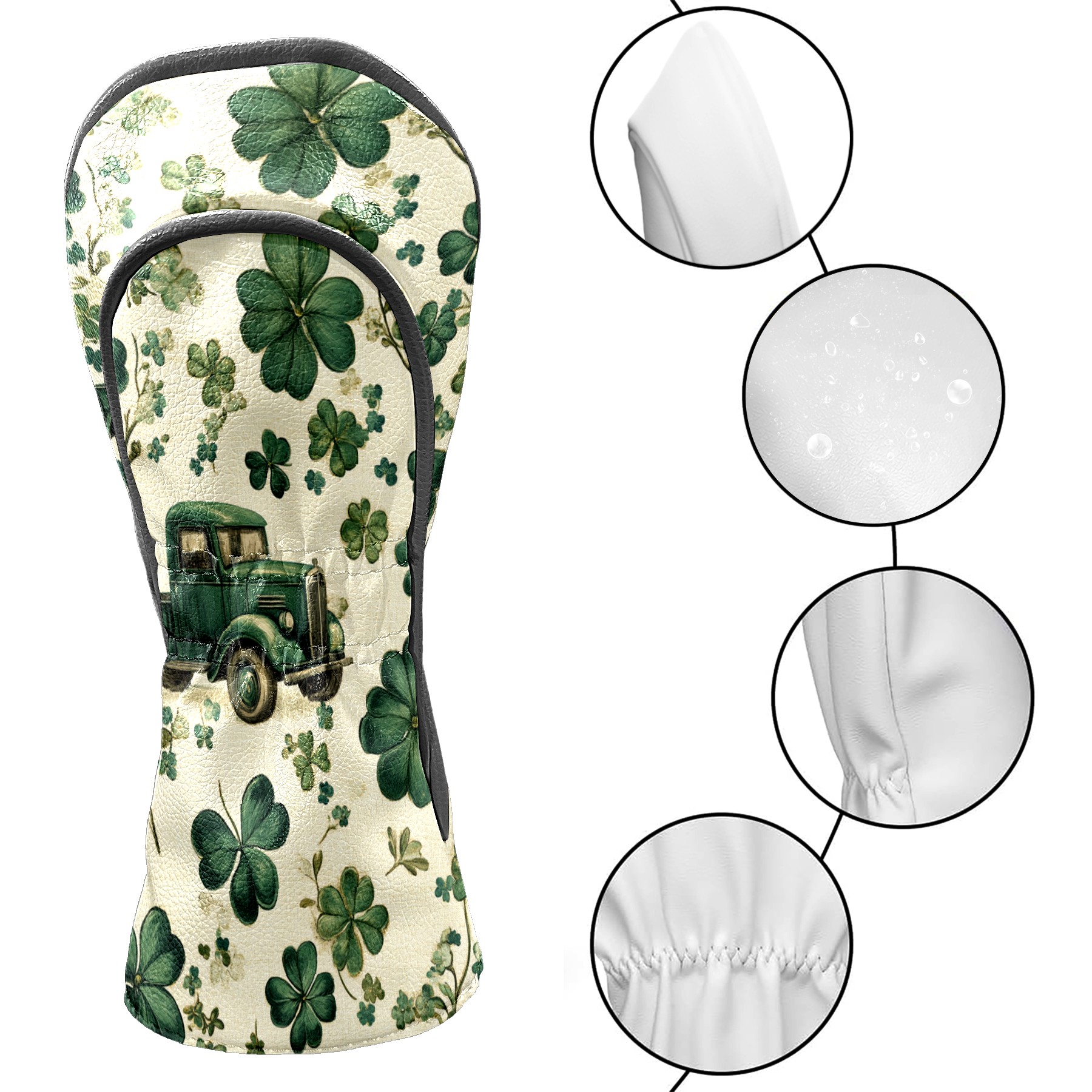 Golf Headcovers Fits Driver Hybrid Fairway 3/5 Wood, Waterproof PU Leather Golf Club Protector, Ideal Sports Accessories & Golfer Gift Green Truck Clover Pattern