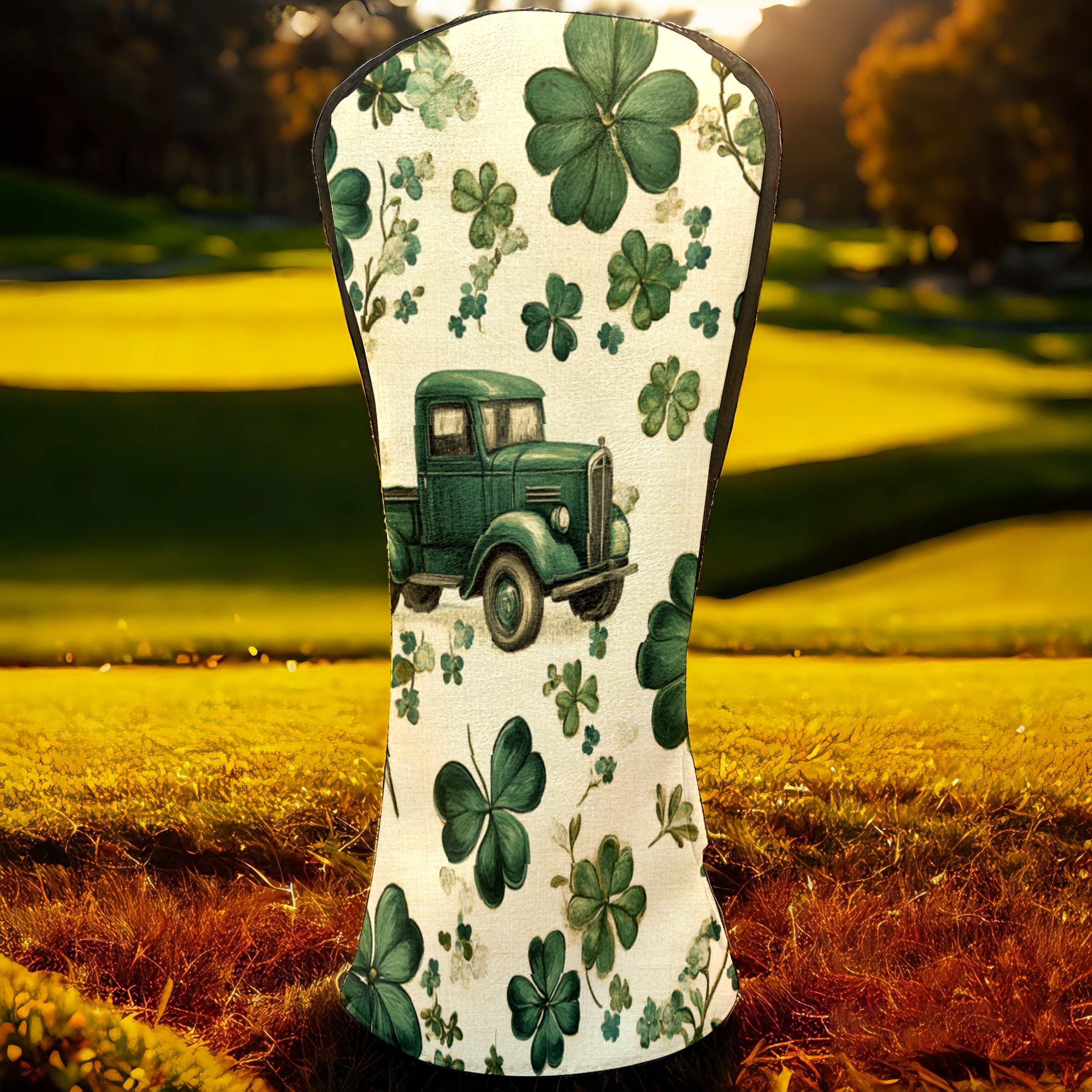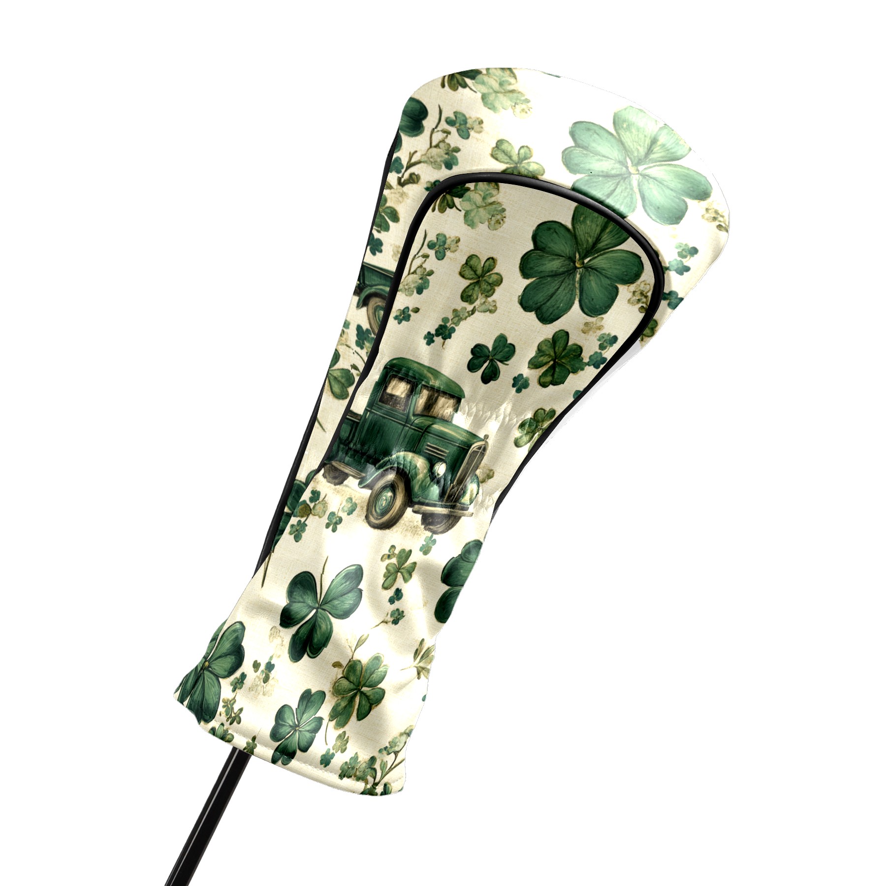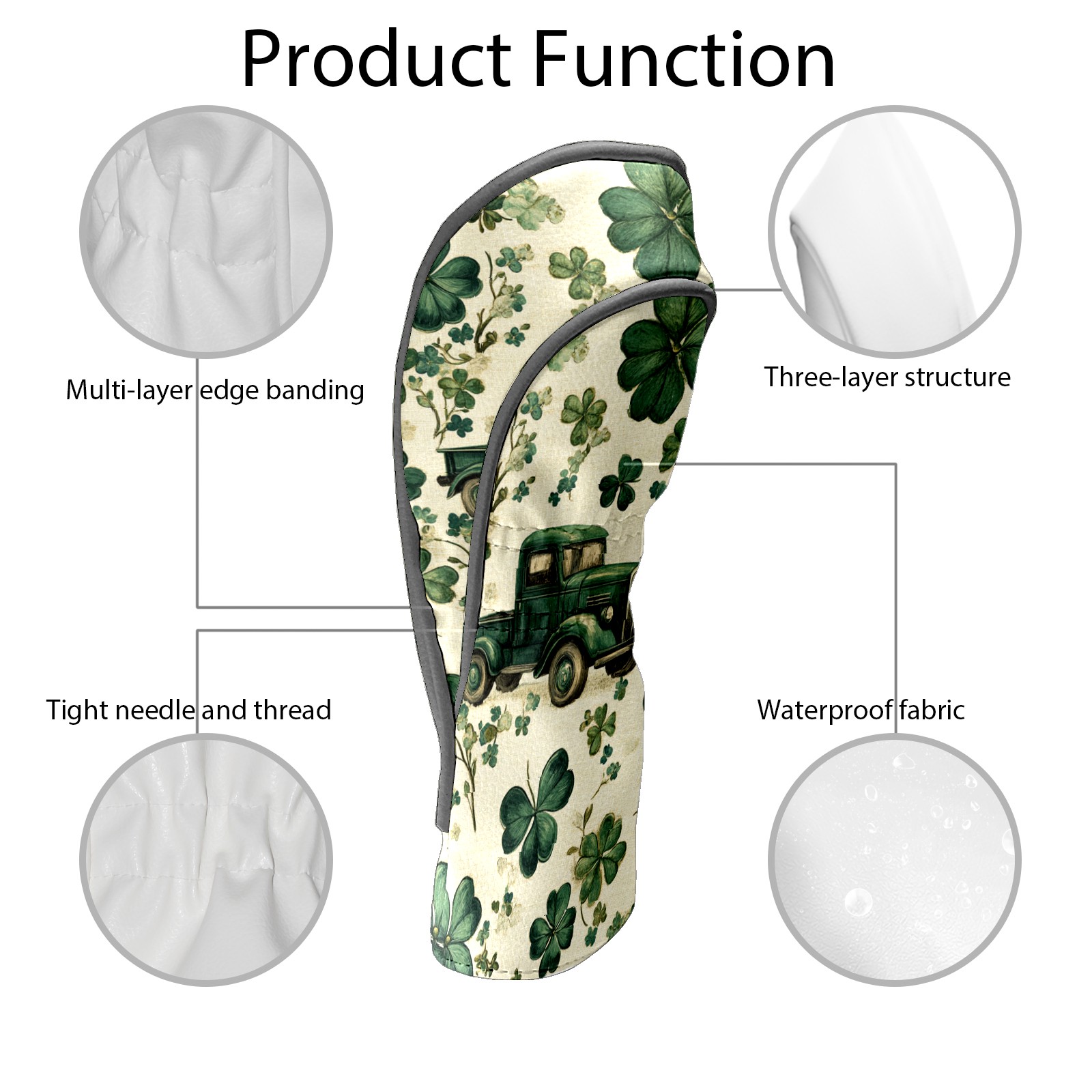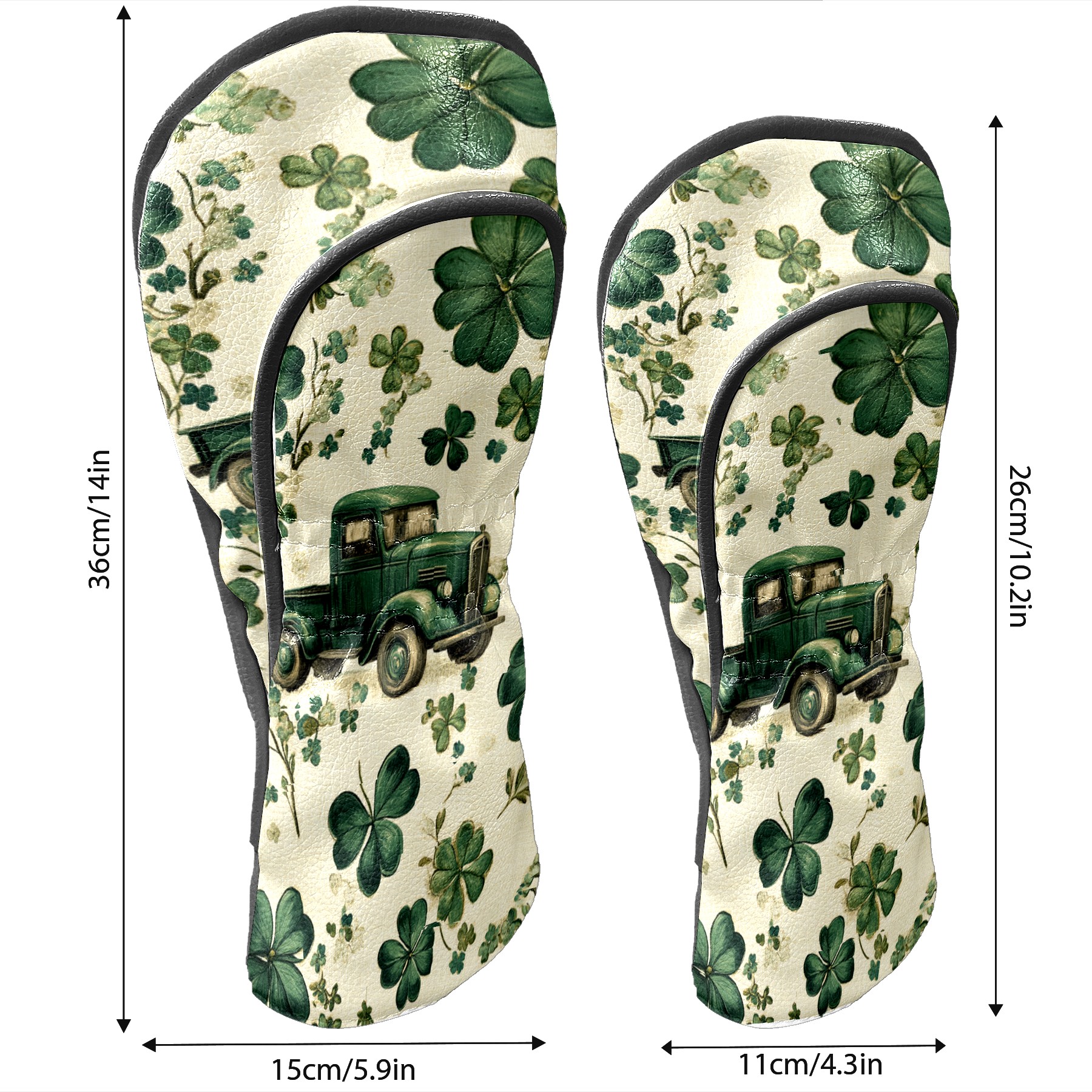 Golf Headcovers Fits Driver Hybrid Fairway 3/5 Wood, Waterproof PU Leather Golf Club Protector, Ideal Sports Accessories & Golfer Gift Green Truck Clover Pattern