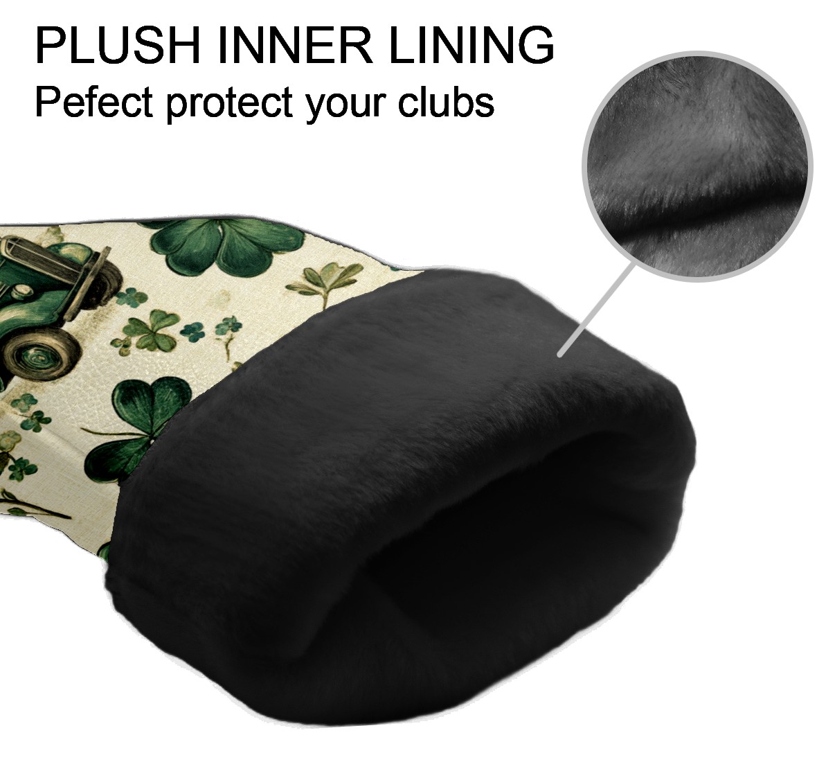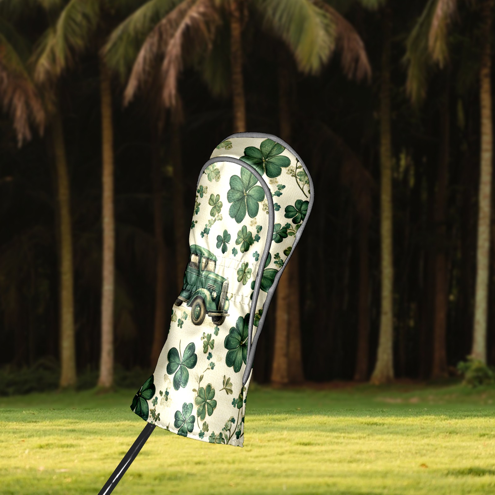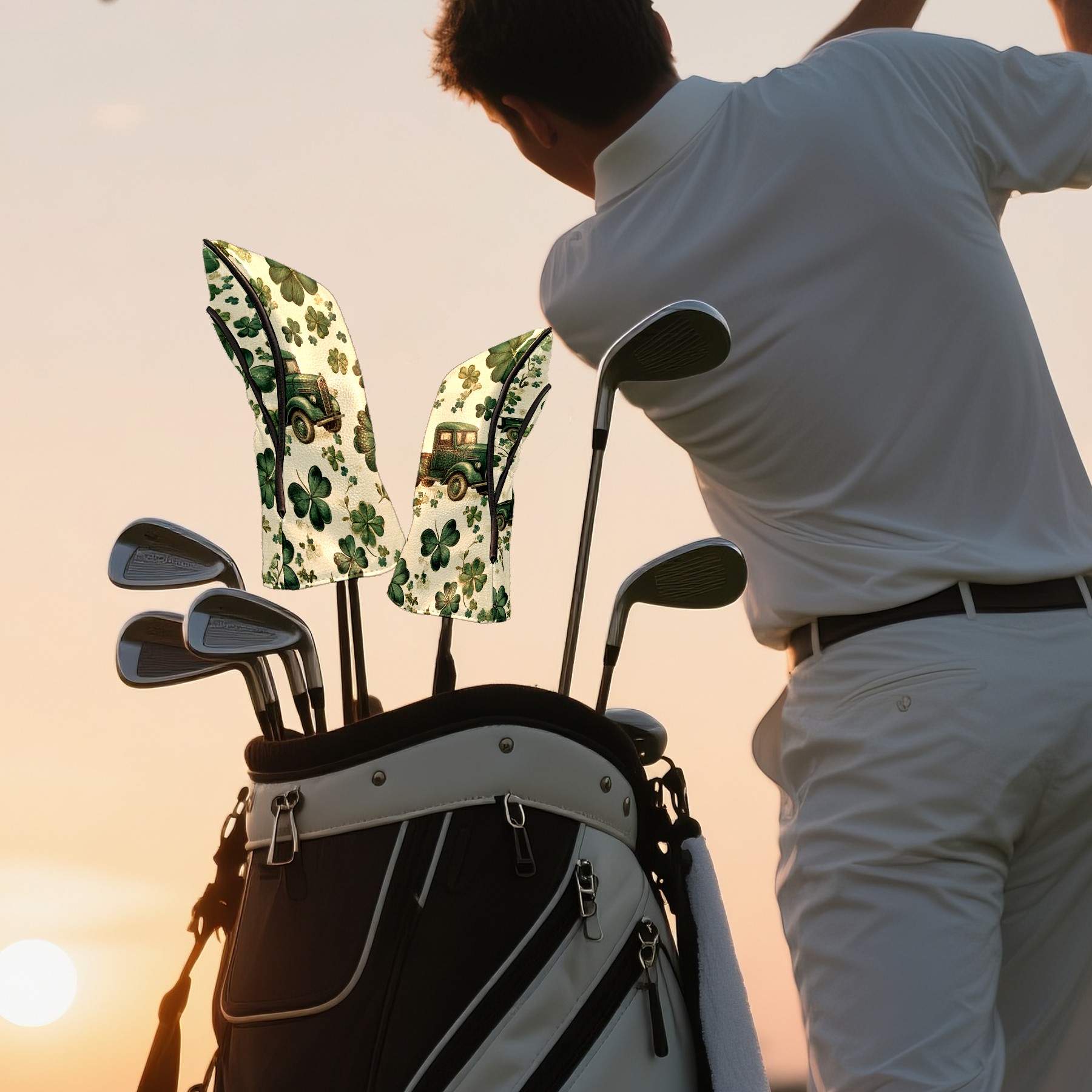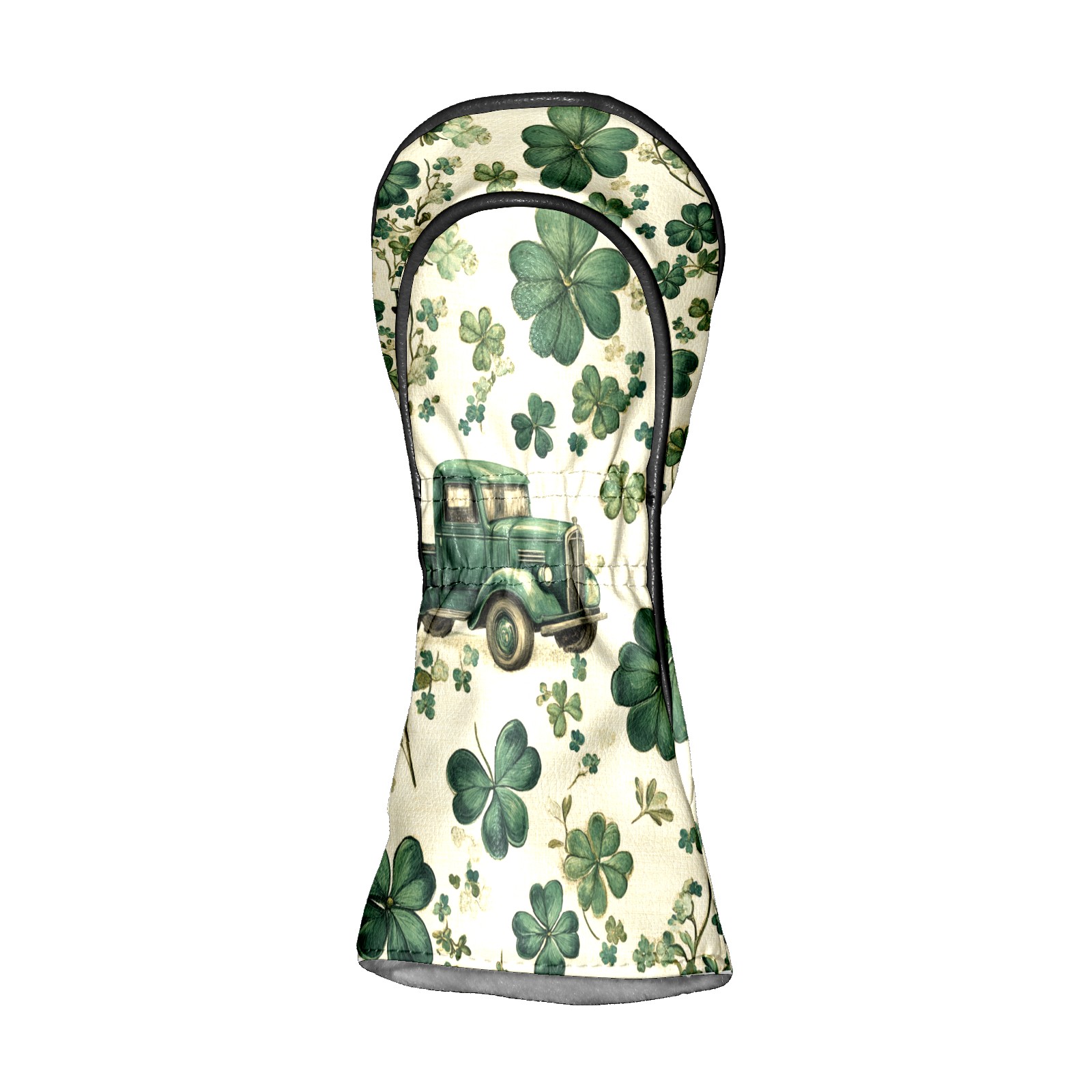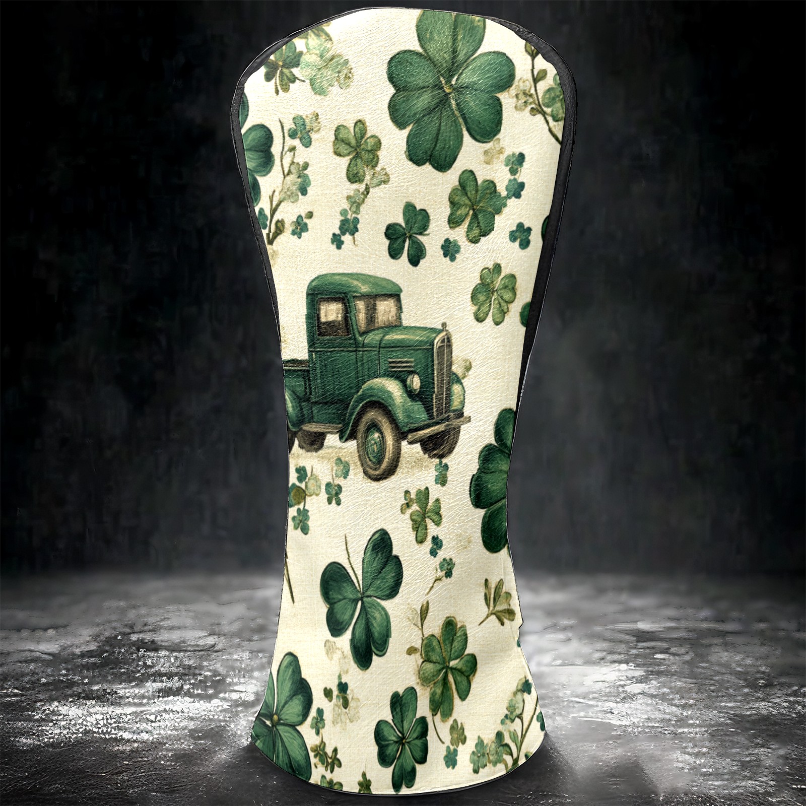 Golf Headcovers Fits Driver Hybrid Fairway 3/5 Wood, Waterproof PU Leather Golf Club Protector, Ideal Sports Accessories & Golfer Gift Green Truck Clover Pattern