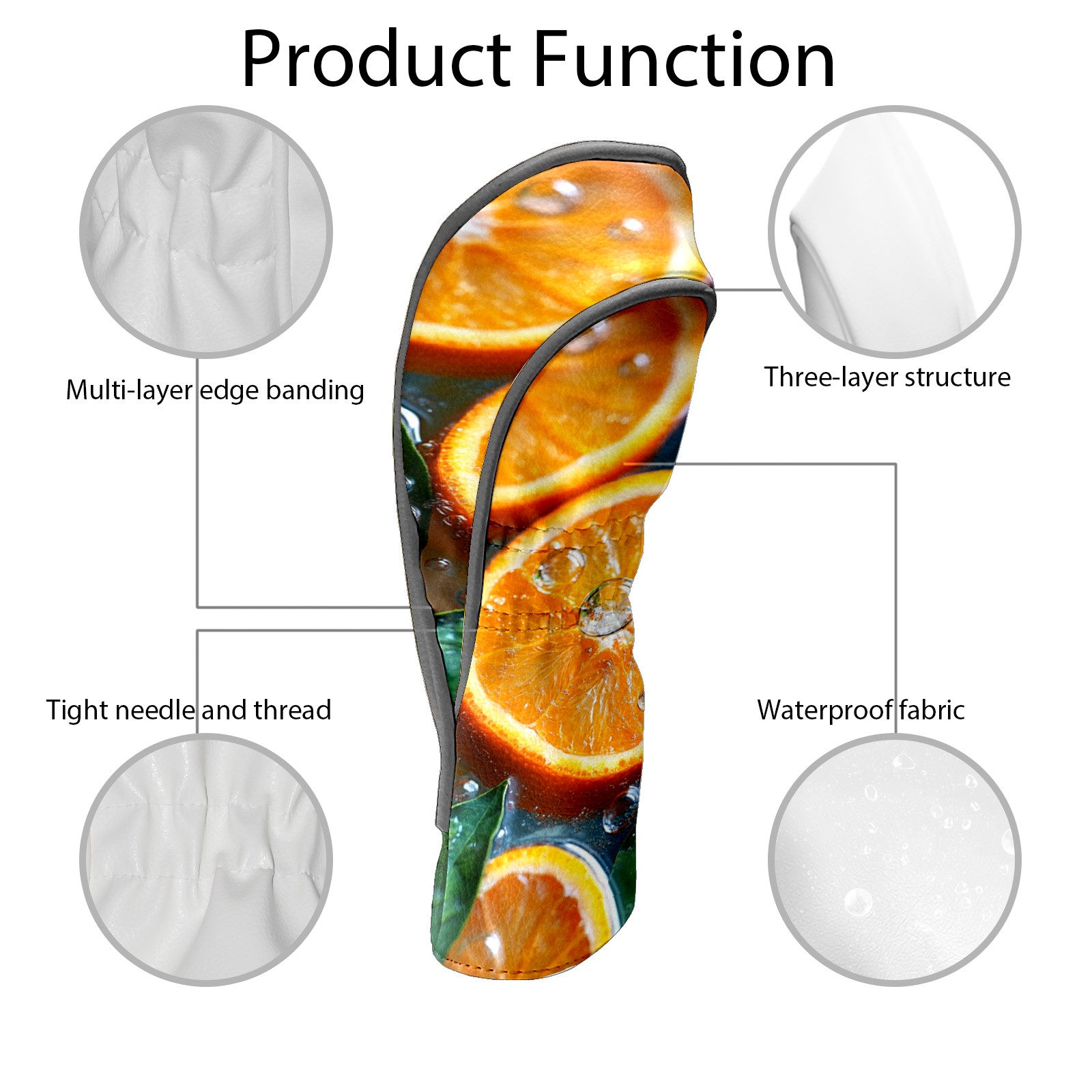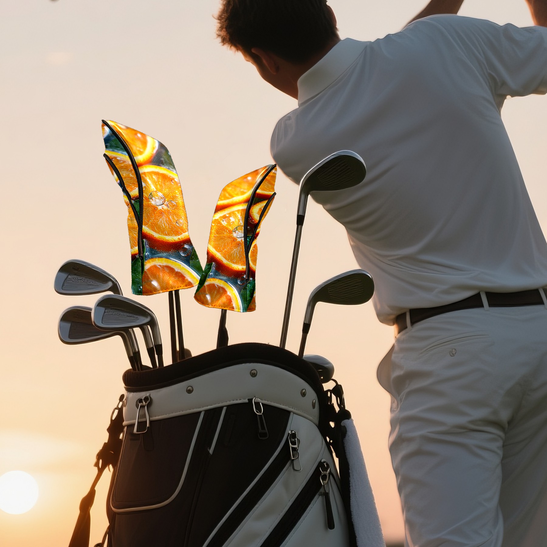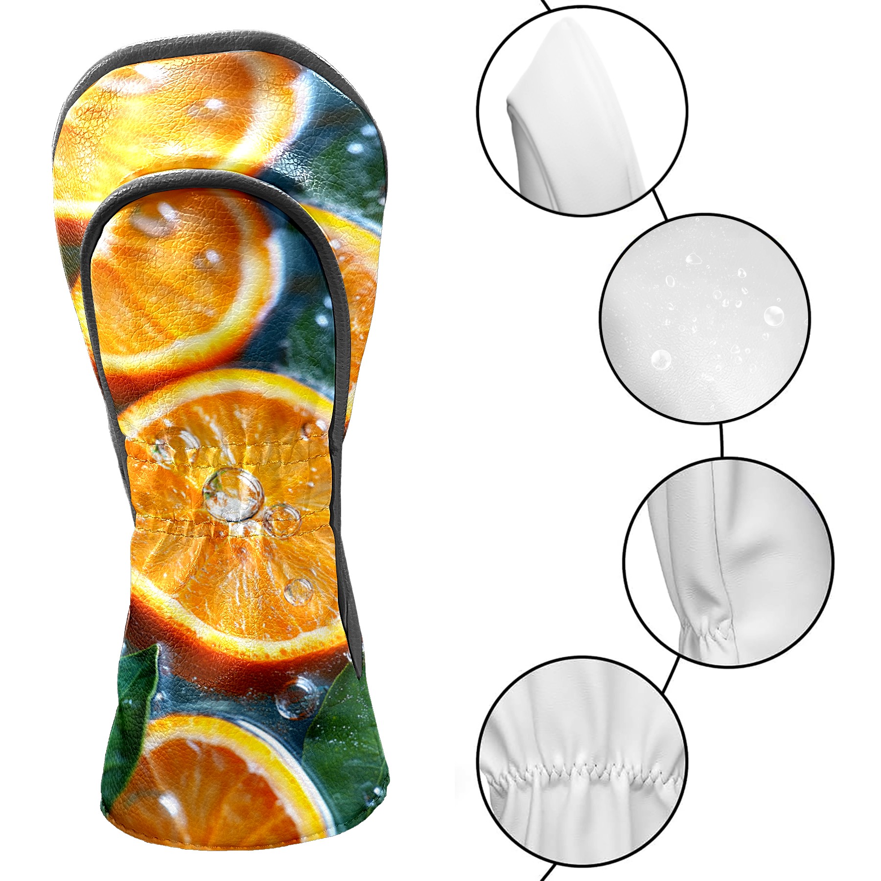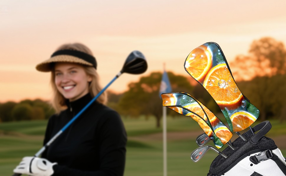 Golf Headcovers Fits Driver Hybrid Fairway 3/5 Wood, Waterproof PU Leather Golf Club Protector, Ideal Sports Accessories & Golfer Gift Orange Slices Pattern