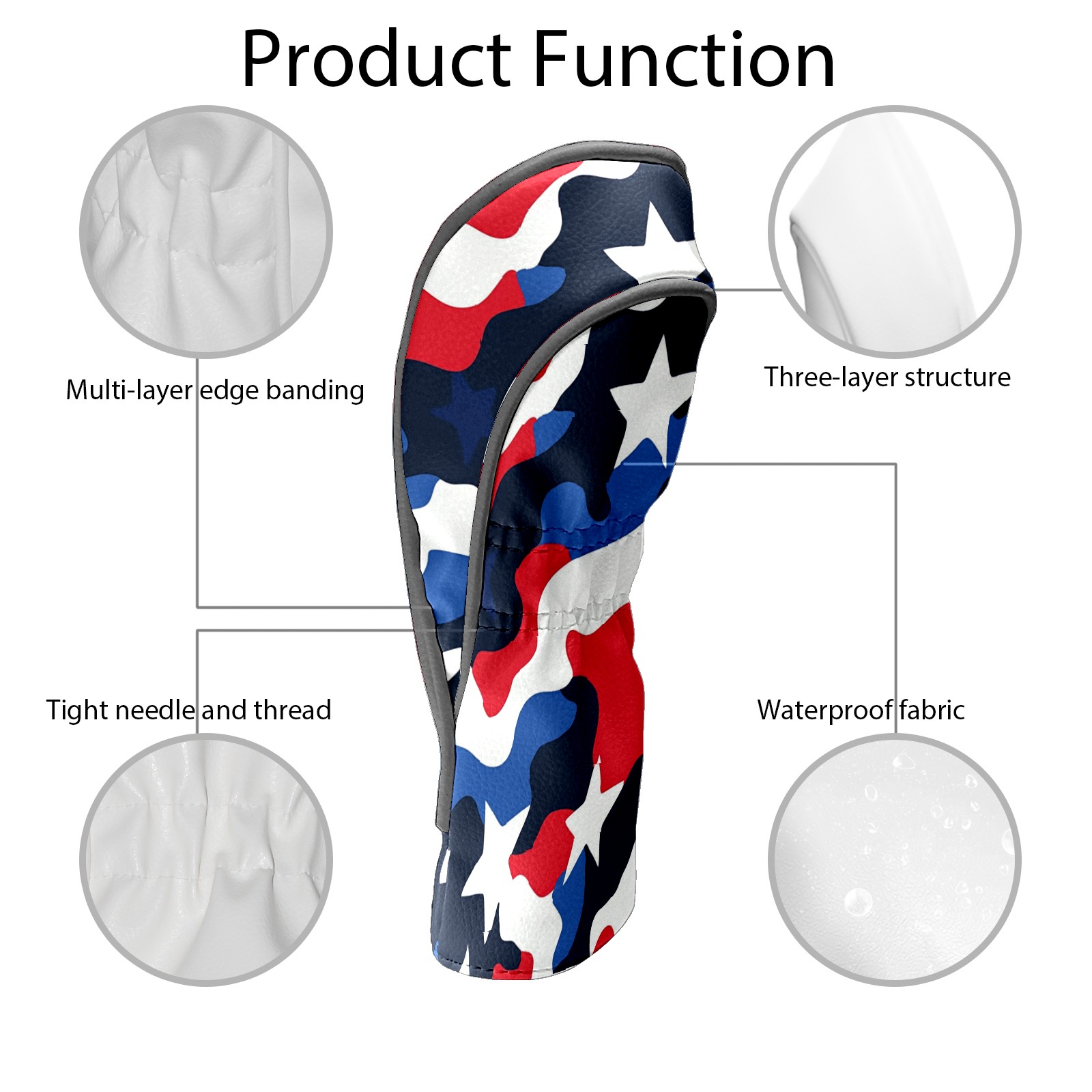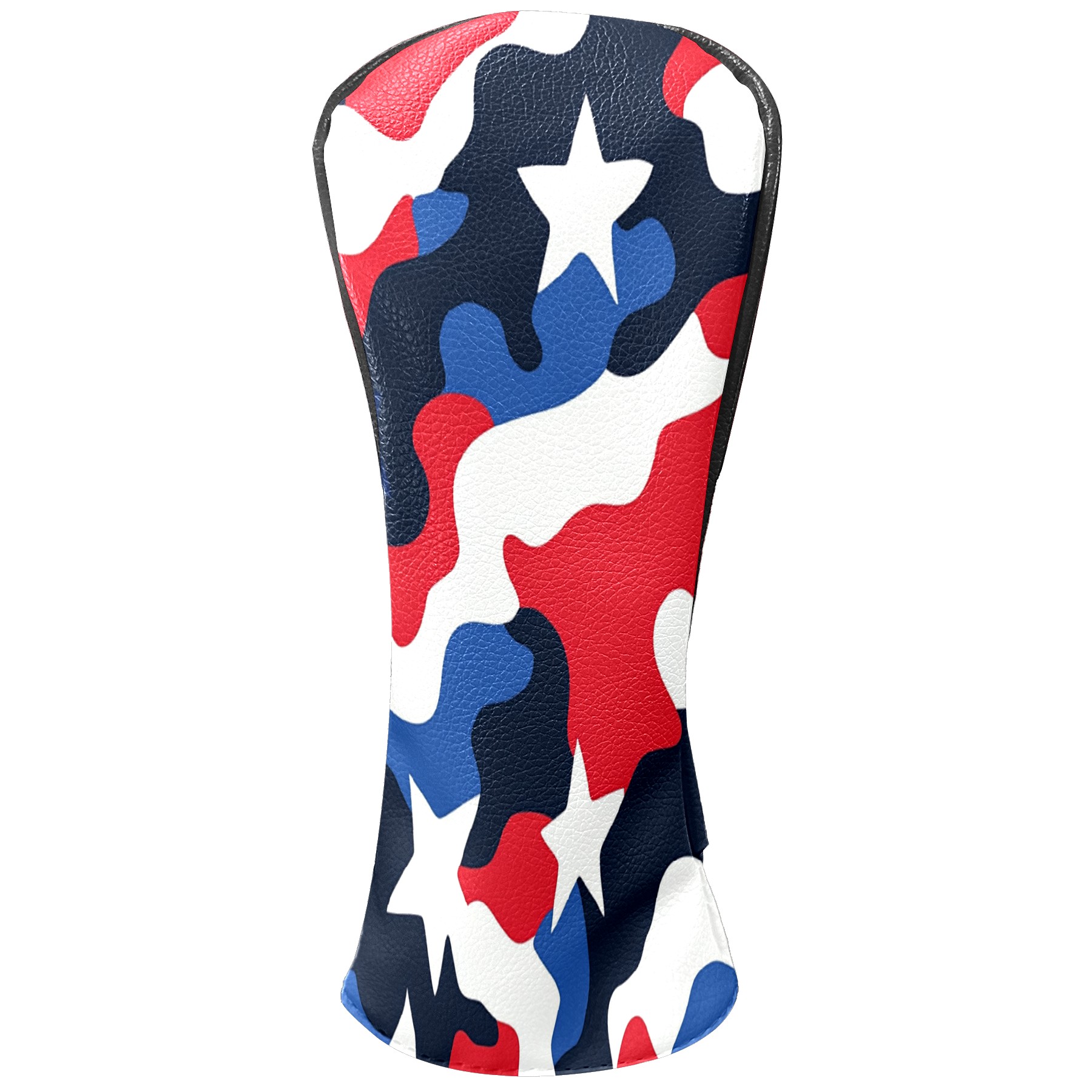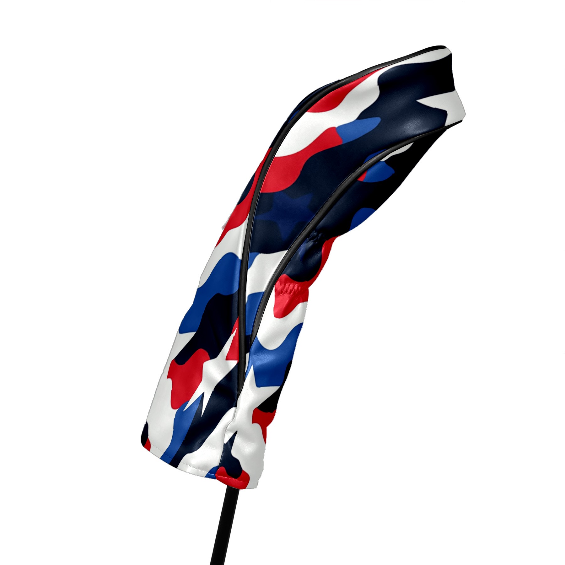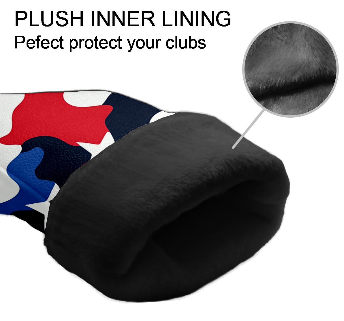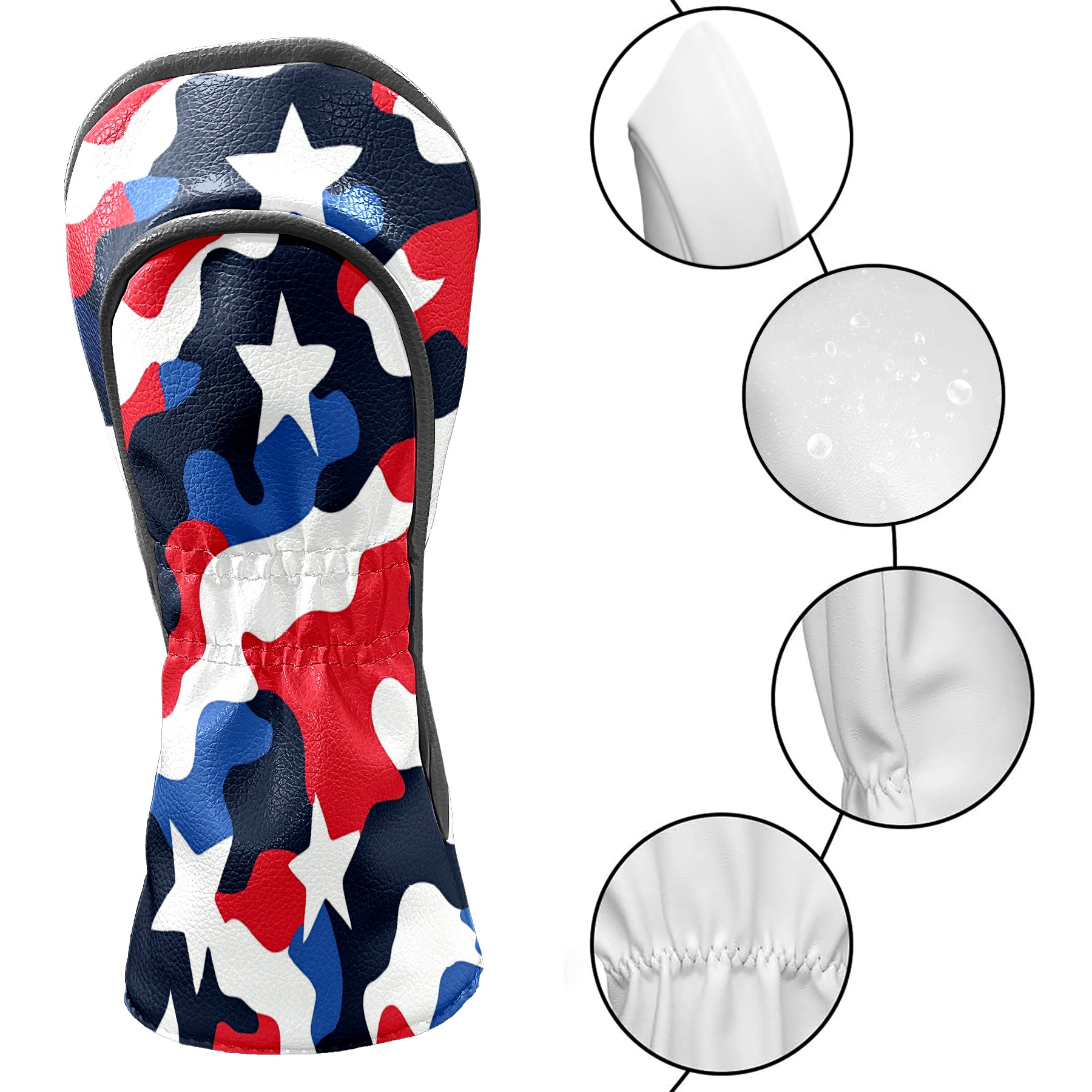 Golf Headcovers Fits Driver Hybrid Fairway 3/5 Wood, Waterproof PU Leather Golf Club Protector, Ideal Sports Accessories & Golfer Gift Red Blue Camouflage Pattern