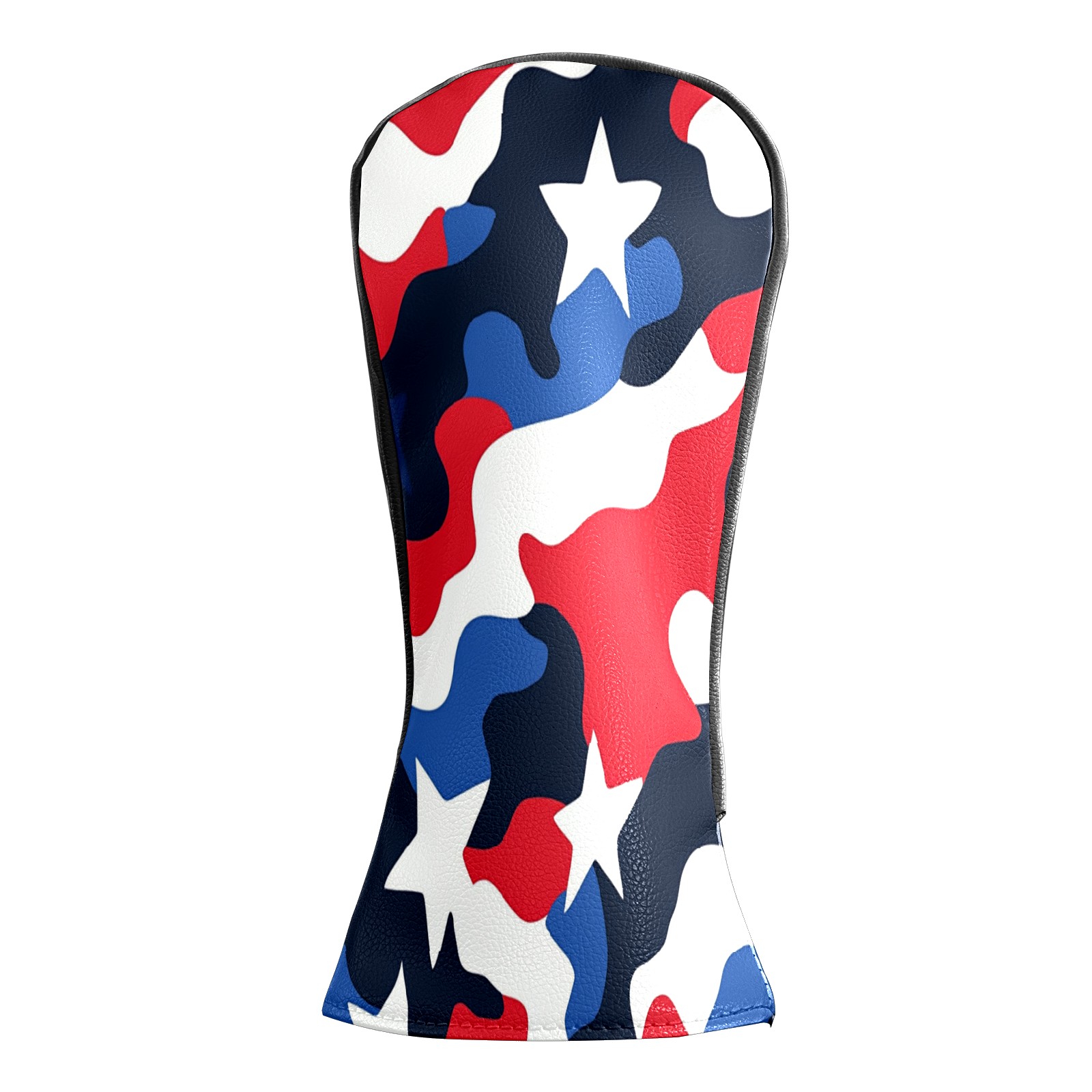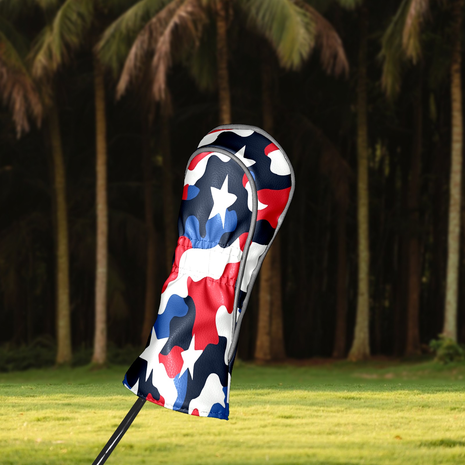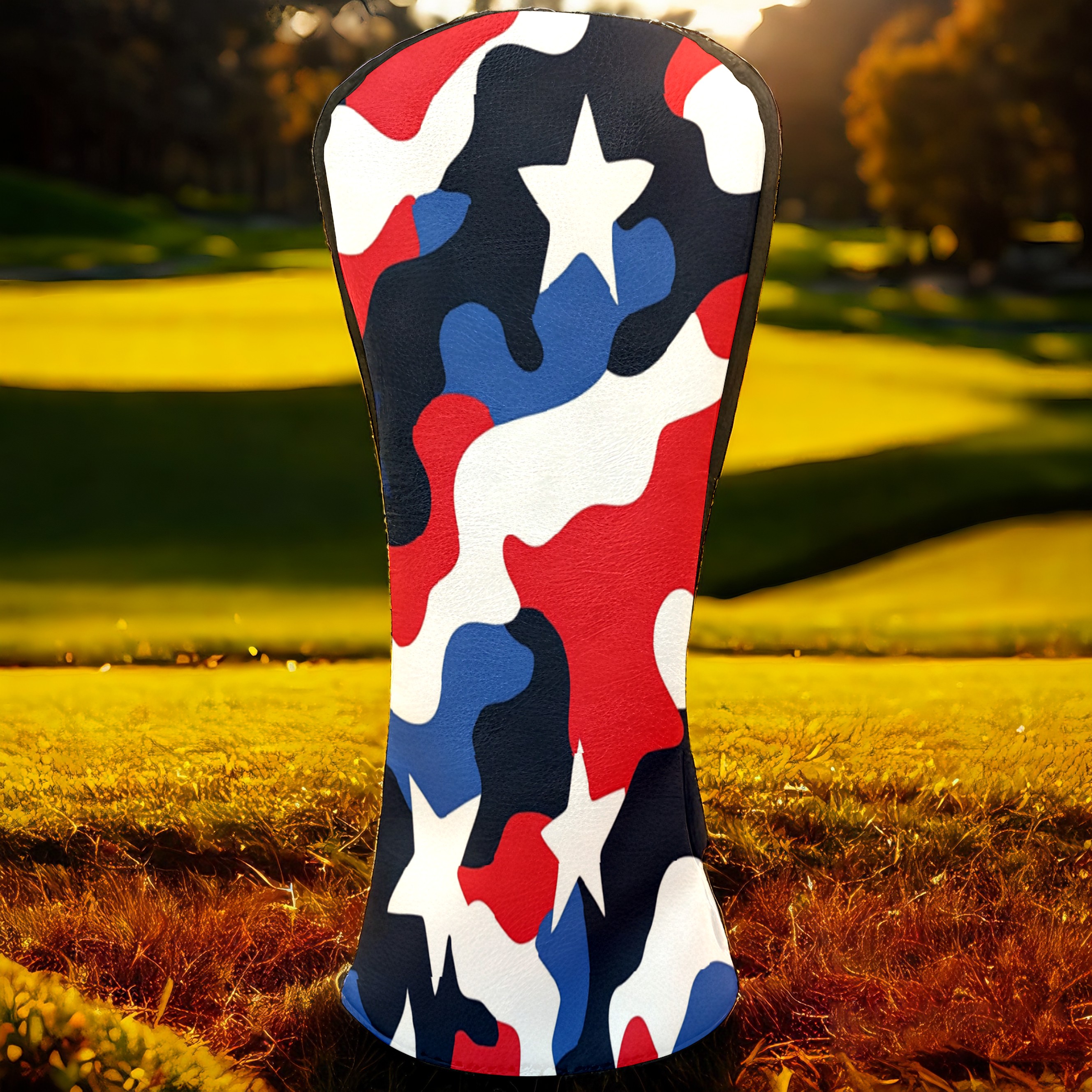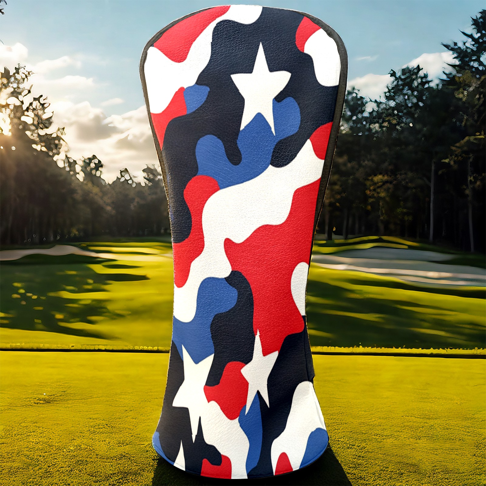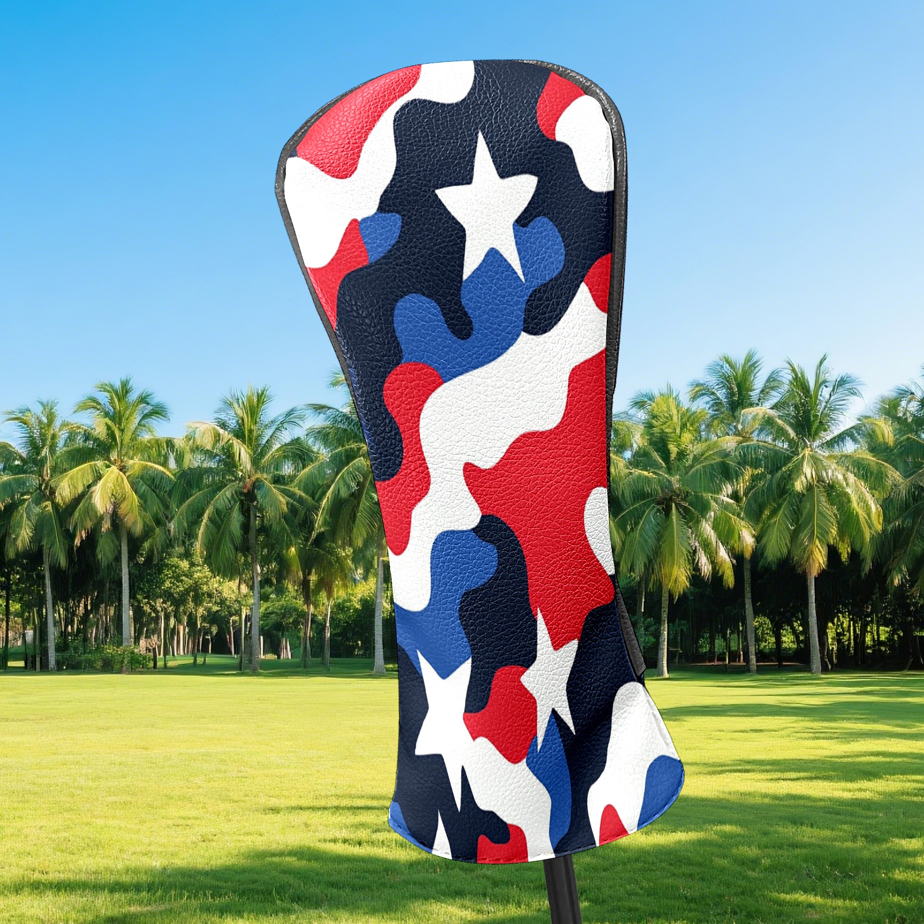 Golf Headcovers Fits Driver Hybrid Fairway 3/5 Wood, Waterproof PU Leather Golf Club Protector, Ideal Sports Accessories & Golfer Gift Red Blue Camouflage Pattern