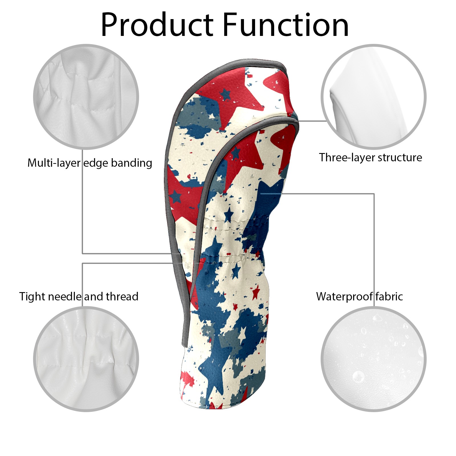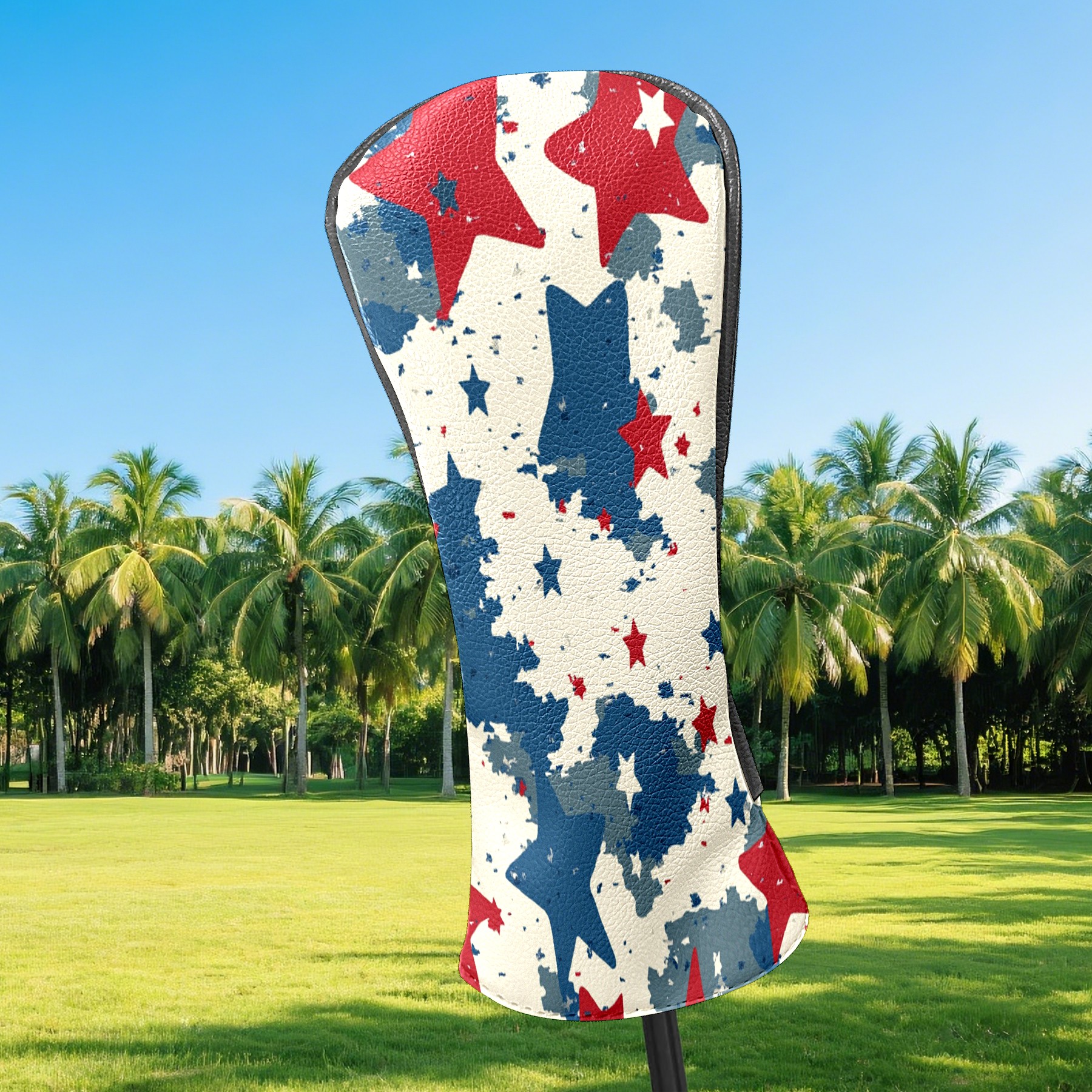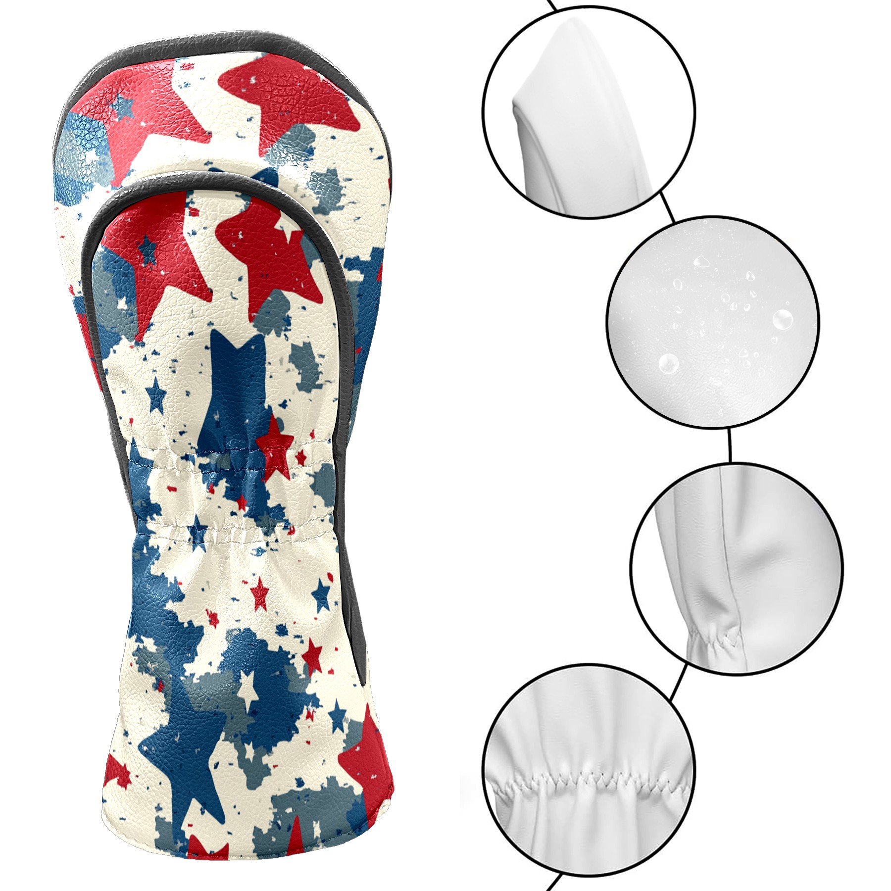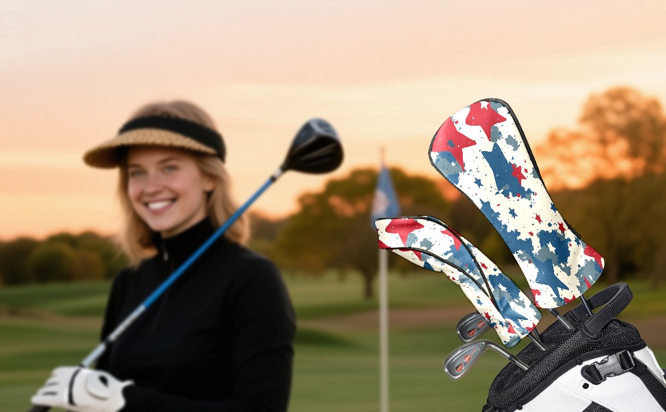 Golf Headcovers Fits Driver Hybrid Fairway 3/5 Wood, Waterproof PU Leather Golf Club Protector, Ideal Sports Accessories & Golfer Gift Red Blue Star Pattern