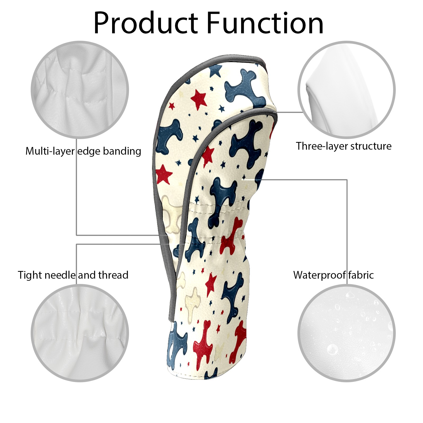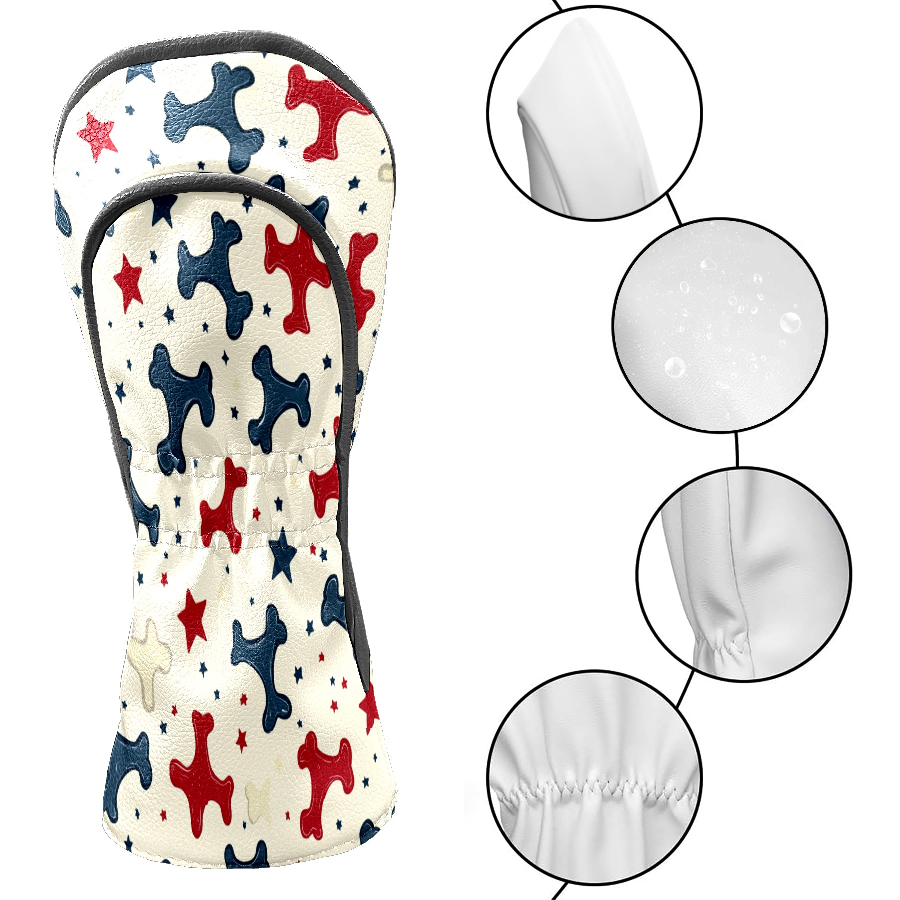 Golf Headcovers Fits Driver Hybrid Fairway 3/5 Wood, Waterproof PU Leather Golf Club Protector, Ideal Sports Accessories & Golfer Gift Bone Star Pattern1