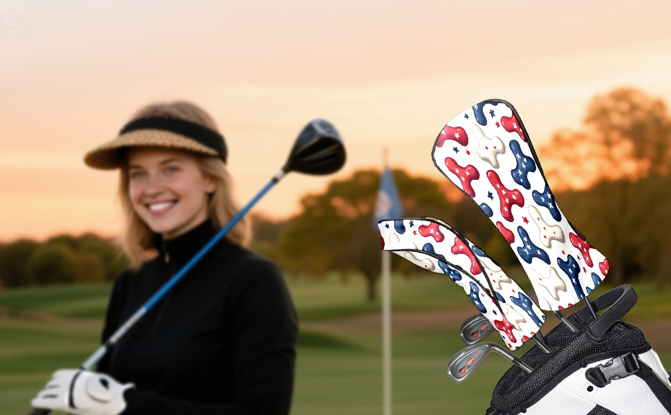 Golf Headcovers Fits Driver Hybrid Fairway 3/5 Wood, Waterproof PU Leather Golf Club Protector, Ideal Sports Accessories & Golfer Gift Bone Star Pattern6