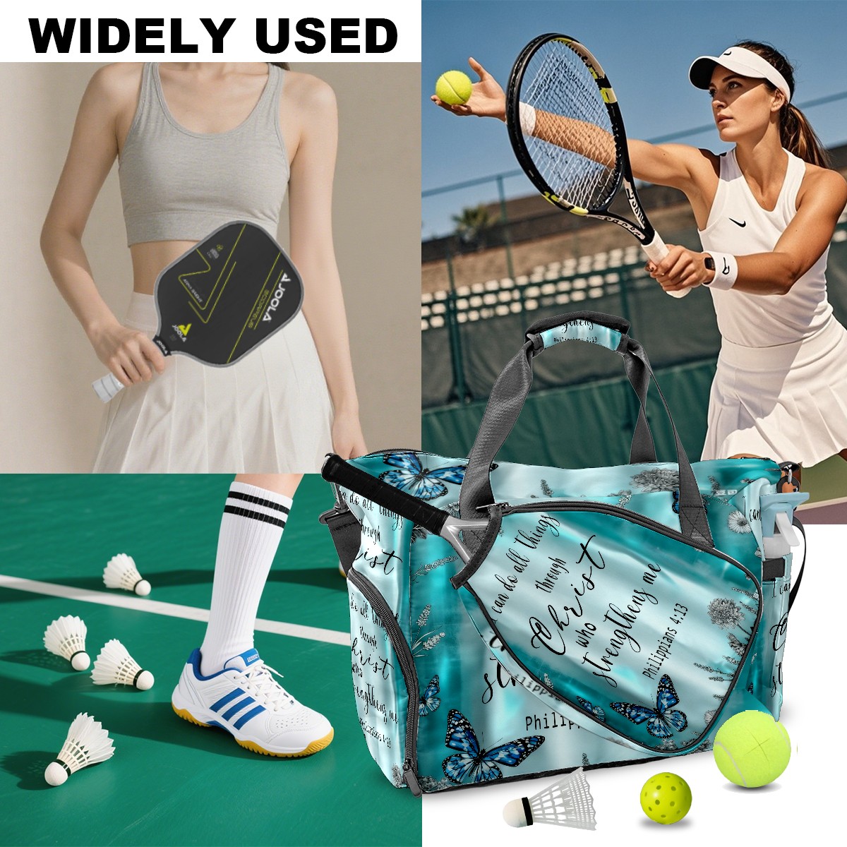 • <p>This twill fabric bag is built for your active life: whether you’re heading to pickleball practice, a gym class, or a weekend getaway, its 8.7"x18.9"x13.8" size fits all your gear (paddles, clothes, shoes) while staying lightweight.The ventilated shoe compartment keeps size 10 footwear separate (no more stinky clothes), and the waterproof wet pocket locks in moisture from swimsuits or sweaty gear. Smart pockets let you grab your phone or card mid-routine, and the sleek twill design looks as good at brunch as it does at the court.Use it as a pickleball bag, gym tote, travel duffel, or overnight bag—its multiuse layout fits every part of your day.</p>