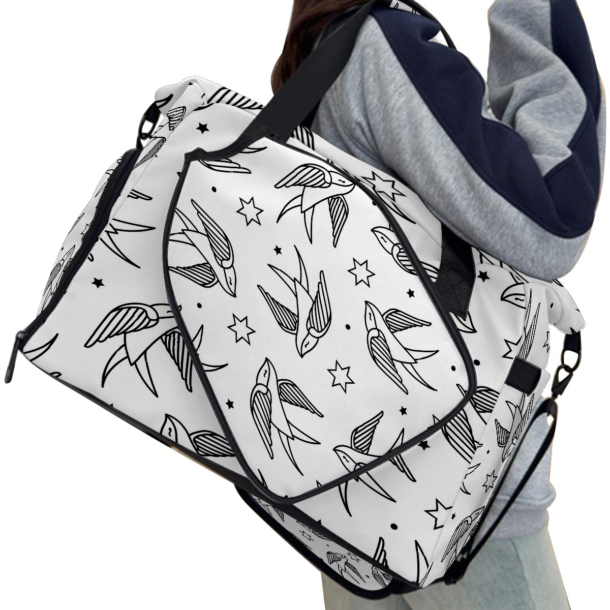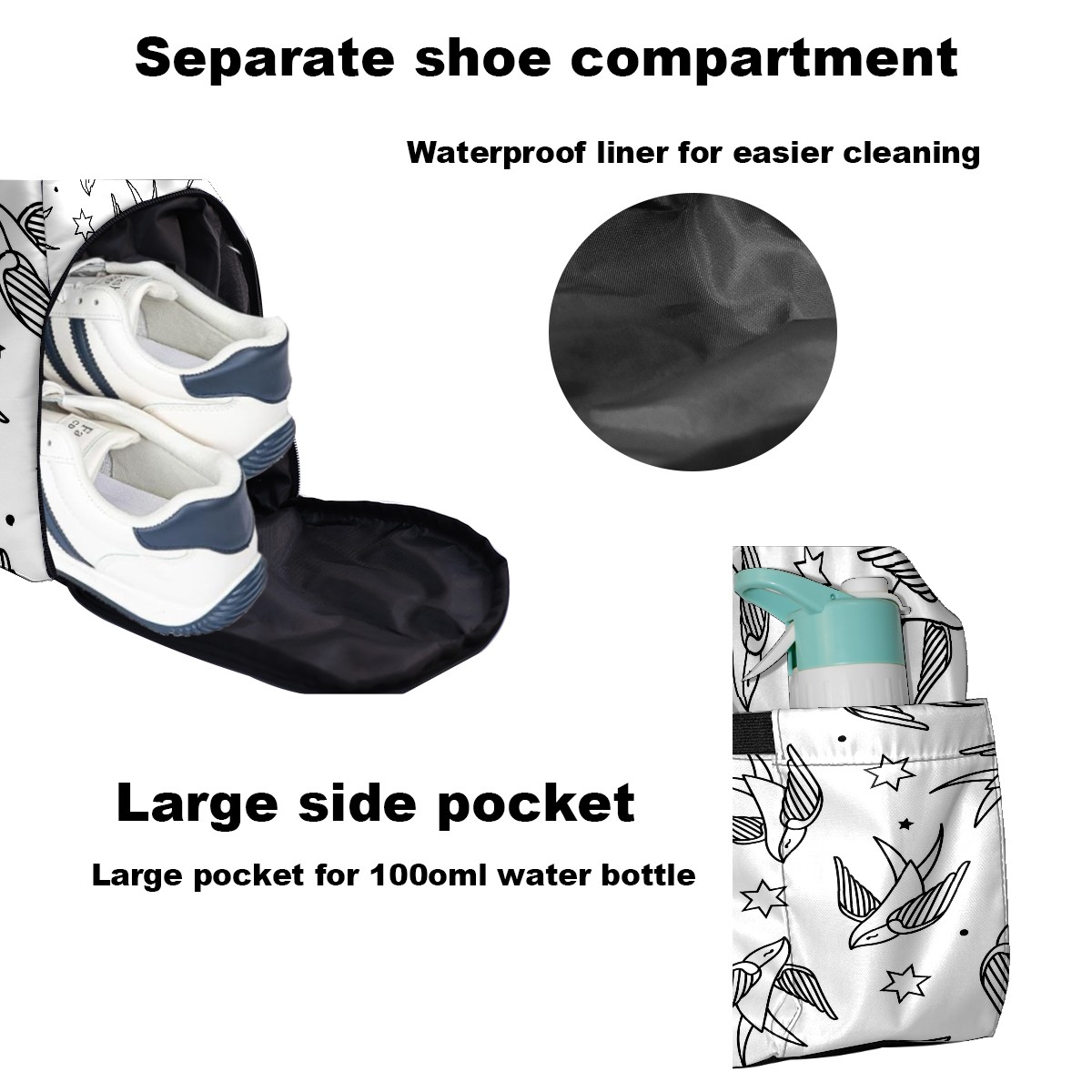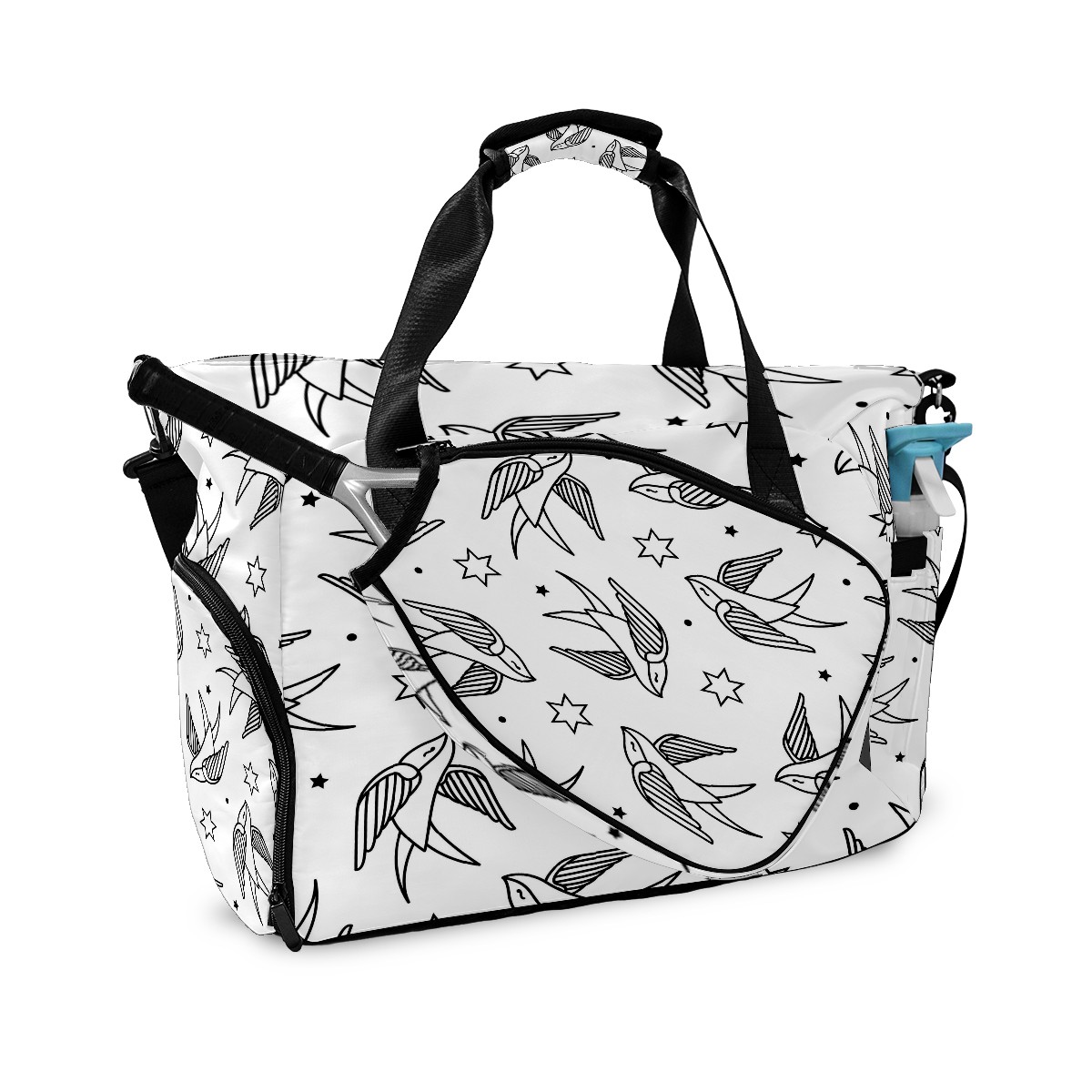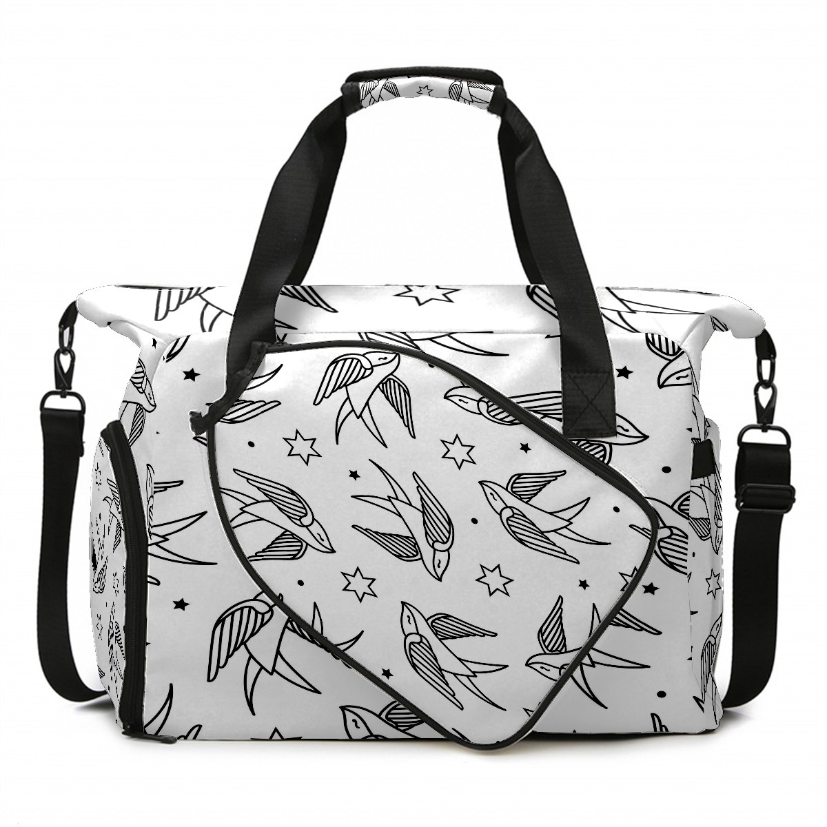Pickleball Bag Backpack - Twill Fabric Gym Bag with Ventilated Shoe Compartment & Wet Pocket, Multiuse for Pickleball Gear, Travel, Workout Pattern-with-swallows-in-old-sch