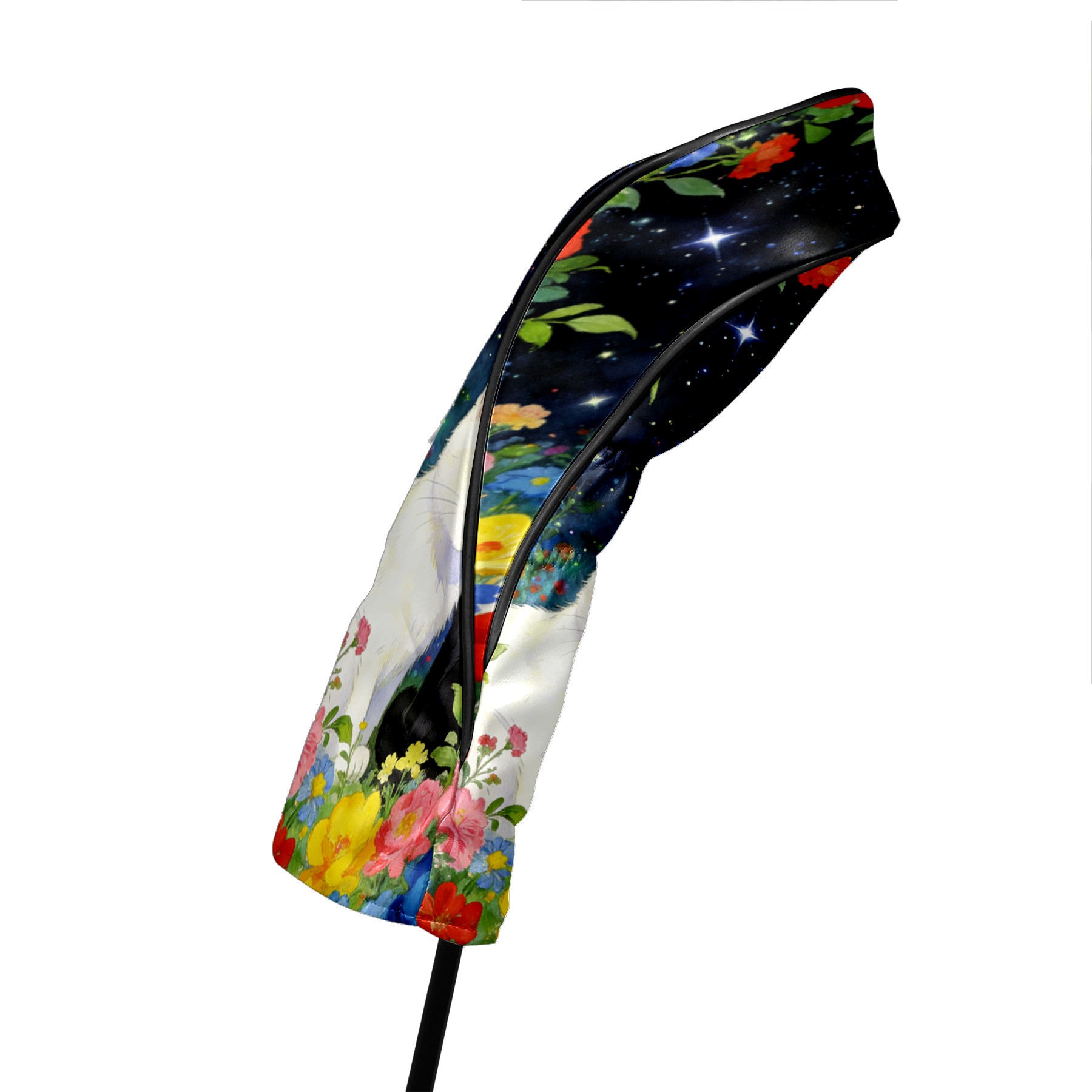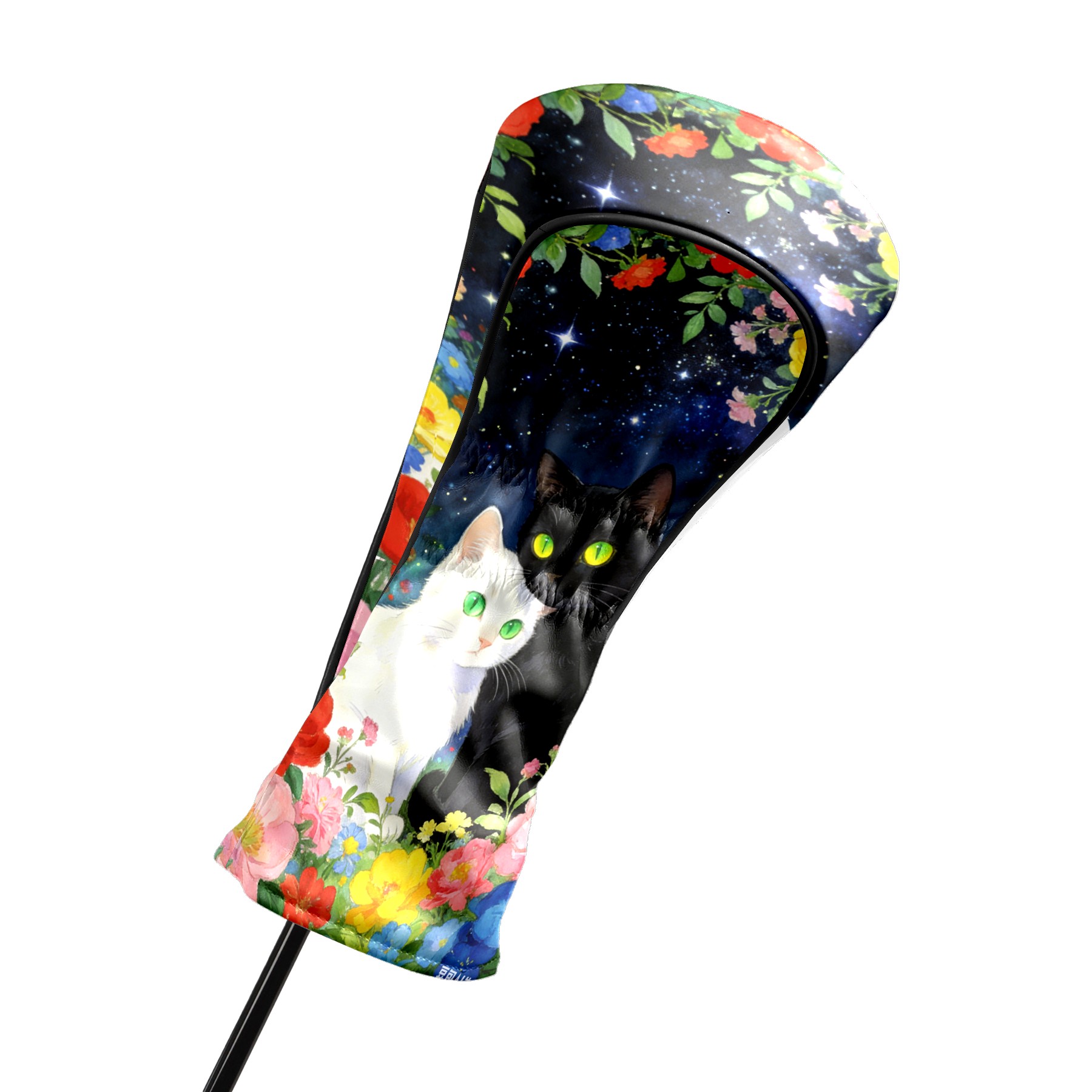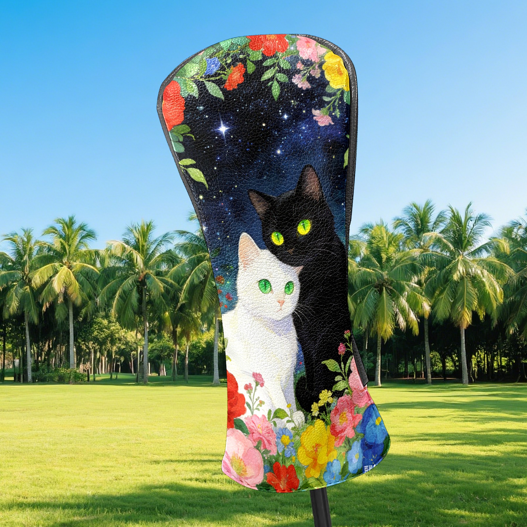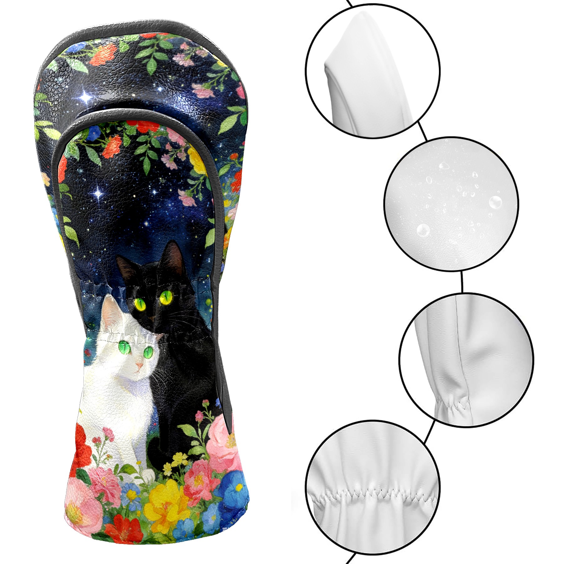 Golf Headcovers Fits Driver Hybrid Fairway 3/5 Wood, Waterproof PU Leather Golf Club Protector, Ideal Sports Accessories & Golfer Gift Colored Flowers Black White 3