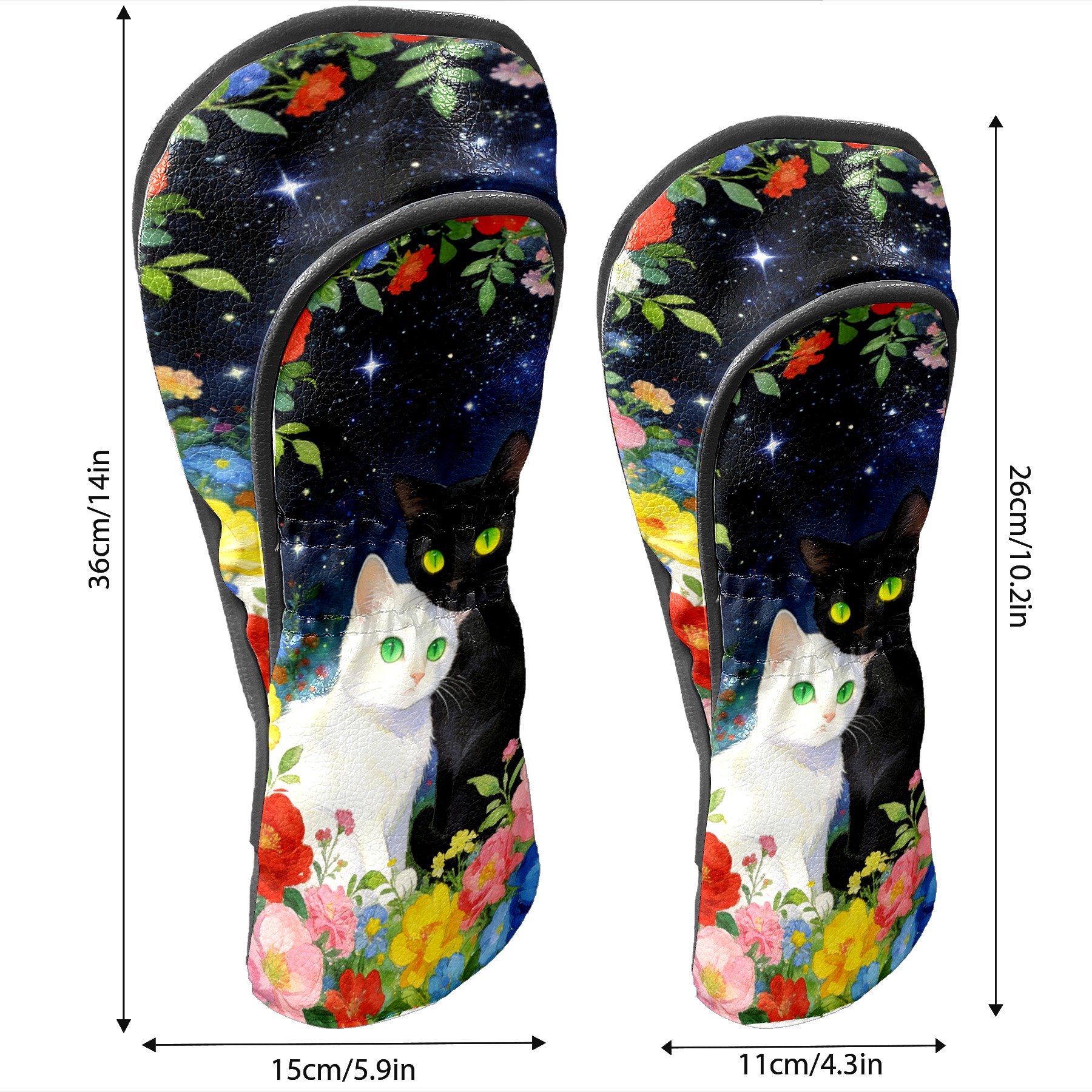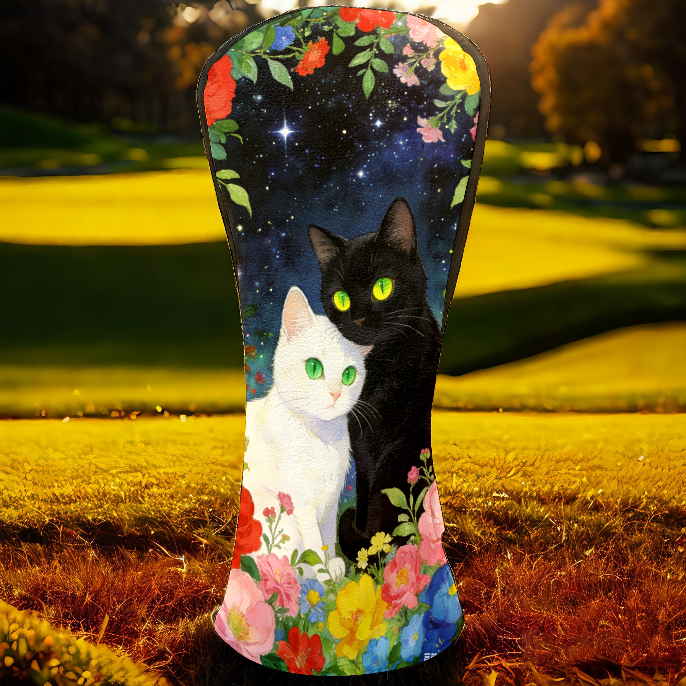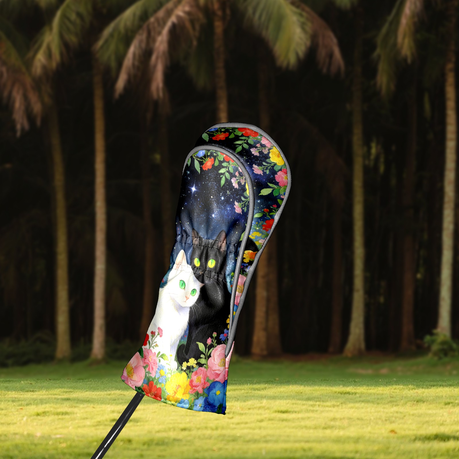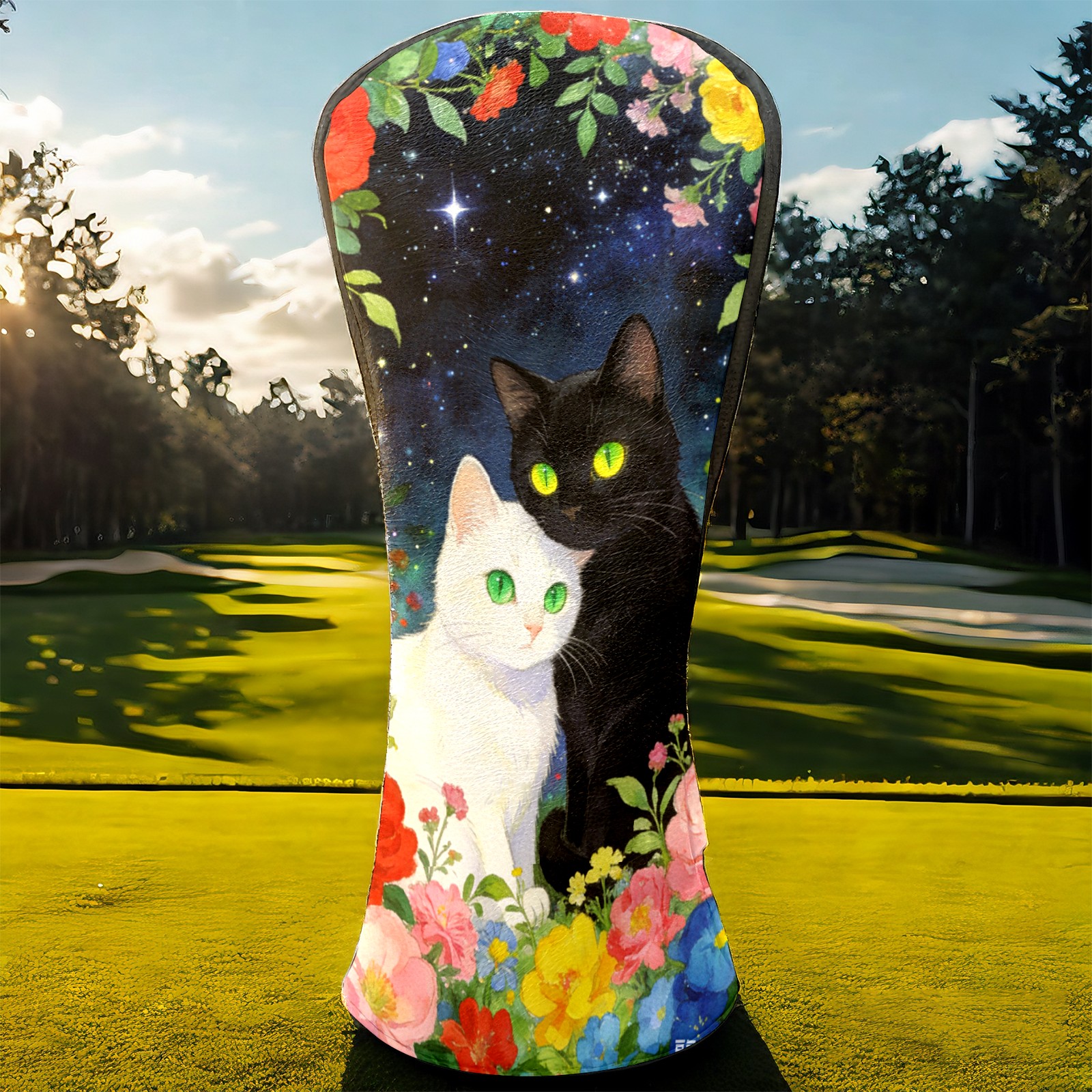 Golf Headcovers Fits Driver Hybrid Fairway 3/5 Wood, Waterproof PU Leather Golf Club Protector, Ideal Sports Accessories & Golfer Gift Colored Flowers Black White 3