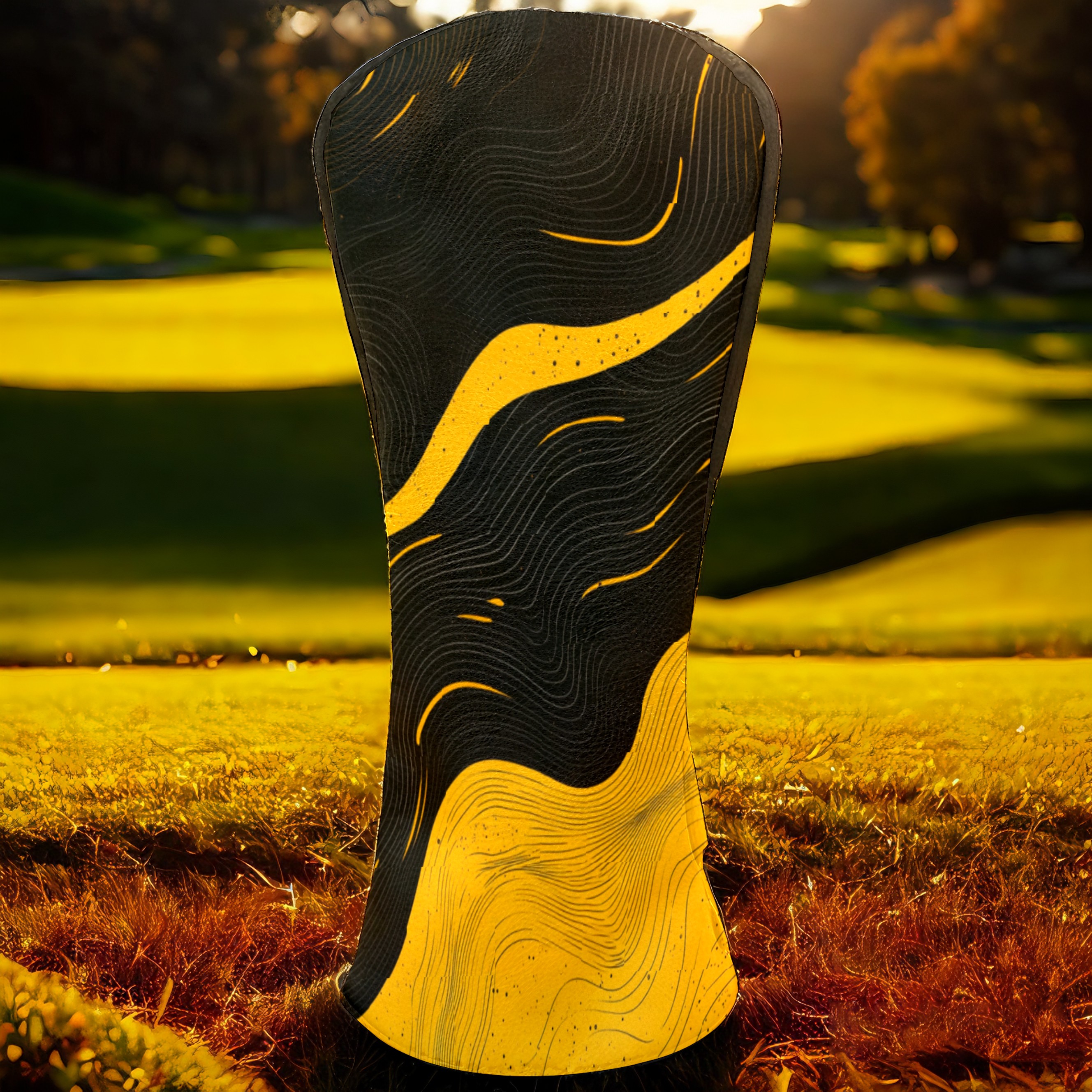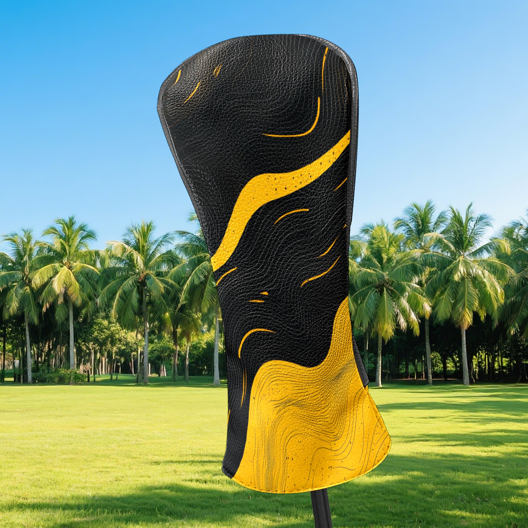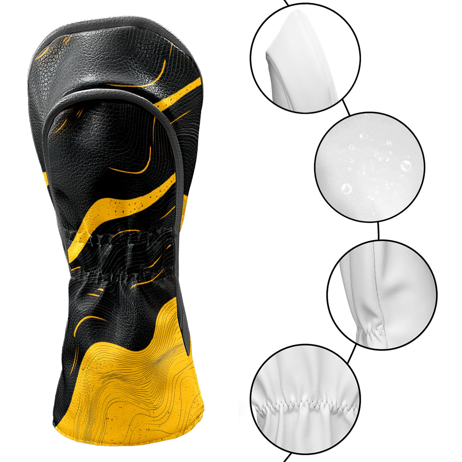 Golf Club Head Cover, High Quality PU Leather Driver and Wood Club Head Cover with Anti-Scratch Lining, Black Gold Ripples Universal Gift for Men and Women
