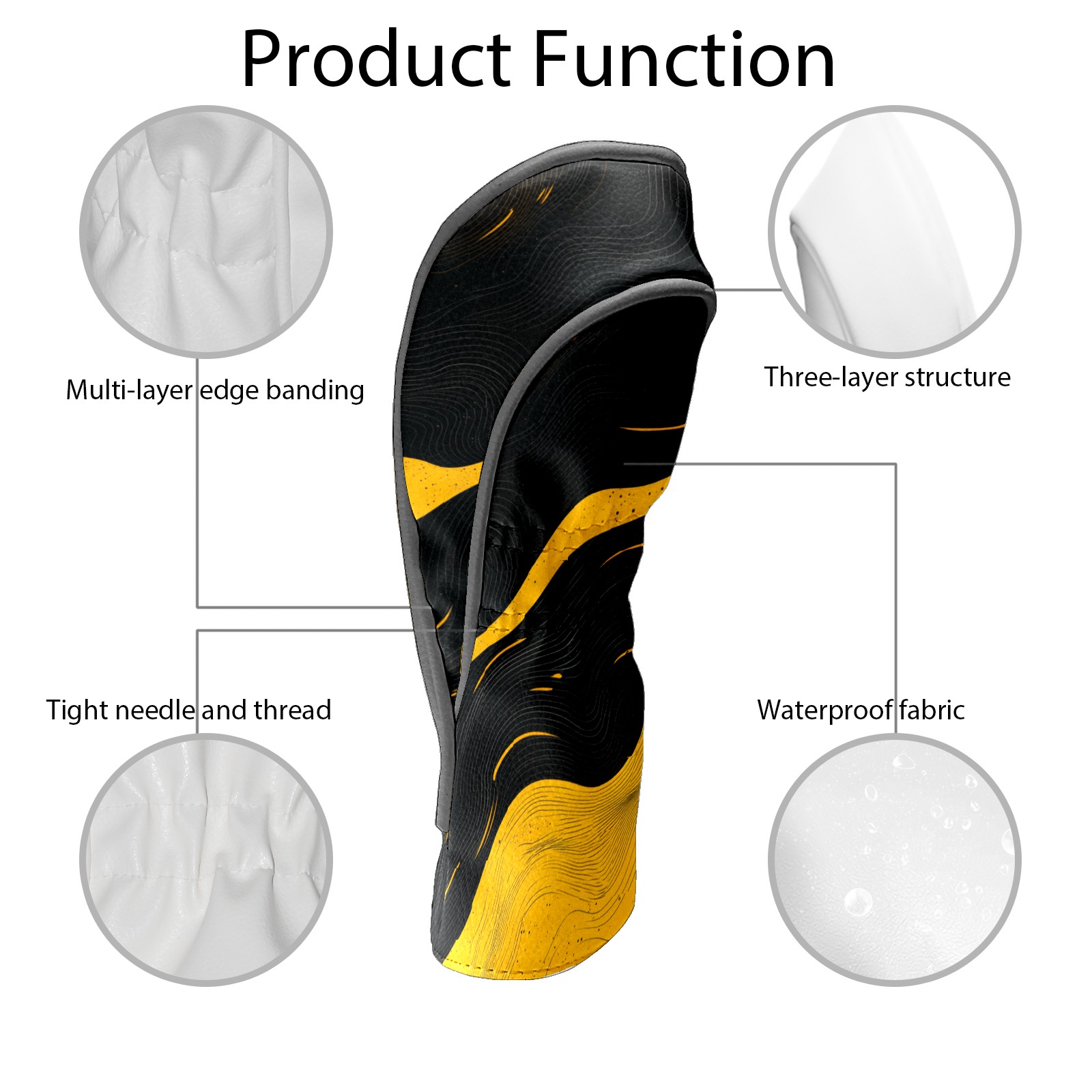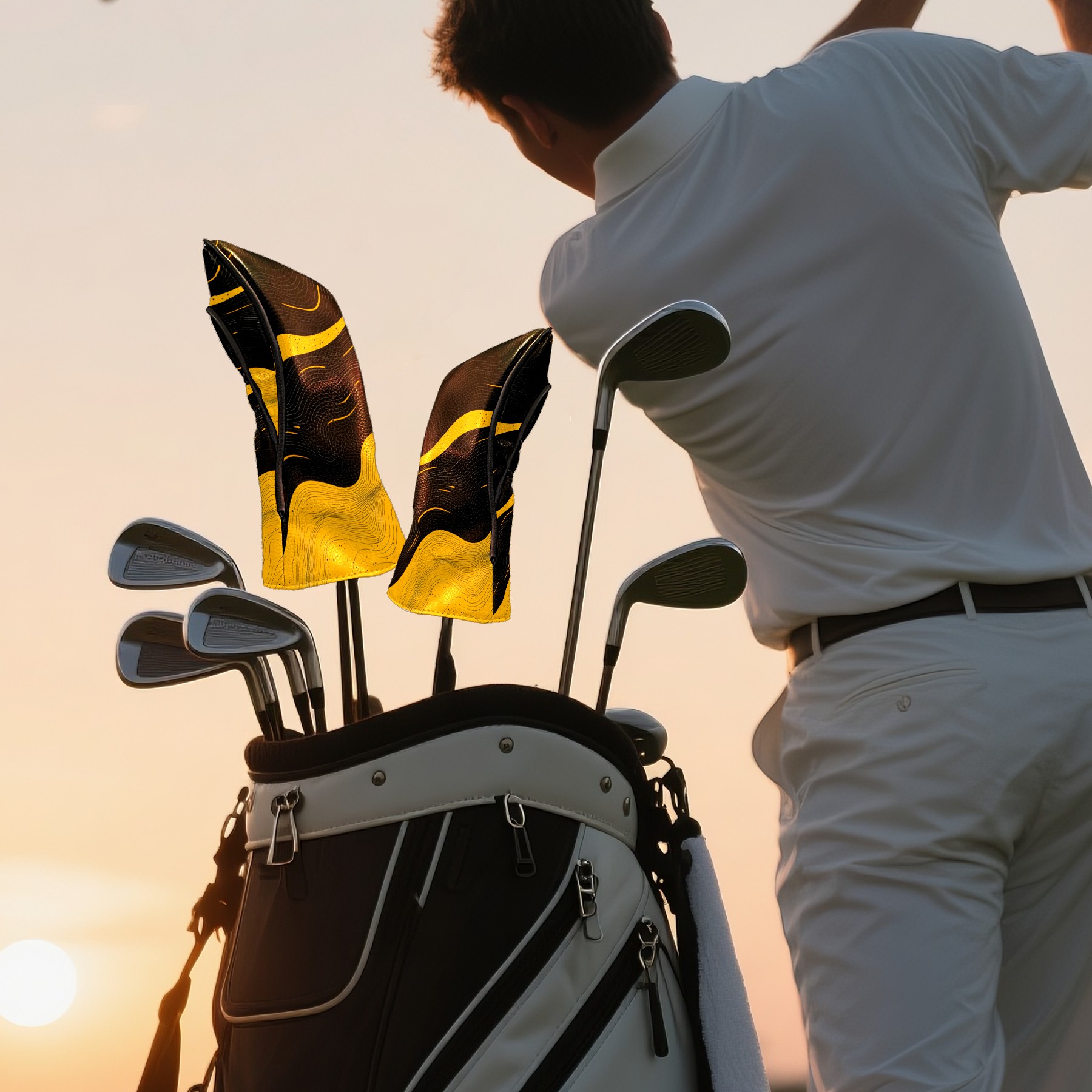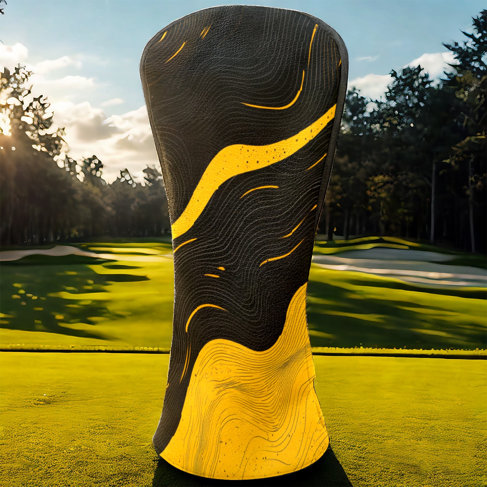 Golf Club Head Cover, High Quality PU Leather Driver and Wood Club Head Cover with Anti-Scratch Lining, Black Gold Ripples Universal Gift for Men and Women