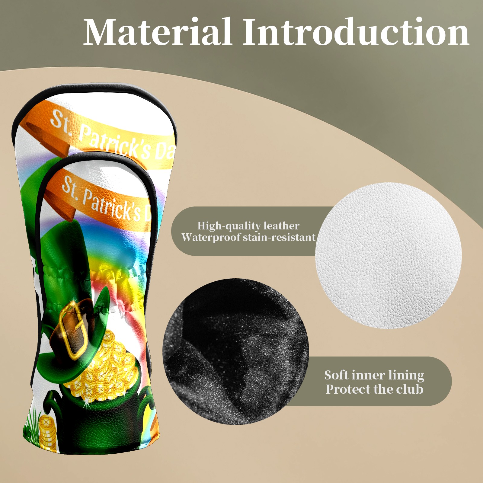 <p>This cover is made of top grade PU leather, which is wear-resistant, waterproof and stain-resistant, and can easily withstand the wind, rain and daily wear and tear; the velvet lining gently wraps around the cover, cushioning the impact and eliminating scratches and abrasions. The velvet lining cushions impacts and prevents scratches and abrasions. Surface stains wipe clean and the tear-resistant design lasts as long as new. Dual size fits all types of clubs, simple and advanced texture design, is a good choice for birthday and holiday gift.</p>