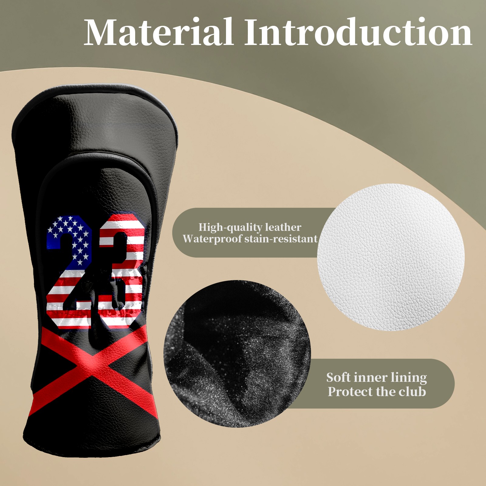 <p>This cover is made of top grade PU leather, which is wear-resistant, waterproof and stain-resistant, and can easily withstand the wind, rain and daily wear and tear; the velvet lining gently wraps around the cover, cushioning the impact and eliminating scratches and abrasions. The velvet lining cushions impacts and prevents scratches and abrasions. Surface stains wipe clean and the tear-resistant design lasts as long as new. Dual size fits all types of clubs, simple and advanced texture design, is a good choice for birthday and holiday gift.</p>