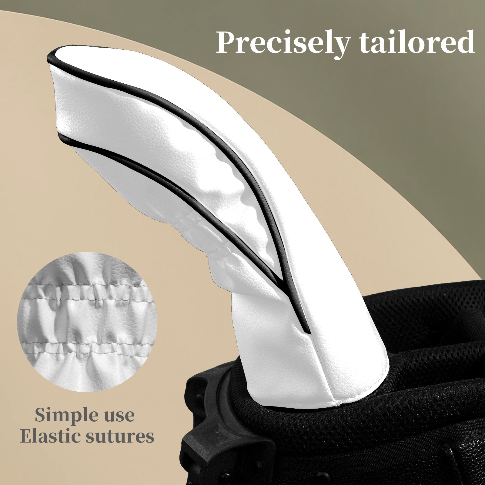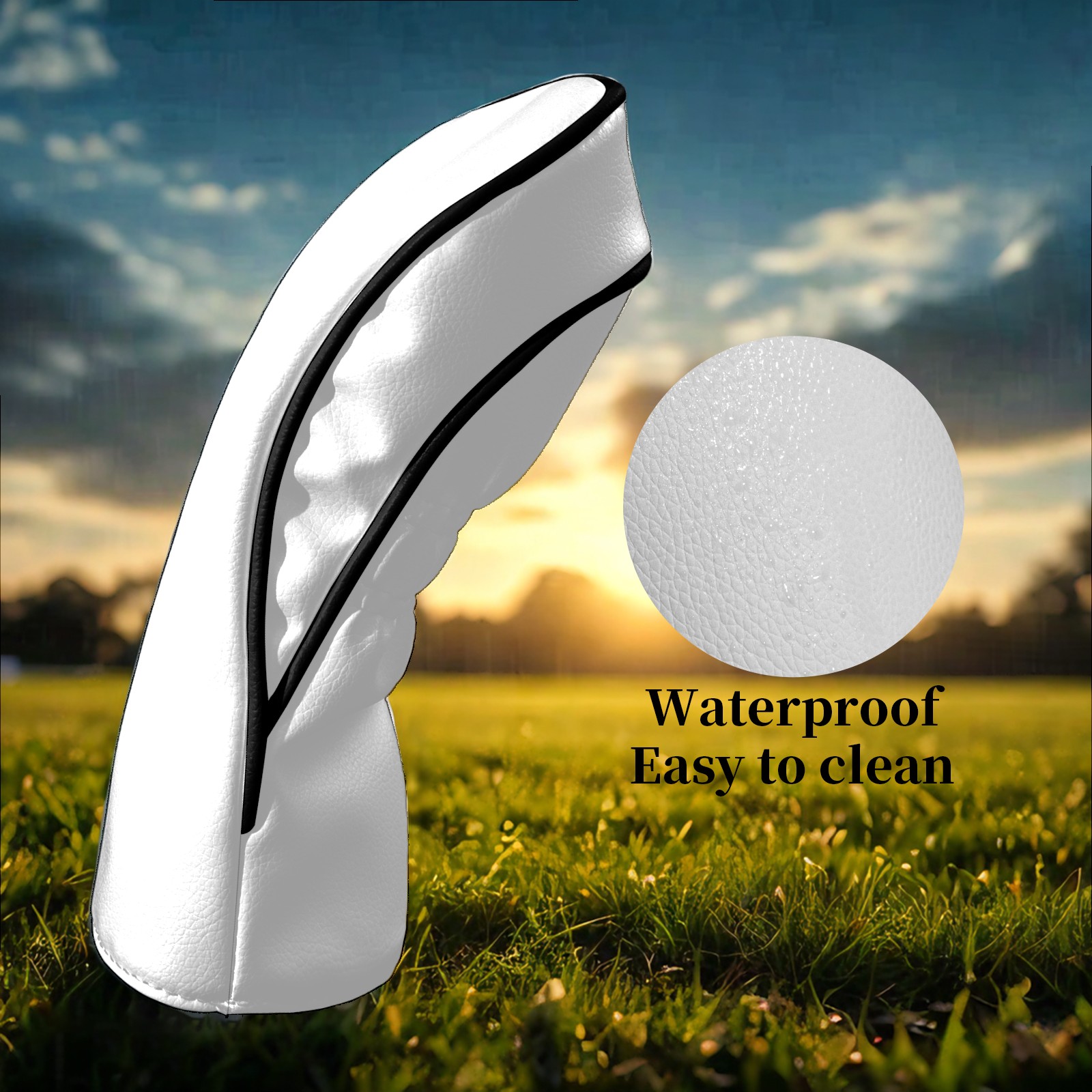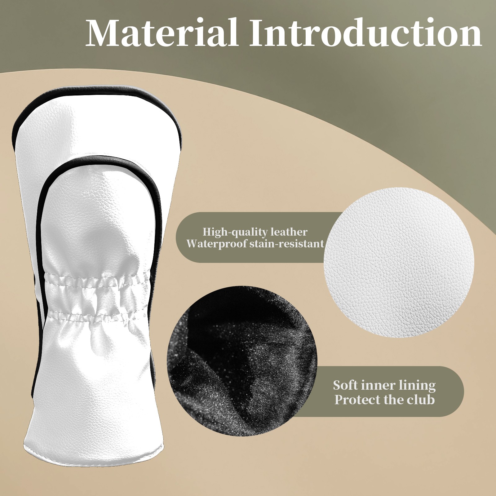 Golf Head Covers for Woods and Driver Waterproof Leather Golf Club Head Covers for Women Men Golf Driver Fairway Wood Headcover White
